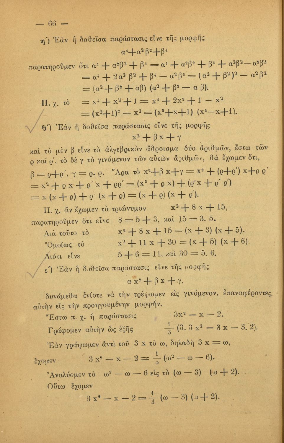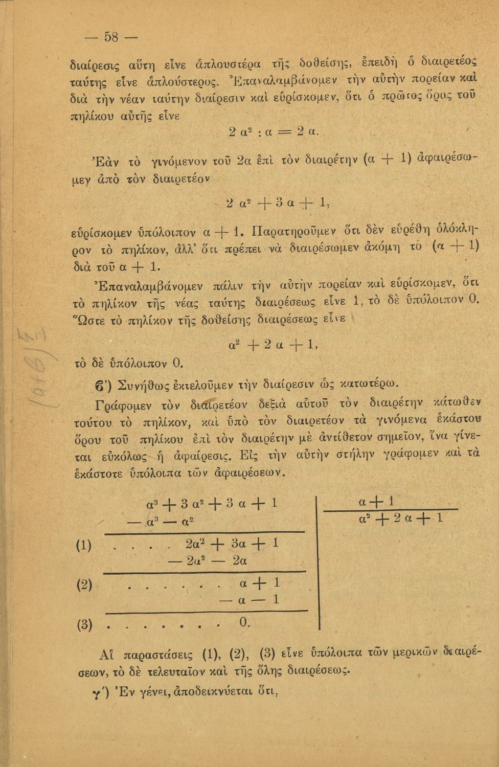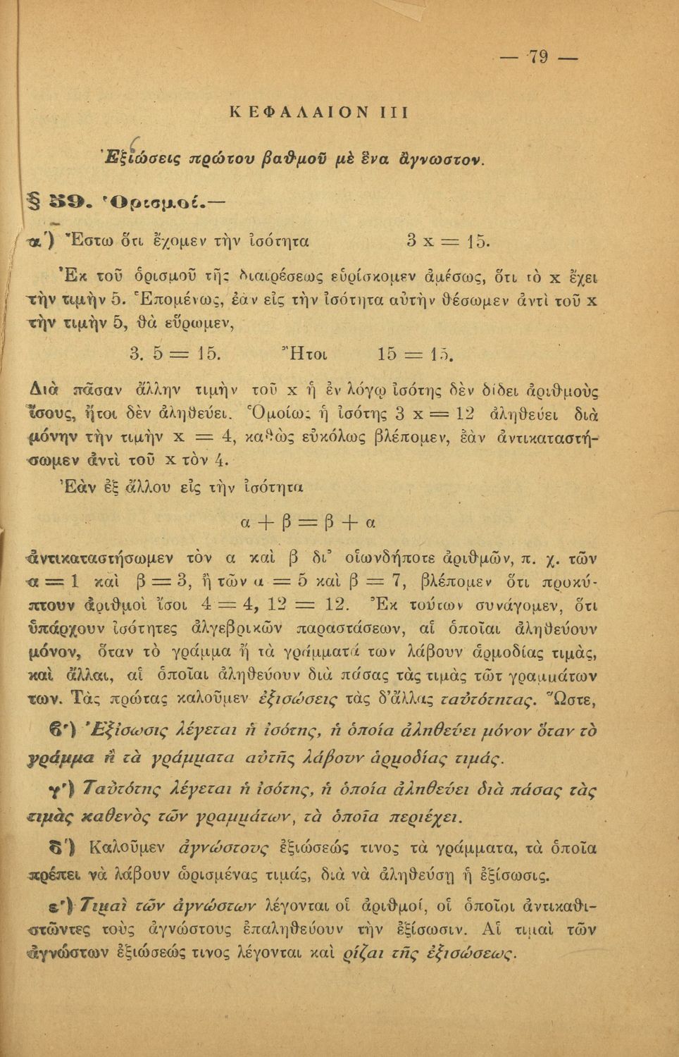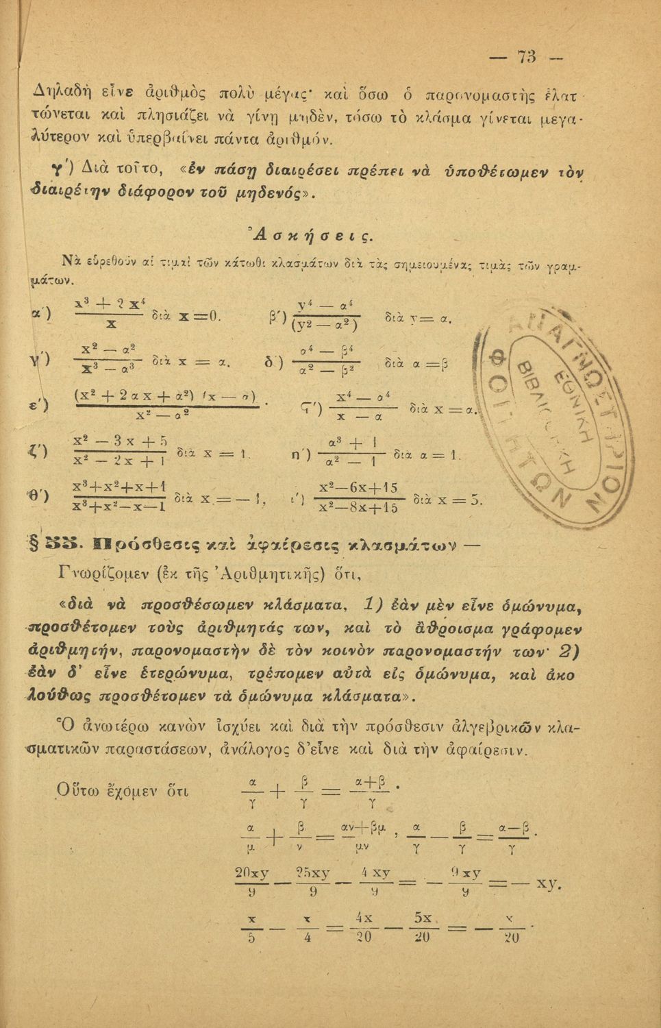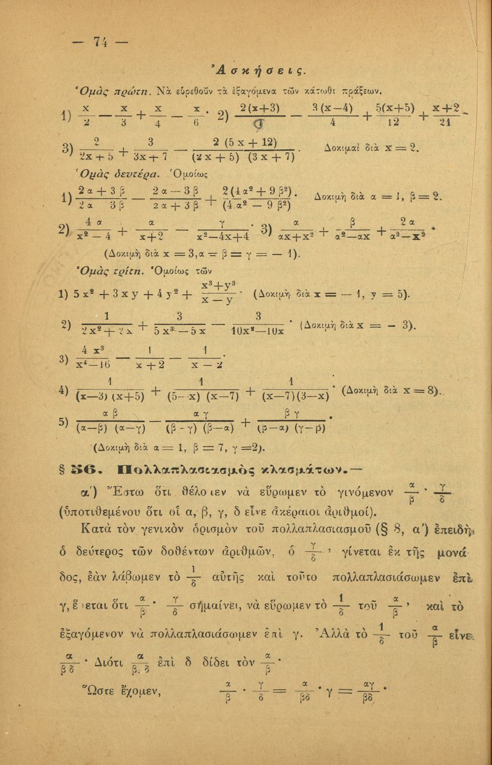 Σχολικό εγχειρίδιο Άλγεβρας για τα Γυμνάσια χωρισμένο σε θεωρία και ασκήσεις. Ο συγγραφέας ήταν καθηγητής στο Πανεπιστήμιο Αθηνών.