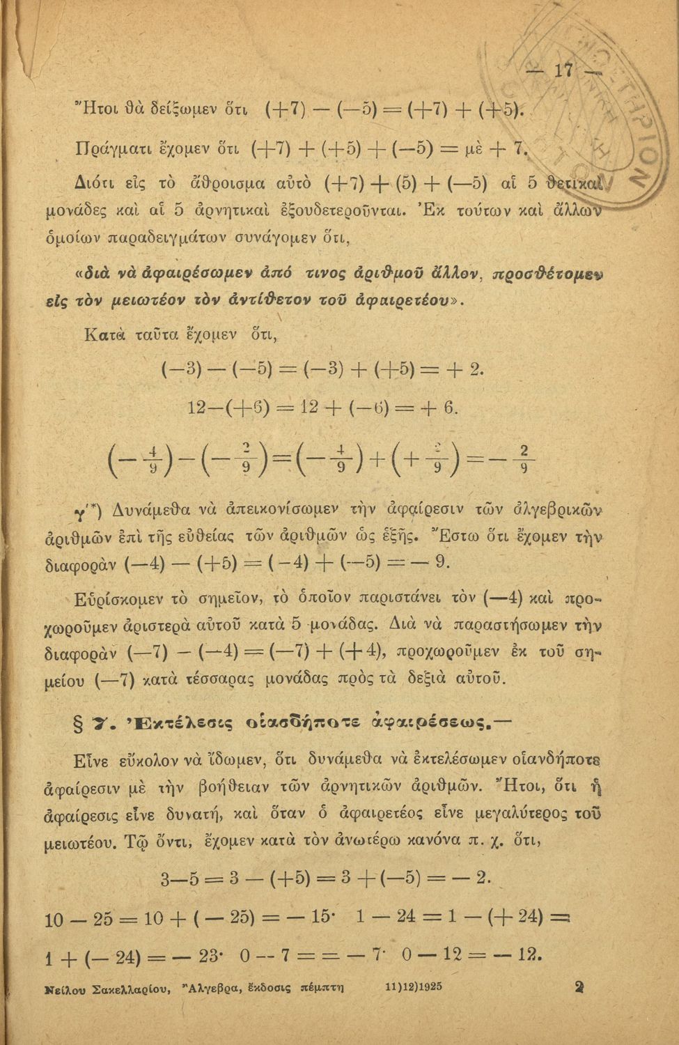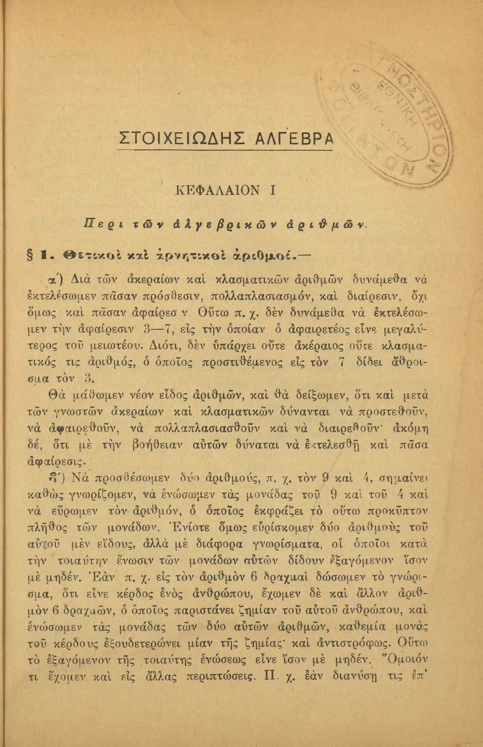 LDR 01231 2200205 4500 035 ## _a20-03156 040 ## _aΚΕΝΕΚ - Εταιρεία Σπουδών Νεοελληνικού Πολιτισμού και Παιδείας 041 ## _ael 100 ## _aΝείλος Σακελλαρίου 110 ## _a3156 245 0# _aΣτοιχειώδης άλγεβρα διά τα Γυμνάσια 250 ## _a5η Έκδοση 260 ## _aΑθήνα _bΙωάννης Ν. Σιδέρης _c1926 300 ## _a244 _c20 520 ## _aΣχολικό εγχειρίδιο Άλγεβρας Γυμνασίου που εστιάζει στις αριθμητικές πράξεις, τις δυνάμεις, τις αλγεβρικές παραστάσεις, τις συναρτήσεις και τα πολυώνυμα και τις εξισώσεις πρώτου και δευτέρου βαθμού. 521 ## _aΓυμνάσιο 522 ## _aΕλλάδα 546 ## _aΚαθαρεύουσα 563 ## _aΣκληρό Εξώφυλλο 650 #4 _aΑλγεβρικές παραστάσεις _aΔυνάμεις _aΕξισώσεις _aΘετικοί και αρνητικοί αριθμοί _aΛογάριθμοι _aΠολυώνυμα _aΠρόοδοι