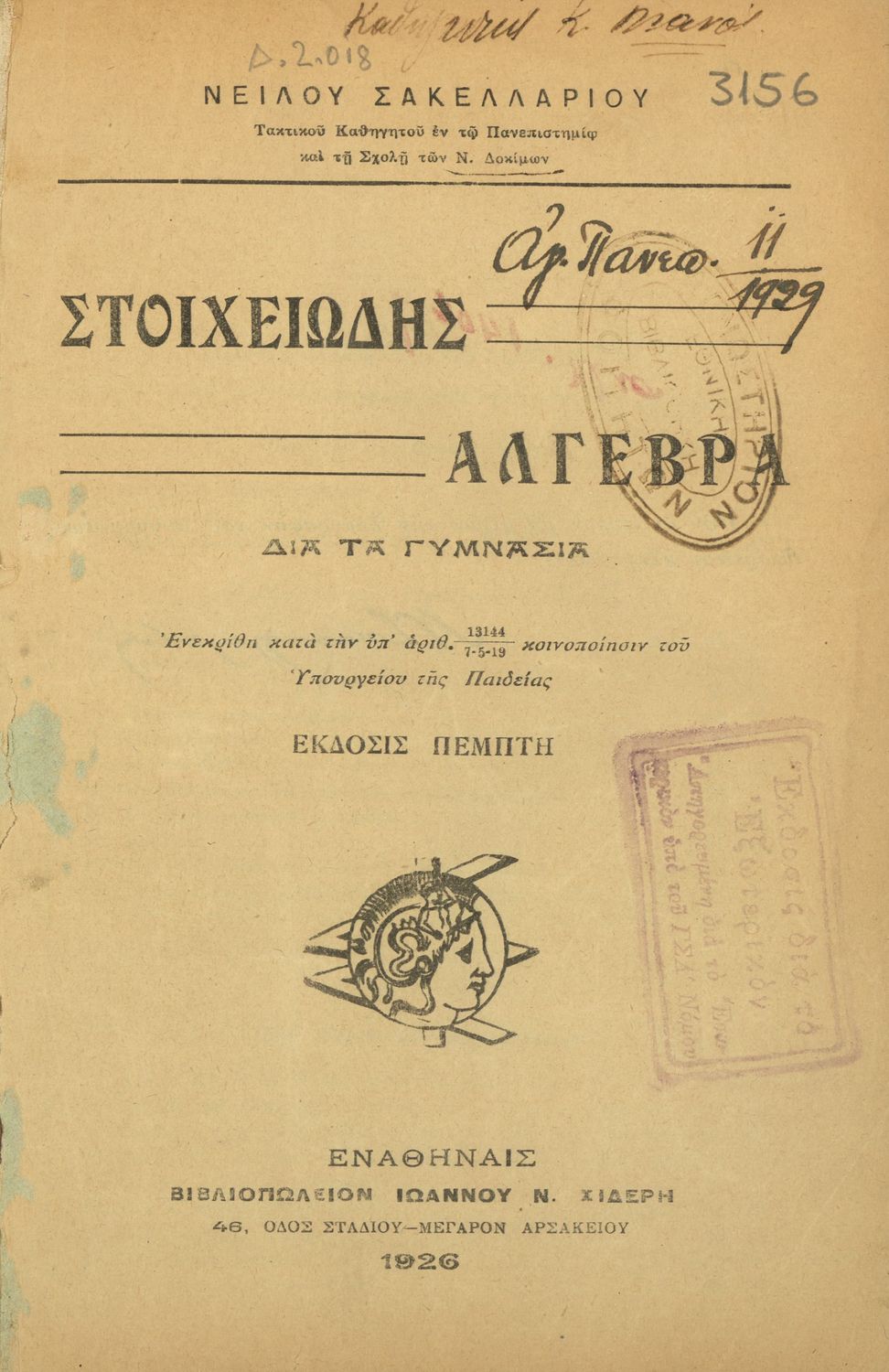 Εκδότης: Ιωάννης Ν. Σιδέρης Έτος έκδοσης: 1926 Τόπος έκδοσης: Αθήνα Έκδοση: 5η |