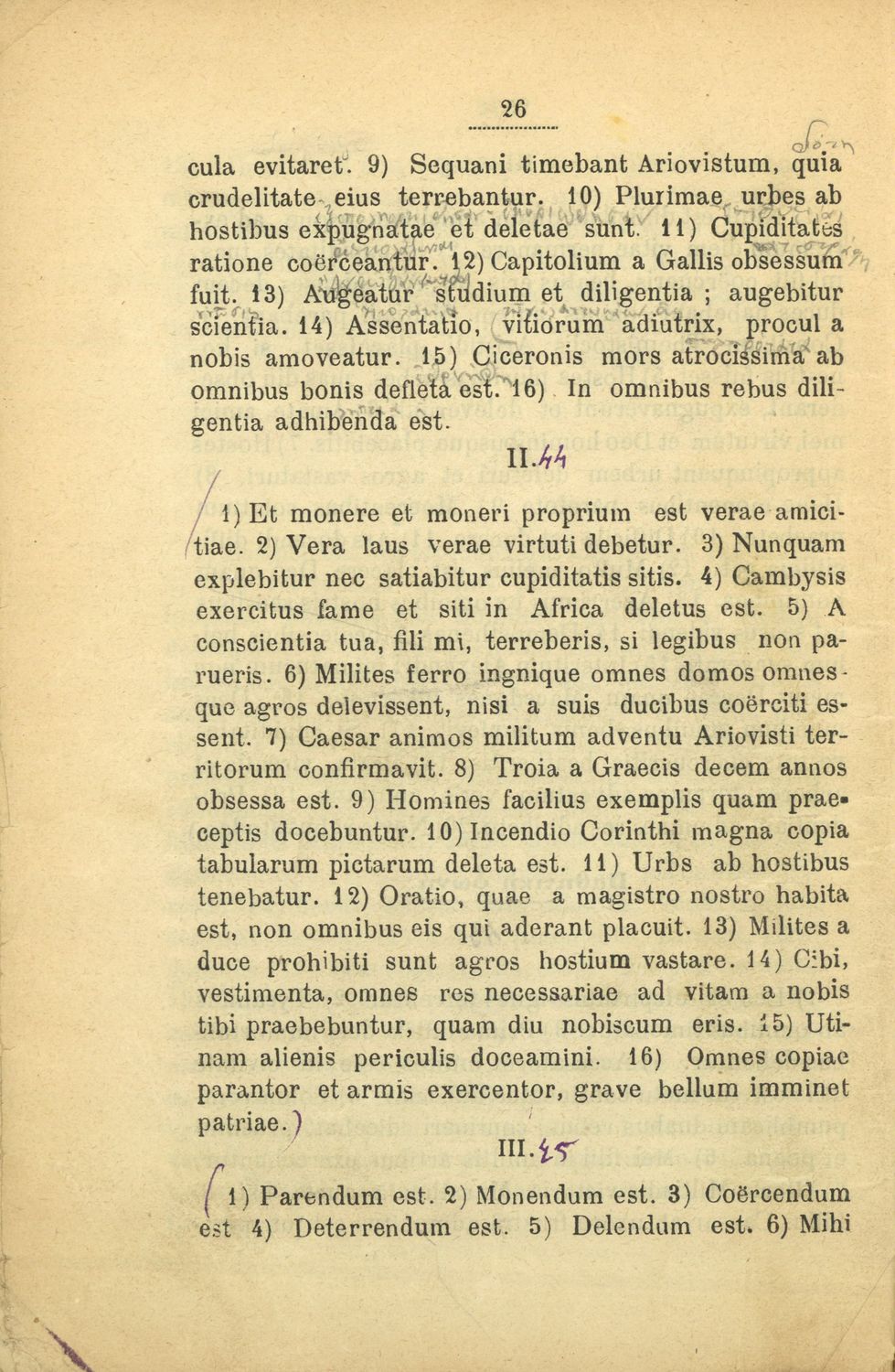 Βαθμίδα εκπαίδευσης: Δευτεροβάθμια Τάξη: Γ' Ελληνικού Σχολείου / Α' Γυμνασίου Μάθημα: Λατινικά Γλώσσα: Καθαρεύουσα Παρουσίαση περιεχομένου: Σχολικό εγχειρίδιο Λατινικών Γ' Ελληνικού Σχολείου και Α΄ Γυμνασίου που περιλαμβάνει κείμενα για τη διδασκαλία των γραμματικών και συντακτικών φαινομένων, ερμηνευτικά και πραγματολογικά σχόλια και λεξιλόγιο. |
