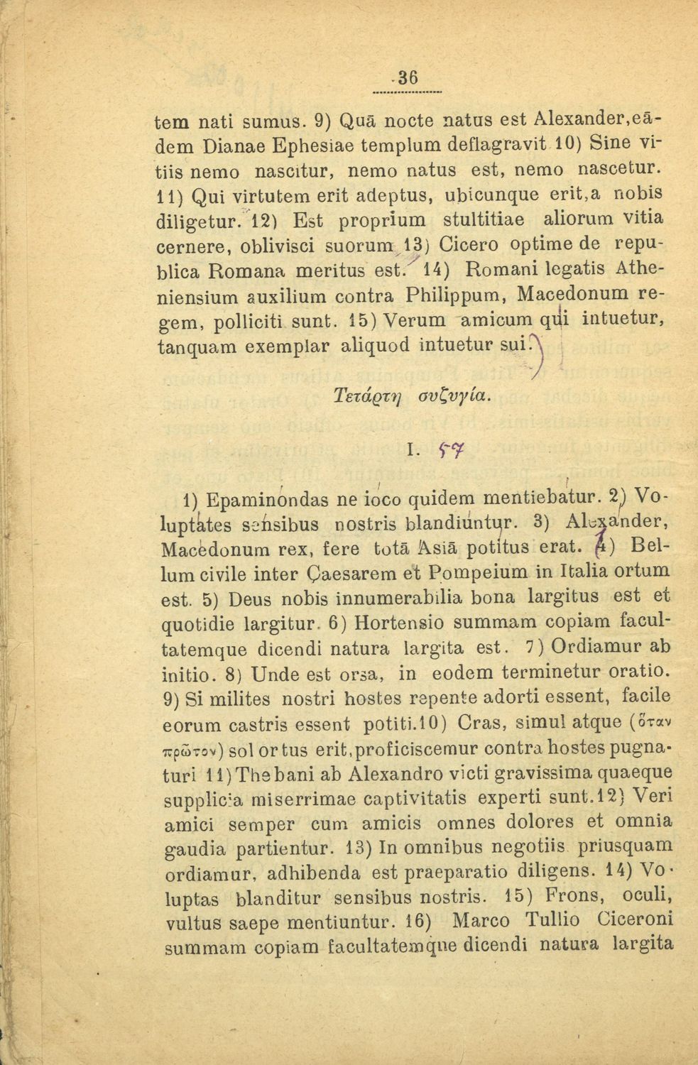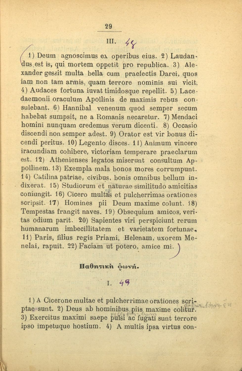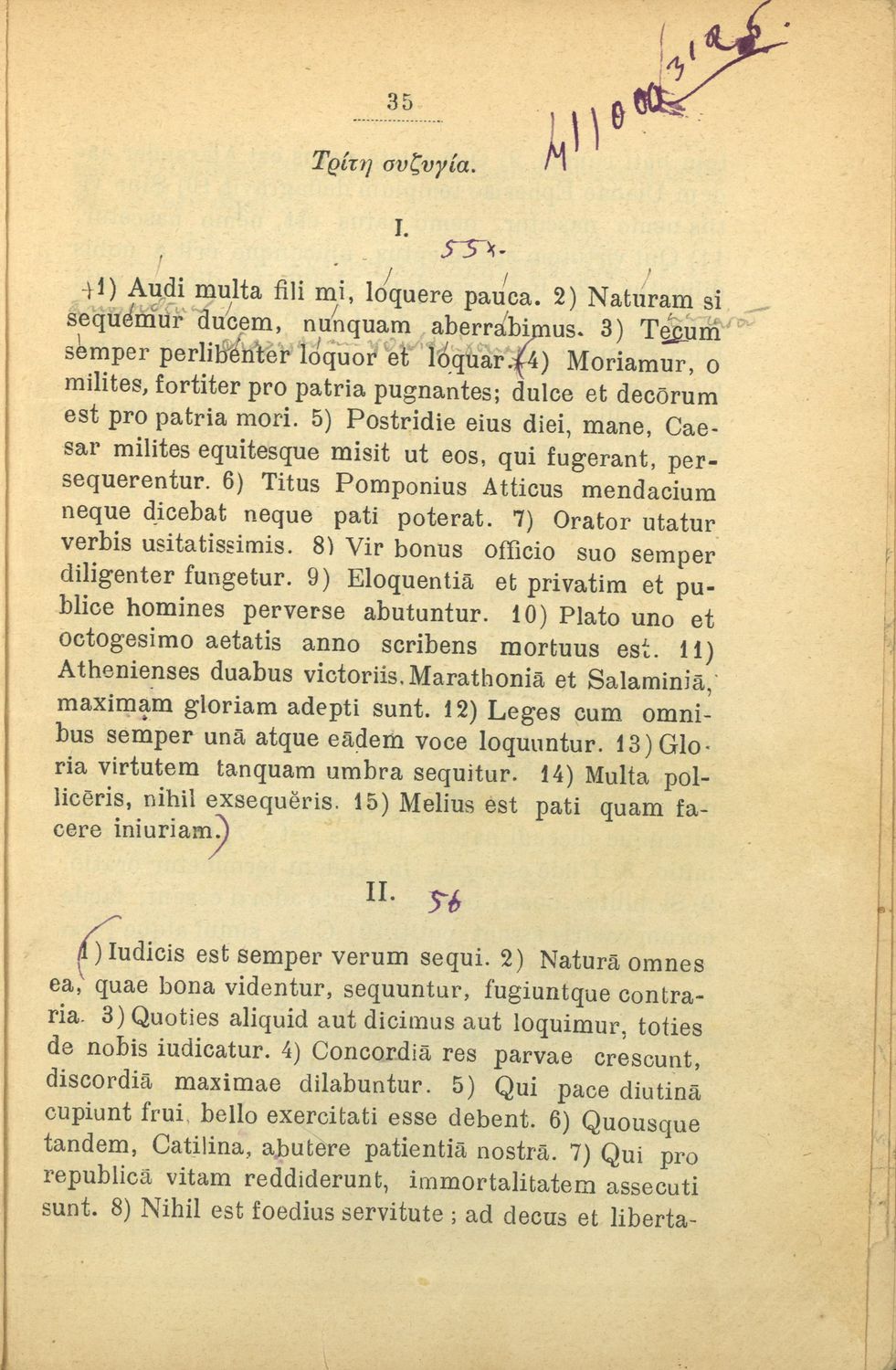 LDR 01410 2200205 4500 035 ## _a20-03157 040 ## _aΚΕΝΕΚ - Εταιρεία Σπουδών Νεοελληνικού Πολιτισμού και Παιδείας 041 ## _ael 100 ## _aΕρρίκος Α. Σκάσσης (σχόλια) 110 ## _a3157 245 0# _aΛατινικόν αναγνωσματάριον προς χρήσιν της Γ΄ τάξεως των Ελληνικών Σχολείων και πρώτην του Γυμνασίου 260 ## _aΑθήνα _bΜιχαήλ Ι. Σαλίβερος _c1902 300 ## _a96 _c20 520 ## _aΣχολικό εγχειρίδιο Λατινικών Γ' Ελληνικού Σχολείου και Α΄ Γυμνασίου που περιλαμβάνει κείμενα για τη διδασκαλία των γραμματικών και συντακτικών φαινομένων, ερμηνευτικά και πραγματολογικά σχόλια και λεξιλόγιο. 521 ## _aΓ' Ελληνικού Σχολείου / Α' Γυμνασίου 522 ## _aΕλλάδα 546 ## _aΚαθαρεύουσα 563 ## _aΜαλακό Εξώφυλλο 583 ## _a8130/ 25-5-1902 _c1902 650 #4 _aΕπίθετα _aΕπιρρήματα _aΚλίσεις ουσιαστικών _aΜέρη του λόγου _aΠροθέσεις _aΣυζυγίες _aΣύνδεσμοι _aΧρόνοι