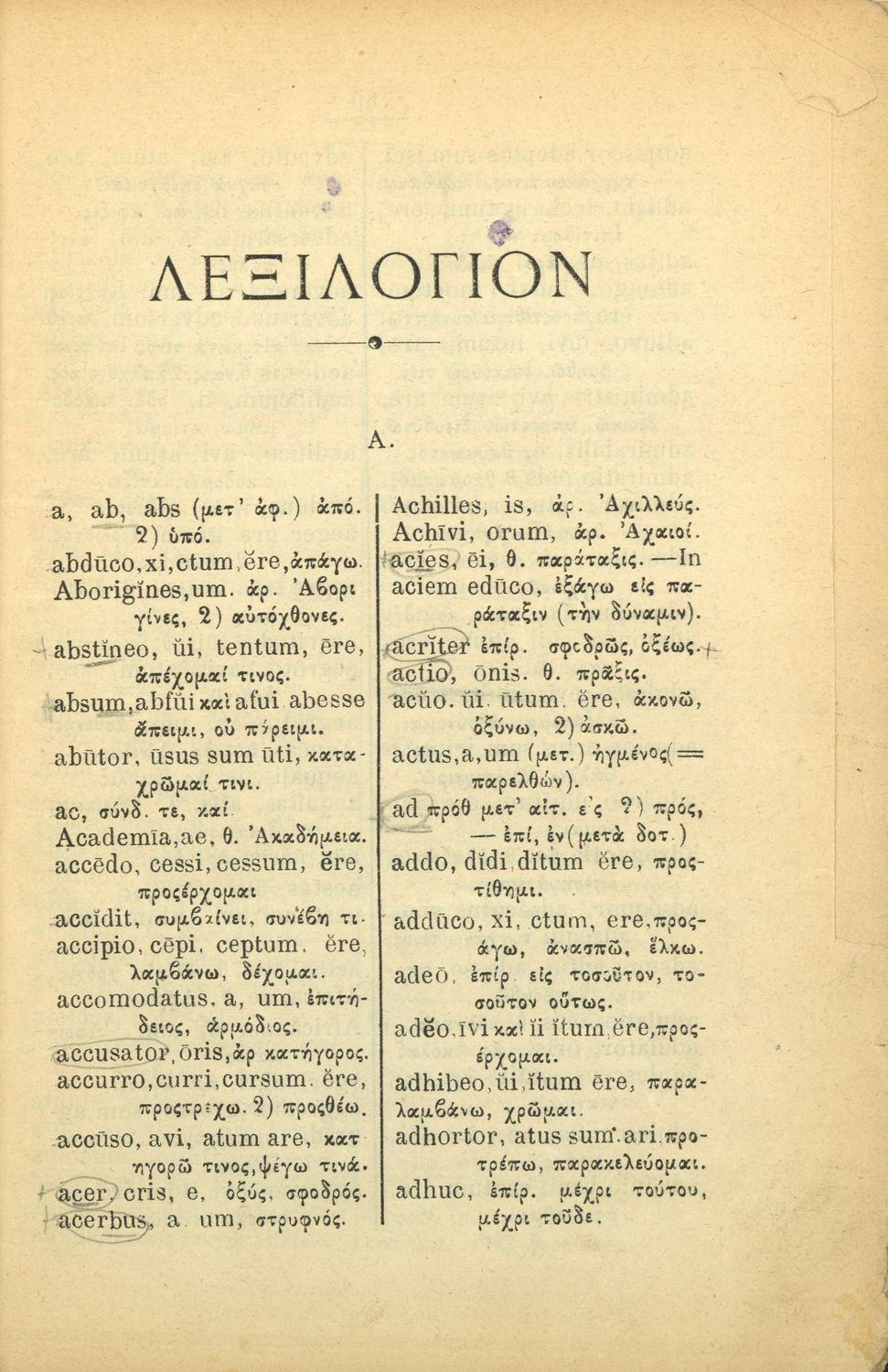 LDR 01410 2200205 4500 035 ## _a20-03157 040 ## _aΚΕΝΕΚ - Εταιρεία Σπουδών Νεοελληνικού Πολιτισμού και Παιδείας 041 ## _ael 100 ## _aΕρρίκος Α. Σκάσσης (σχόλια) 110 ## _a3157 245 0# _aΛατινικόν αναγνωσματάριον προς χρήσιν της Γ΄ τάξεως των Ελληνικών Σχολείων και πρώτην του Γυμνασίου 260 ## _aΑθήνα _bΜιχαήλ Ι. Σαλίβερος _c1902 300 ## _a96 _c20 520 ## _aΣχολικό εγχειρίδιο Λατινικών Γ' Ελληνικού Σχολείου και Α΄ Γυμνασίου που περιλαμβάνει κείμενα για τη διδασκαλία των γραμματικών και συντακτικών φαινομένων, ερμηνευτικά και πραγματολογικά σχόλια και λεξιλόγιο. 521 ## _aΓ' Ελληνικού Σχολείου / Α' Γυμνασίου 522 ## _aΕλλάδα 546 ## _aΚαθαρεύουσα 563 ## _aΜαλακό Εξώφυλλο 583 ## _a8130/ 25-5-1902 _c1902 650 #4 _aΕπίθετα _aΕπιρρήματα _aΚλίσεις ουσιαστικών _aΜέρη του λόγου _aΠροθέσεις _aΣυζυγίες _aΣύνδεσμοι _aΧρόνοι