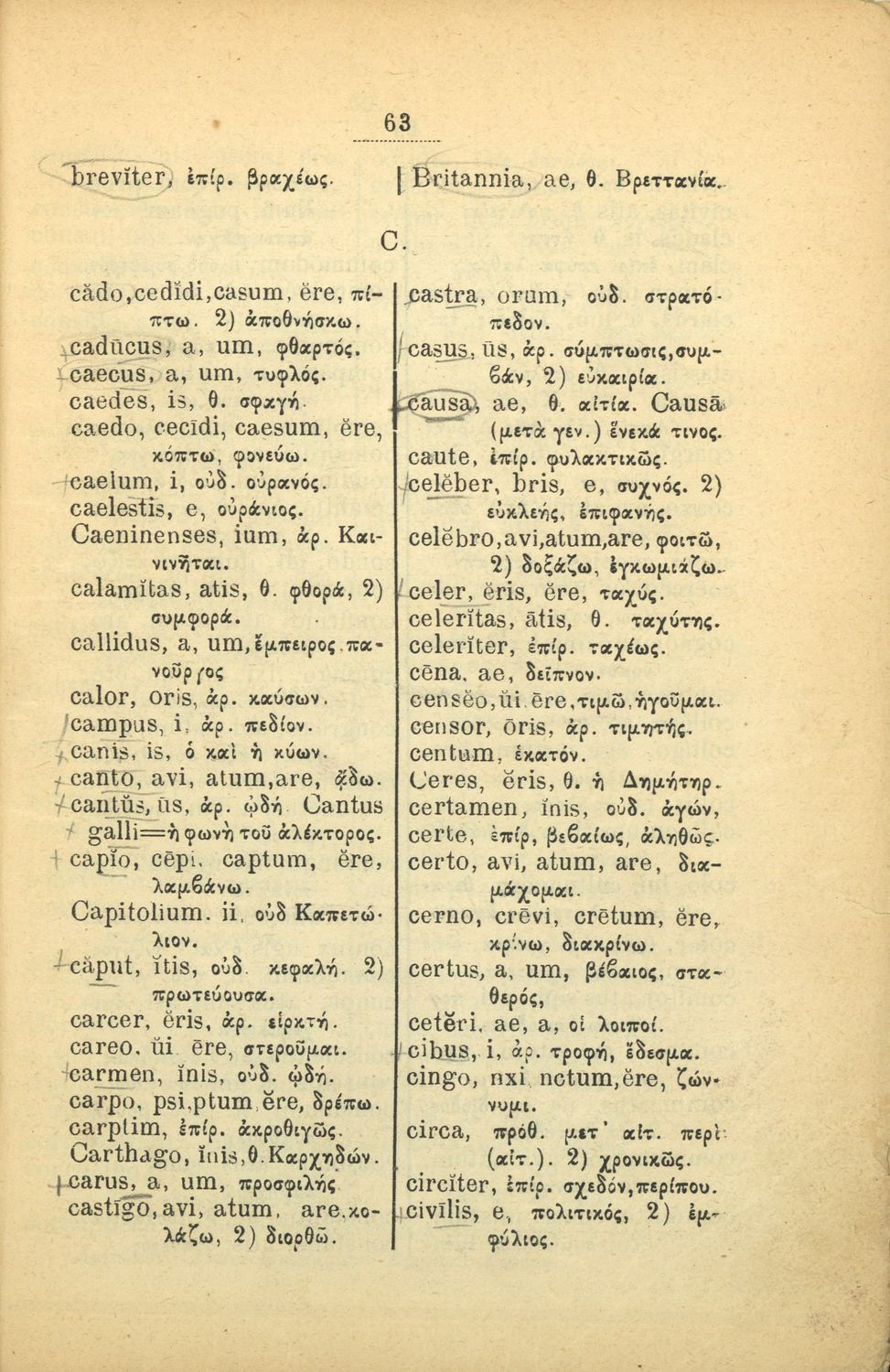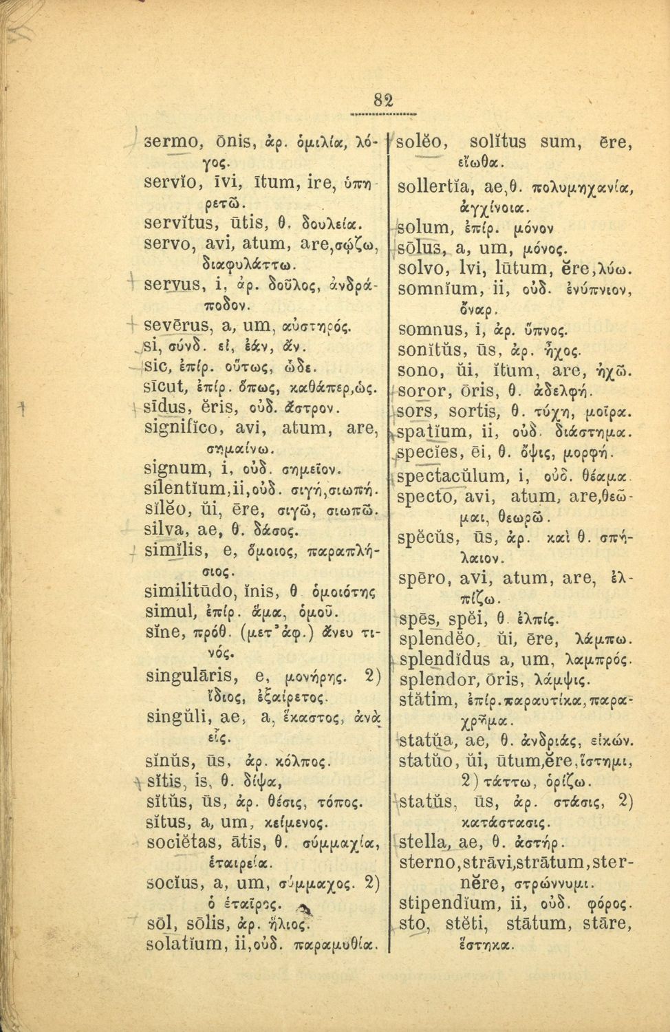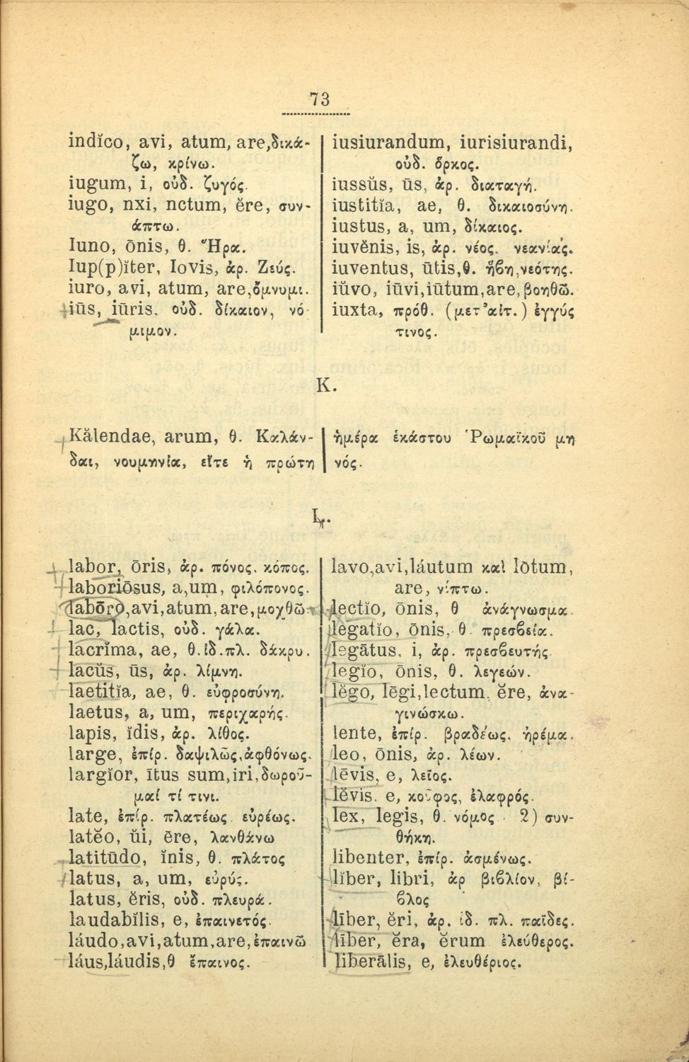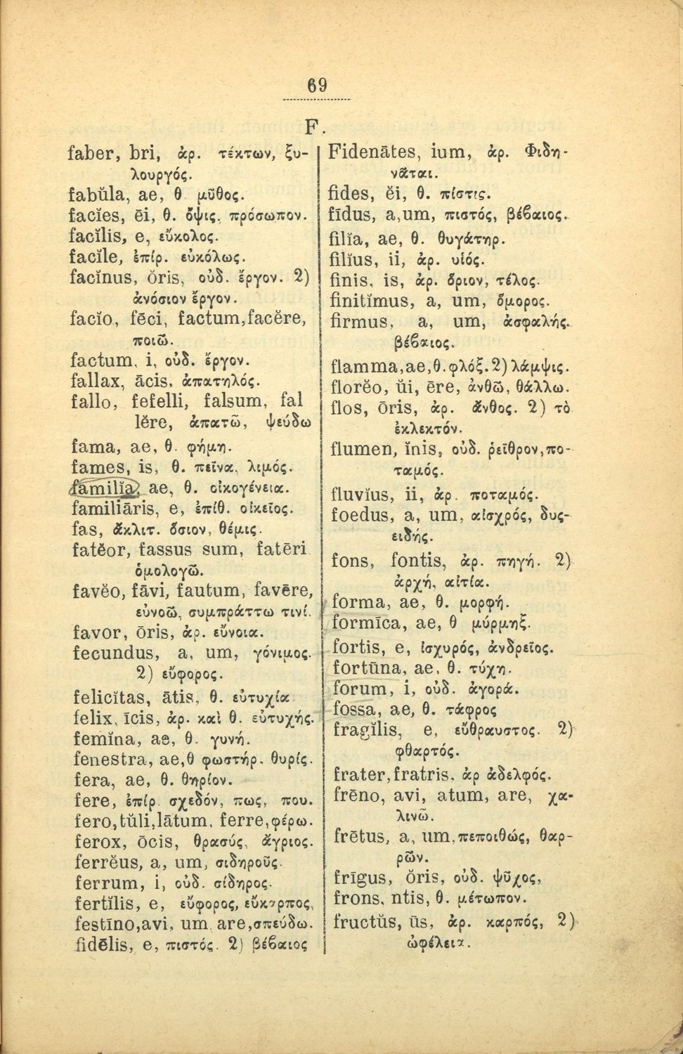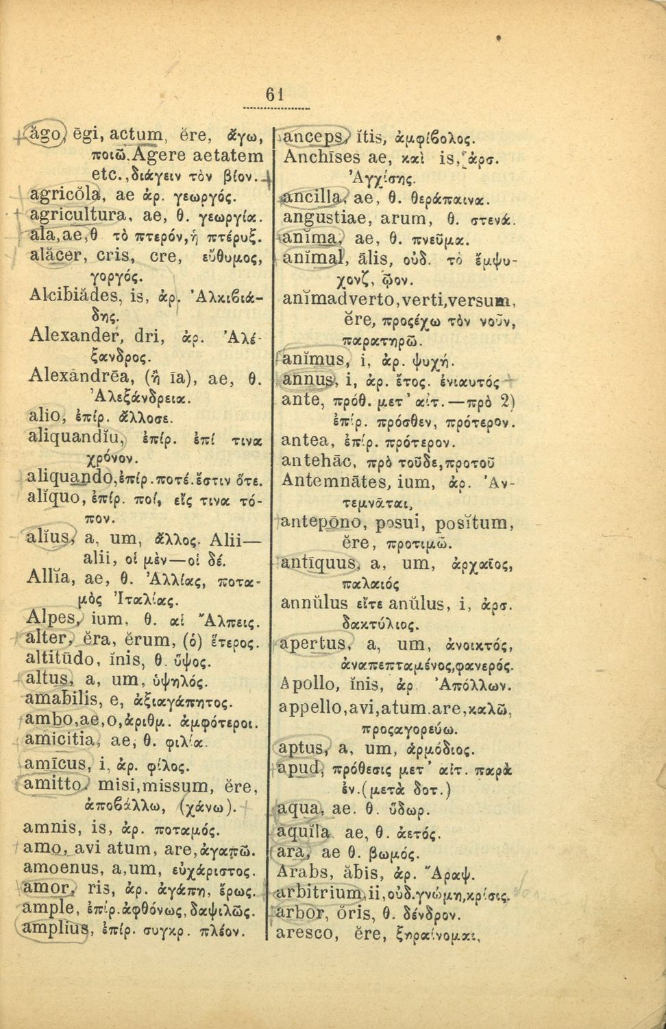 Σχολικό εγχειρίδιο Λατινικών Γ' Ελληνικού Σχολείου και Α΄ Γυμνασίου που περιλαμβάνει κείμενα για τη διδασκαλία των γραμματικών και συντακτικών φαινομένων, ερμηνευτικά και πραγματολογικά σχόλια και λεξιλόγιο.