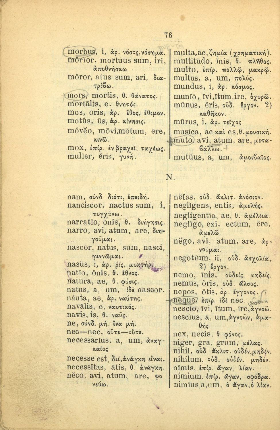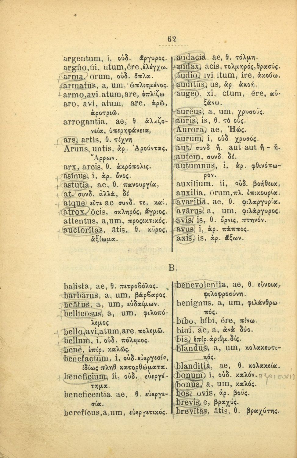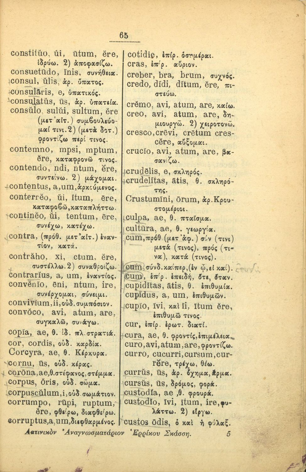 LDR 01410 2200205 4500 035 ## _a20-03157 040 ## _aΚΕΝΕΚ - Εταιρεία Σπουδών Νεοελληνικού Πολιτισμού και Παιδείας 041 ## _ael 100 ## _aΕρρίκος Α. Σκάσσης (σχόλια) 110 ## _a3157 245 0# _aΛατινικόν αναγνωσματάριον προς χρήσιν της Γ΄ τάξεως των Ελληνικών Σχολείων και πρώτην του Γυμνασίου 260 ## _aΑθήνα _bΜιχαήλ Ι. Σαλίβερος _c1902 300 ## _a96 _c20 520 ## _aΣχολικό εγχειρίδιο Λατινικών Γ' Ελληνικού Σχολείου και Α΄ Γυμνασίου που περιλαμβάνει κείμενα για τη διδασκαλία των γραμματικών και συντακτικών φαινομένων, ερμηνευτικά και πραγματολογικά σχόλια και λεξιλόγιο. 521 ## _aΓ' Ελληνικού Σχολείου / Α' Γυμνασίου 522 ## _aΕλλάδα 546 ## _aΚαθαρεύουσα 563 ## _aΜαλακό Εξώφυλλο 583 ## _a8130/ 25-5-1902 _c1902 650 #4 _aΕπίθετα _aΕπιρρήματα _aΚλίσεις ουσιαστικών _aΜέρη του λόγου _aΠροθέσεις _aΣυζυγίες _aΣύνδεσμοι _aΧρόνοι