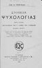 Βαθμίδα εκπαίδευσης: Δευτεροβάθμια Τάξη: Ε' Γυμνασίου Μάθημα: Ψυχολογία Γλώσσα: Καθαρεύουσα Παρουσίαση περιεχομένου: Σχολικό εγχειρίδιο Ψυχολογίας για την Ε΄ Εξαταξίου Γυμνασίου χωρισμένο σε τρία τμήματα: το γνωστικό, το συναισθηματικό και το βουλητικό. |