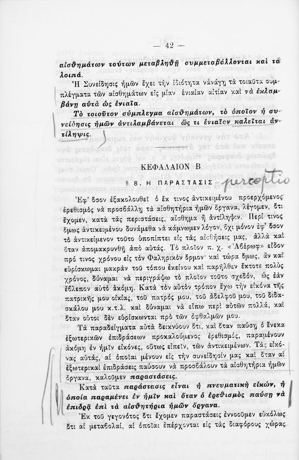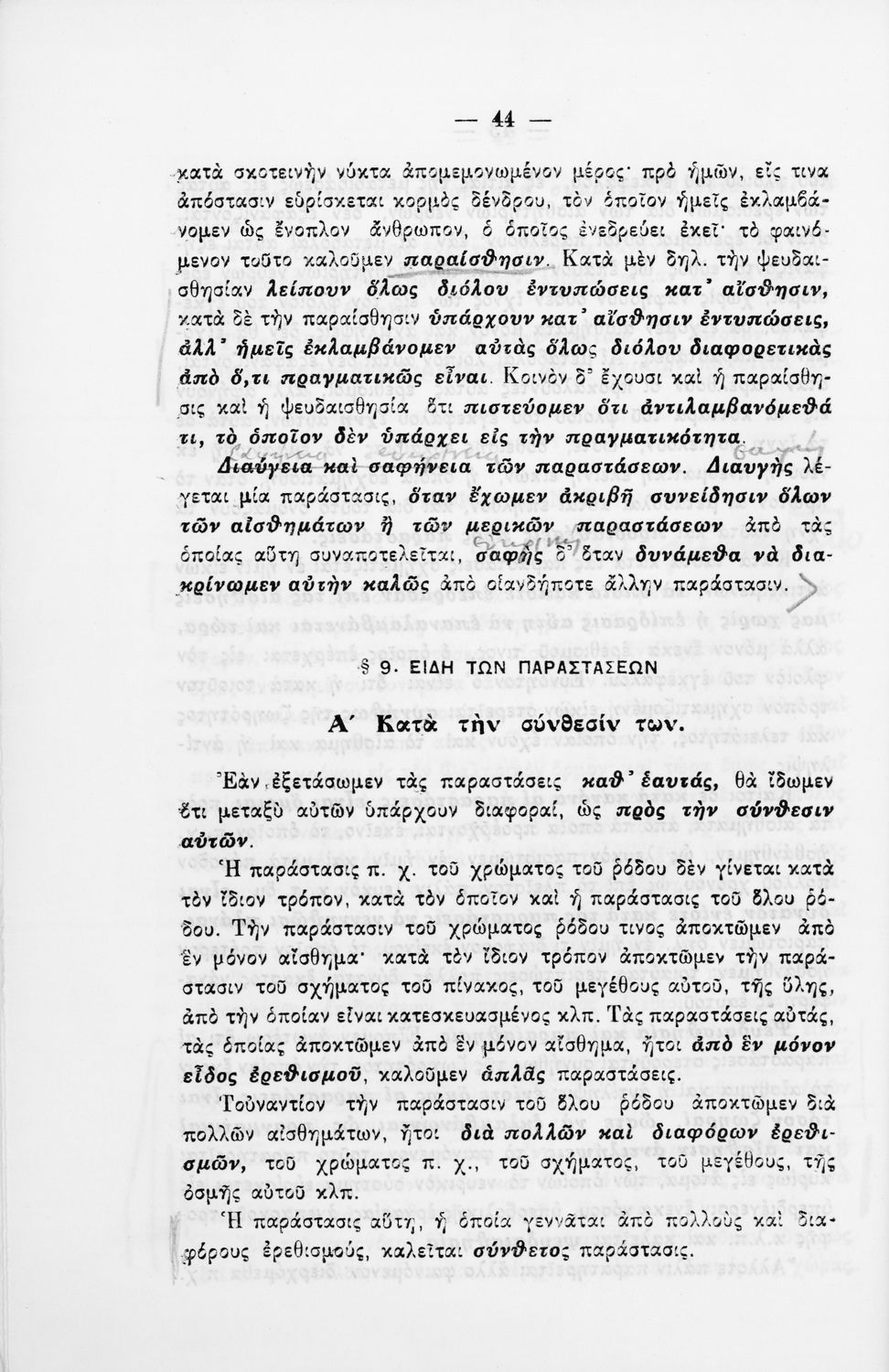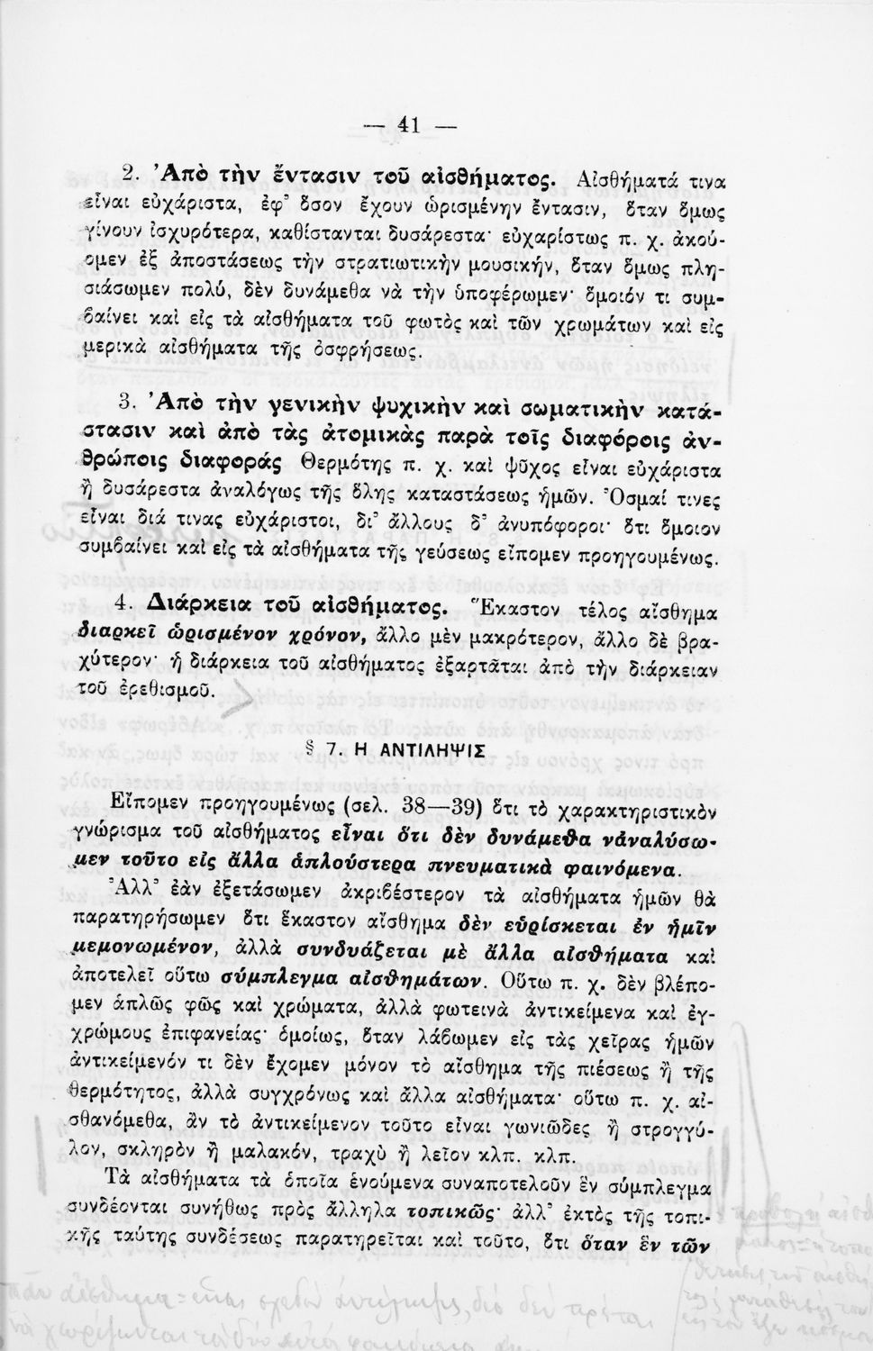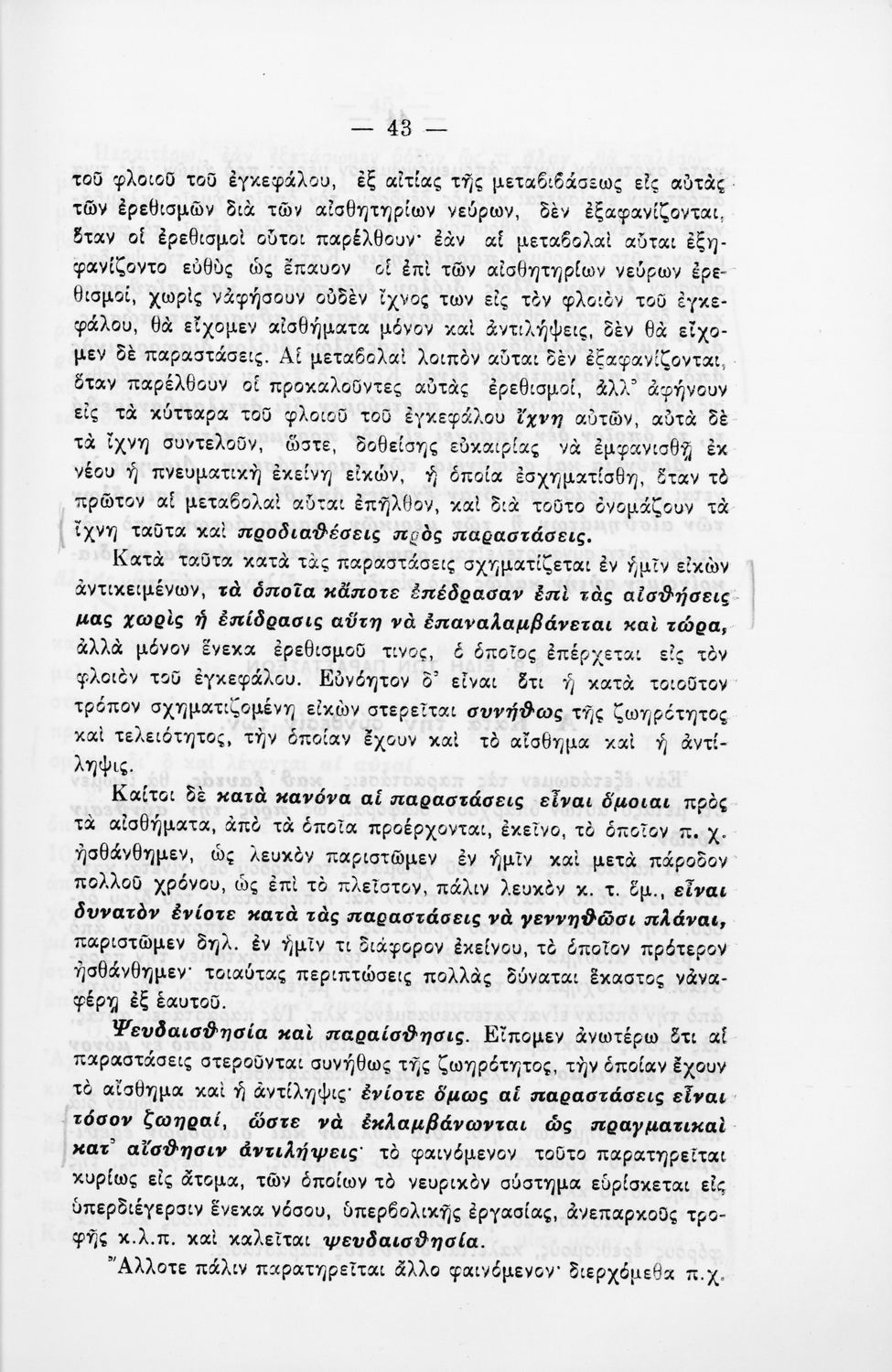 Σχολικό εγχειρίδιο Πειραματικής Ψυχολογίας για τη Γ΄ Γυμνασίου χωρισμένο σε τρία τμήματα: το παριστάναι, το συναισθάνεσθαι, και το βούλεσθαι.