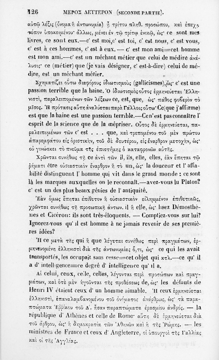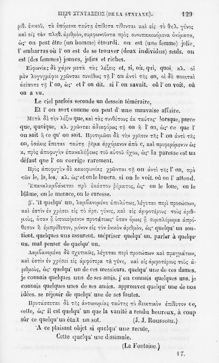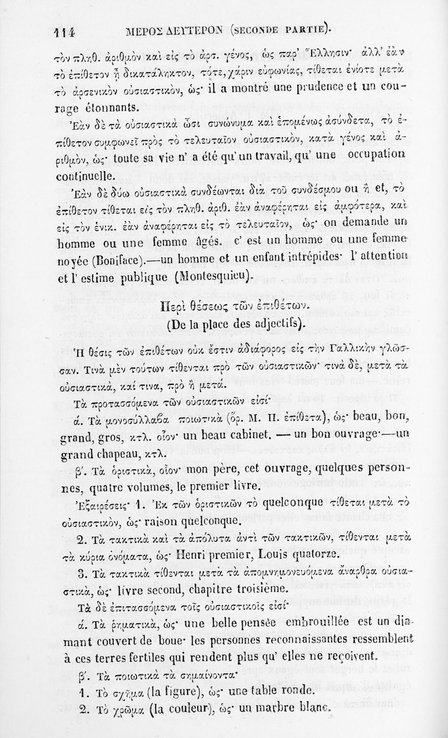 Γραμματική της Γαλλικής γλώσσας για τα Ελληνικά Σχολεία και Παρθεναγωγεία που αναλύει τα μέρη του λόγου και περιέχει παραδείγματα και ασκήσεις.