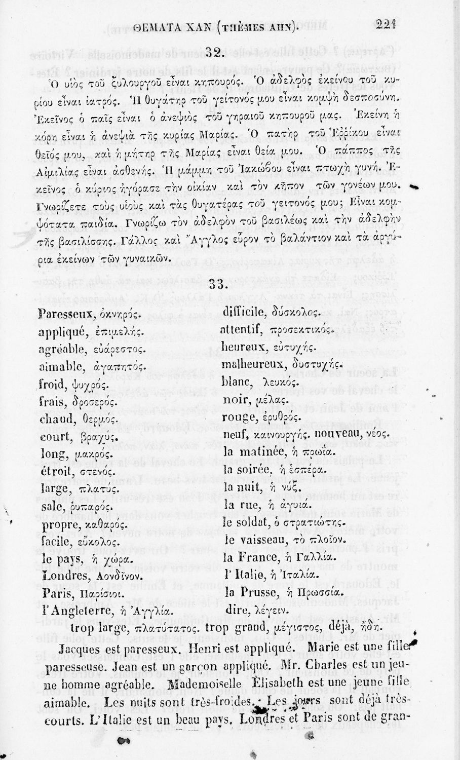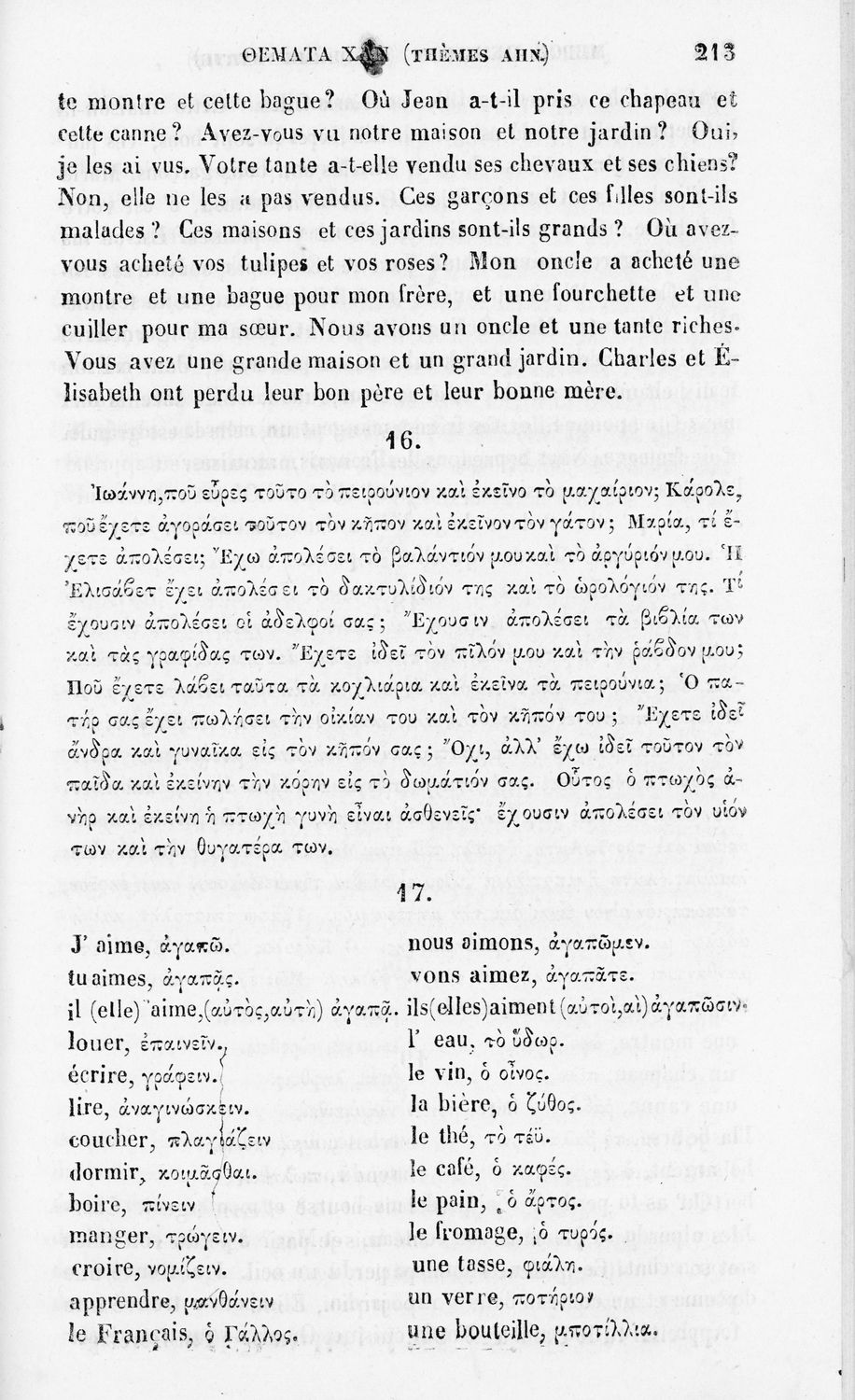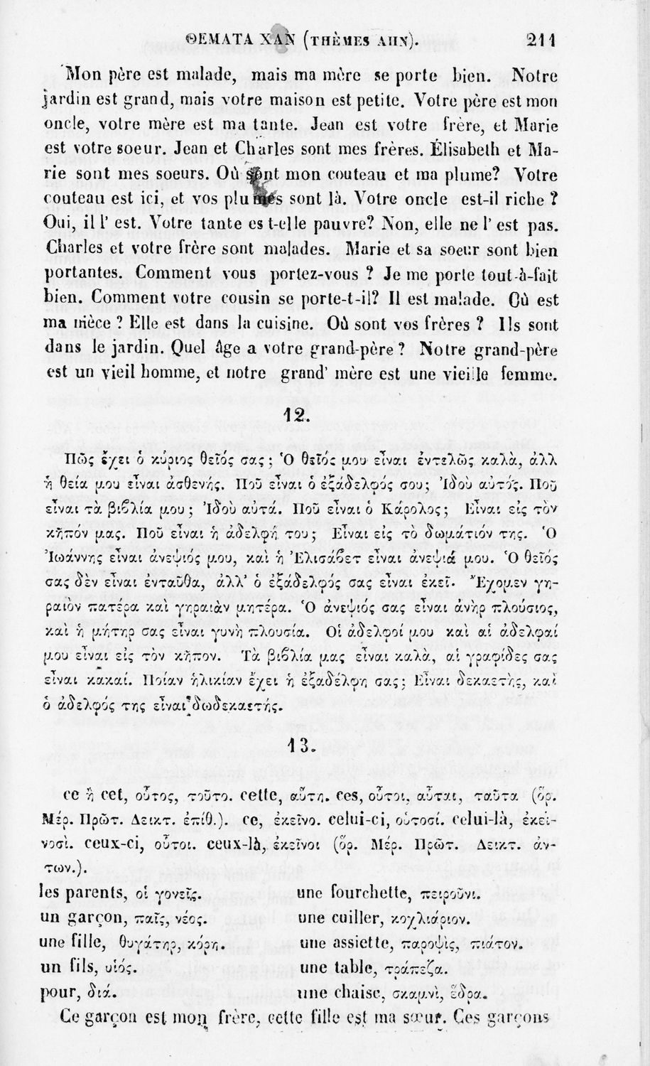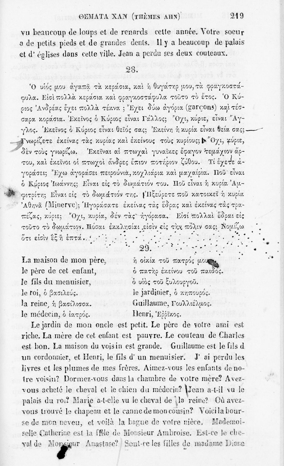 Γραμματική της Γαλλικής γλώσσας για τα Ελληνικά Σχολεία και Παρθεναγωγεία που αναλύει τα μέρη του λόγου και περιέχει παραδείγματα και ασκήσεις.