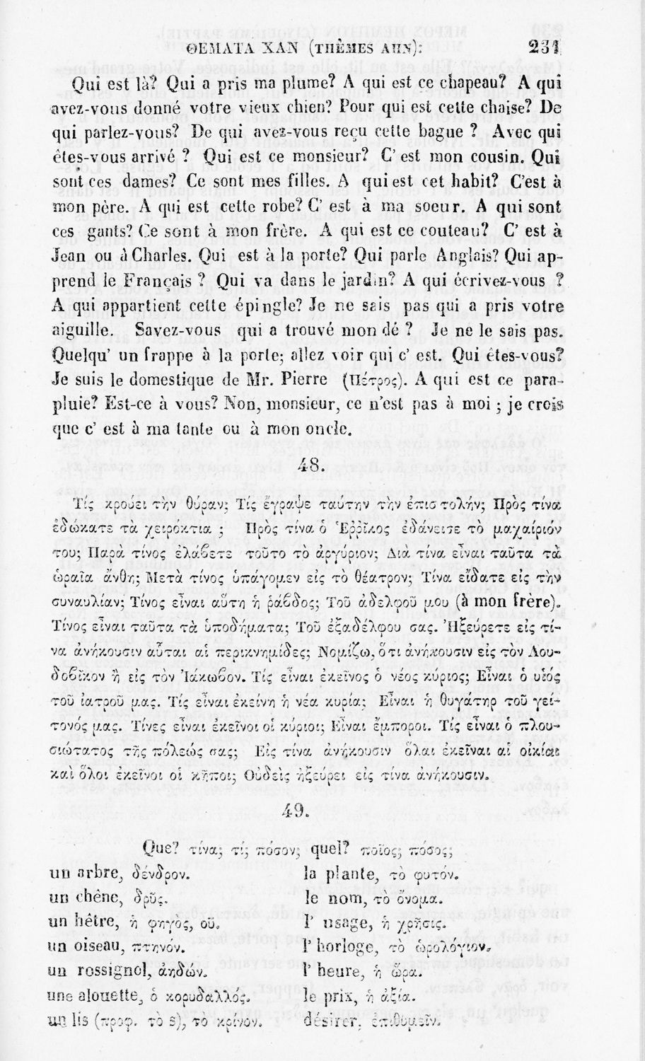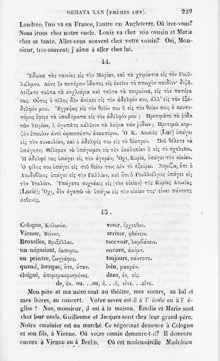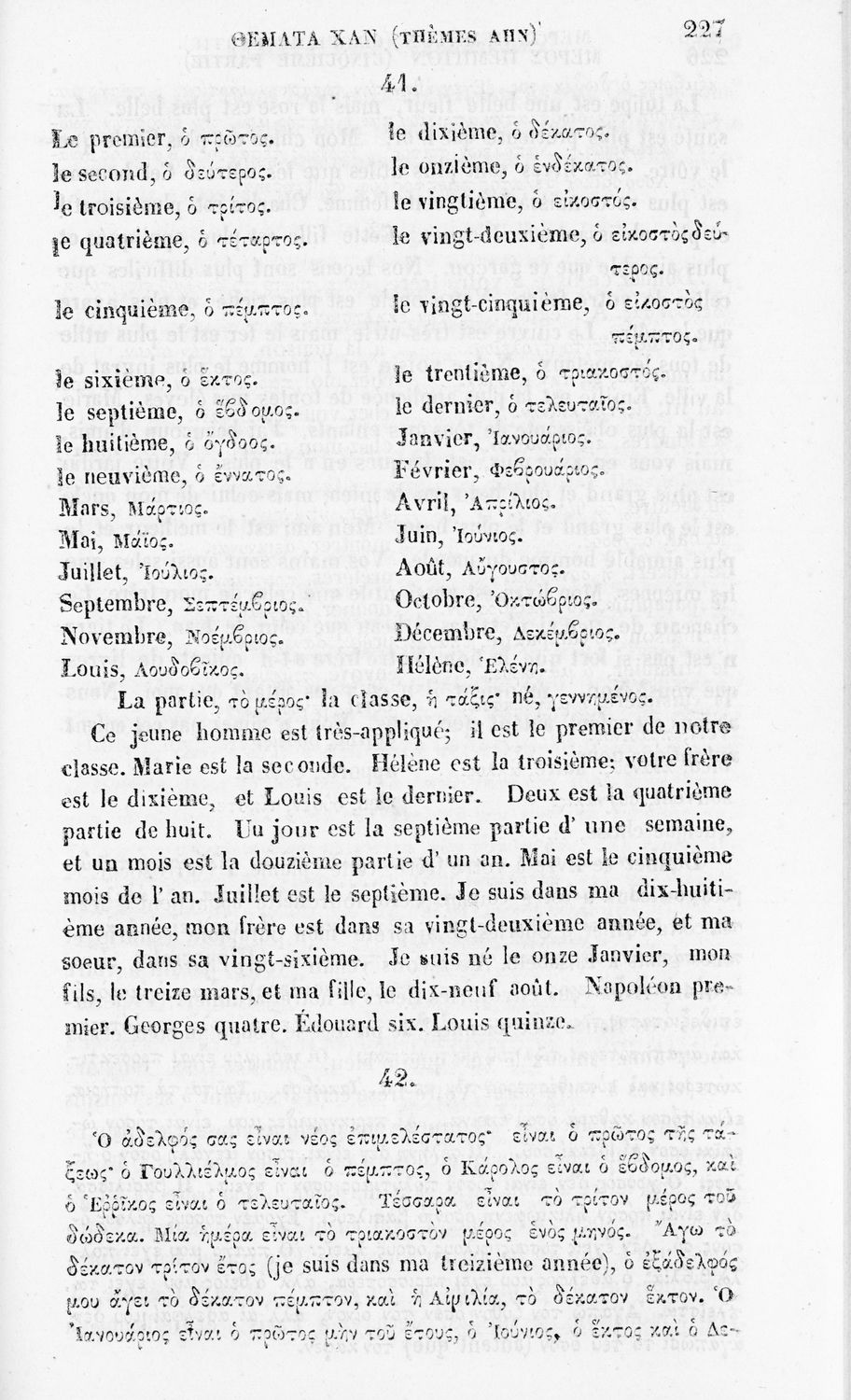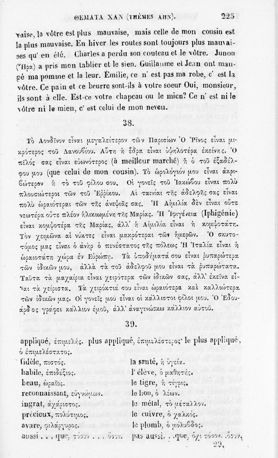 Γραμματική της Γαλλικής γλώσσας για τα Ελληνικά Σχολεία και Παρθεναγωγεία που αναλύει τα μέρη του λόγου και περιέχει παραδείγματα και ασκήσεις.