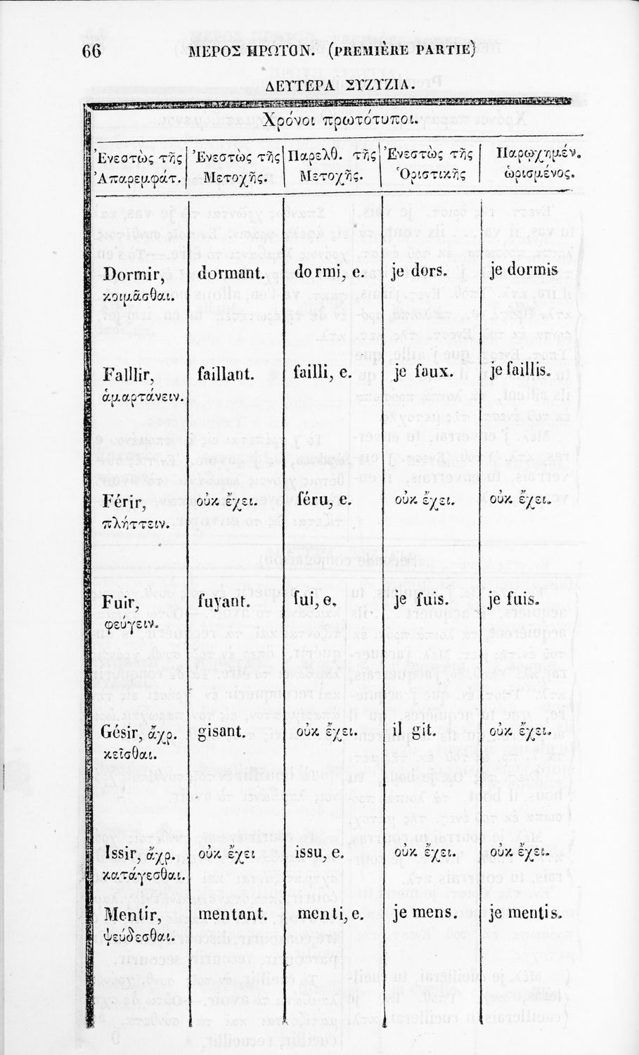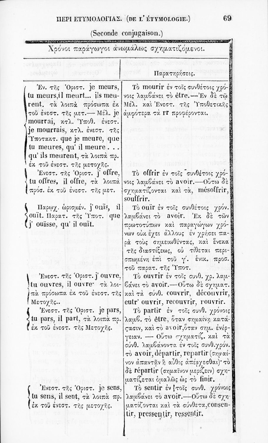 Μαθητικό βοήθημα Αρχαίων Ελληνικών για τα Ελληνικά Σχολεία, Παρθεναγωγεία και Γυμνάσια που περιλαμβάνει γραμματική της αρχαίας ελληνικής και κατάλογο ανωμάλων ρημάτων.