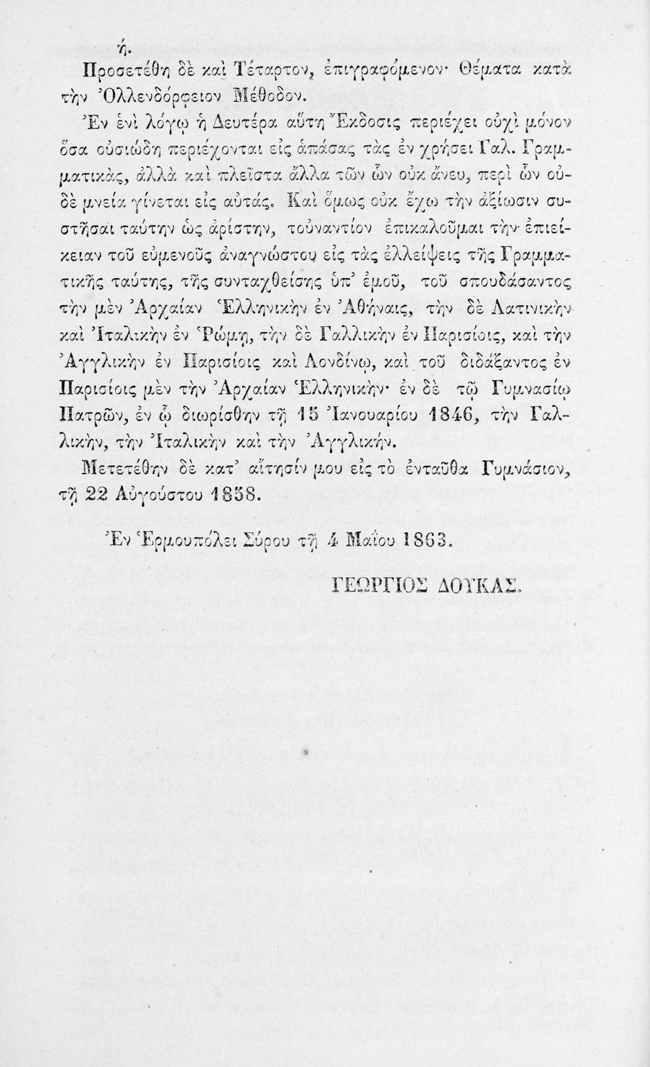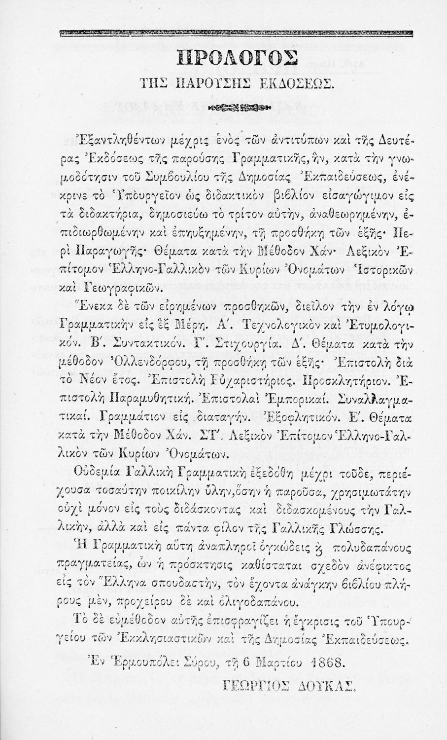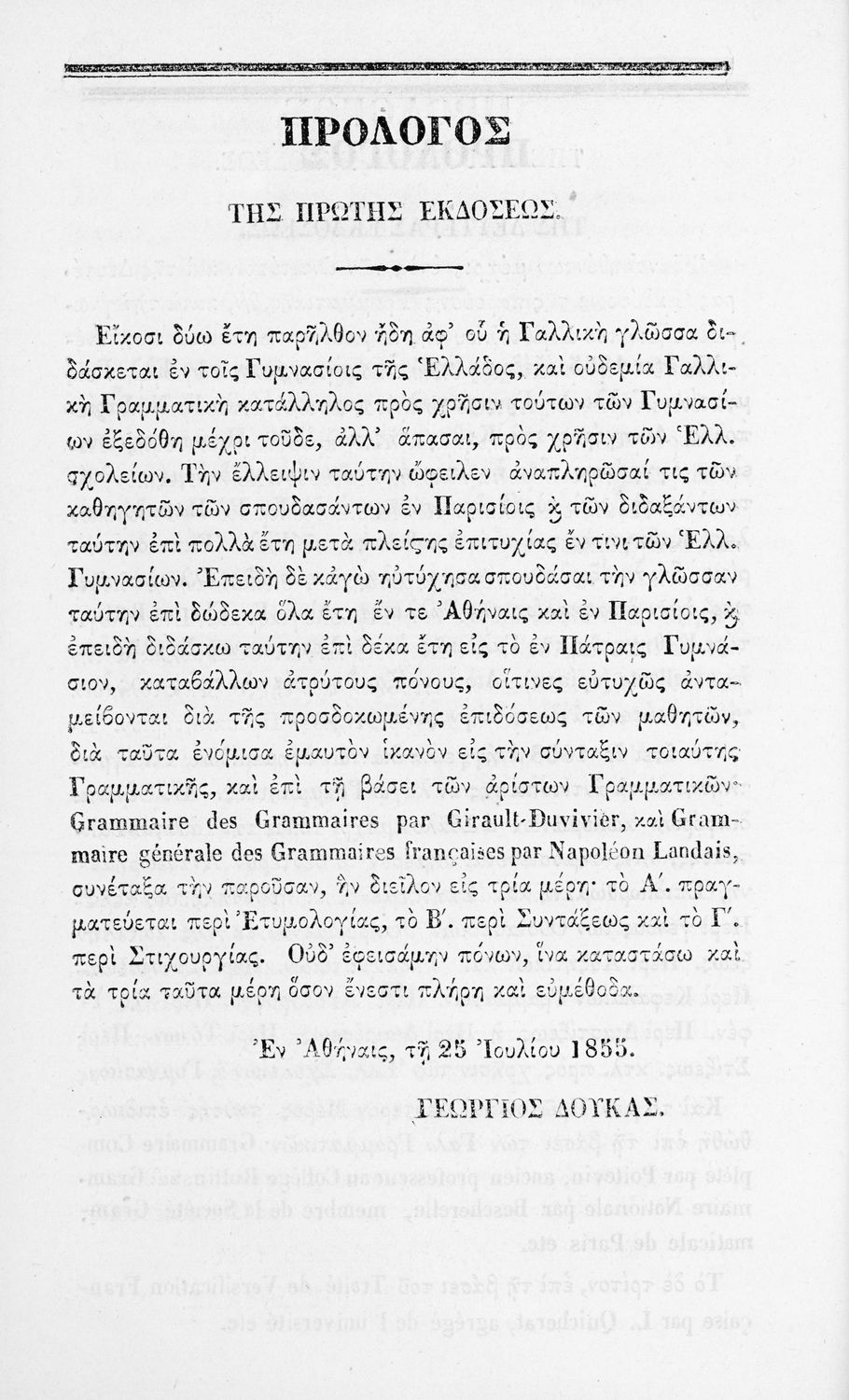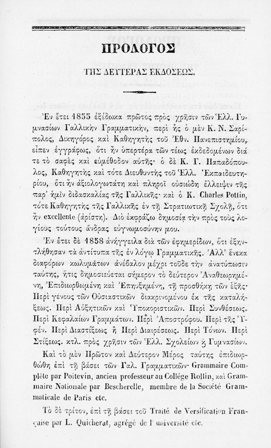 Τίτλος: Γραμματική της γαλλικής γλώσσης προς χρήσιν των Ελληνικών Σχολείων και Γυμνασίων