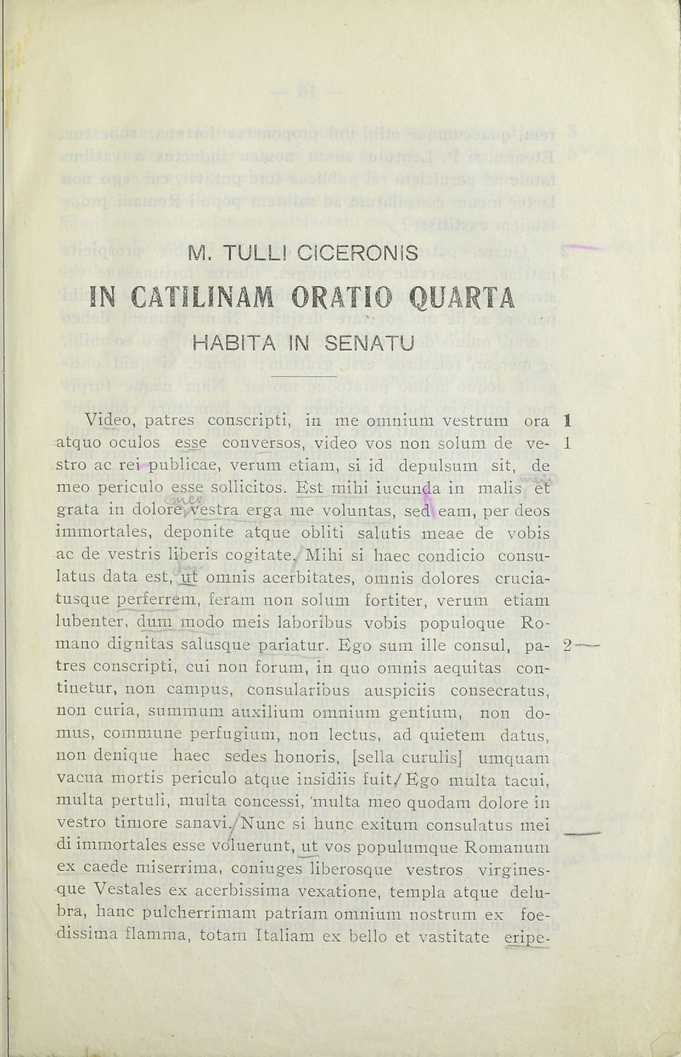 Σχολικό εγχειρίδιο Λατινικών Γυμνασίου που περιλαμβάνει κείμενο, βιογραφικό σημείωμα του Κικέρωνα, εισαγωγικές παρατηρήσεις και ερμηνευτικές σημειώσεις.