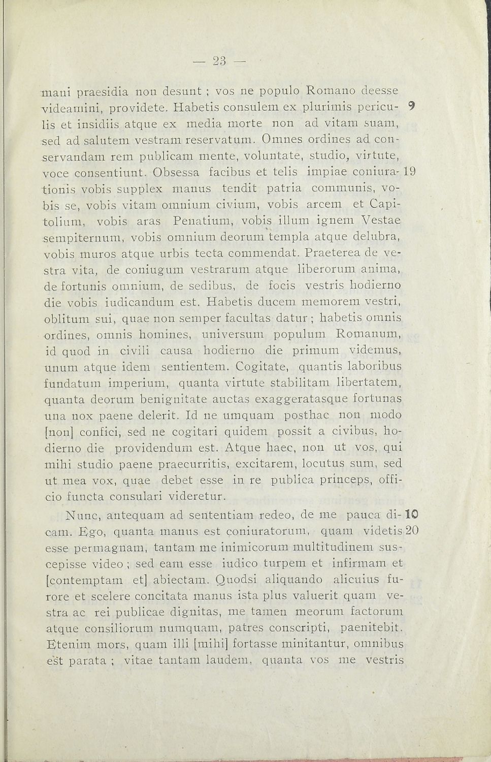 Σχολικό εγχειρίδιο Λατινικών για τη Γ΄ Γυμνασίου που περιλαμβάνει κείμενο, βιογραφικό σημείωμα του Κικέρωνα, εισαγωγικές παρατηρήσεις και ερμηνευτικές σημειώσεις.