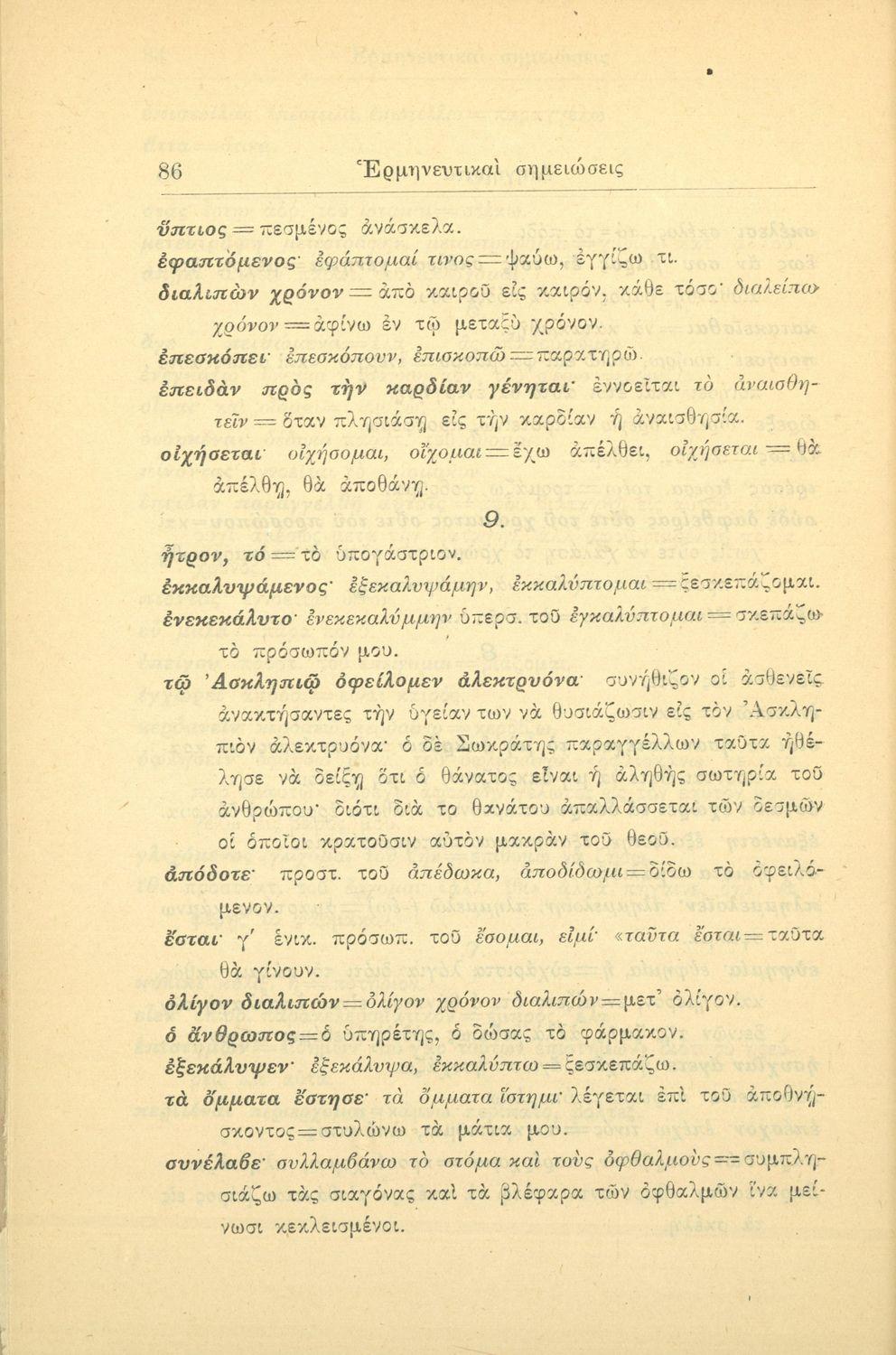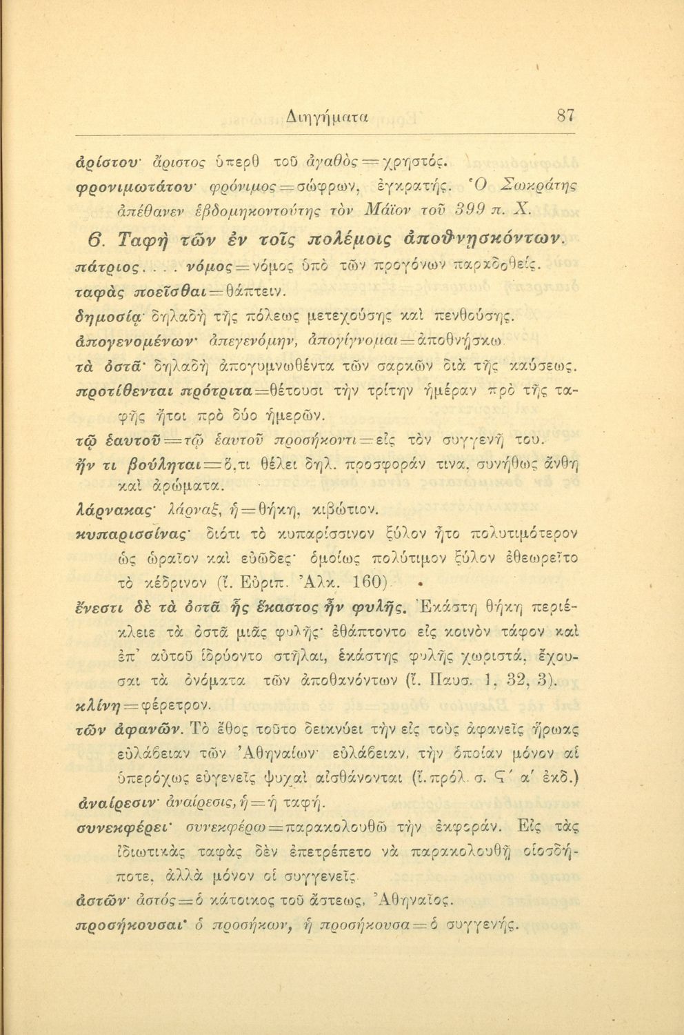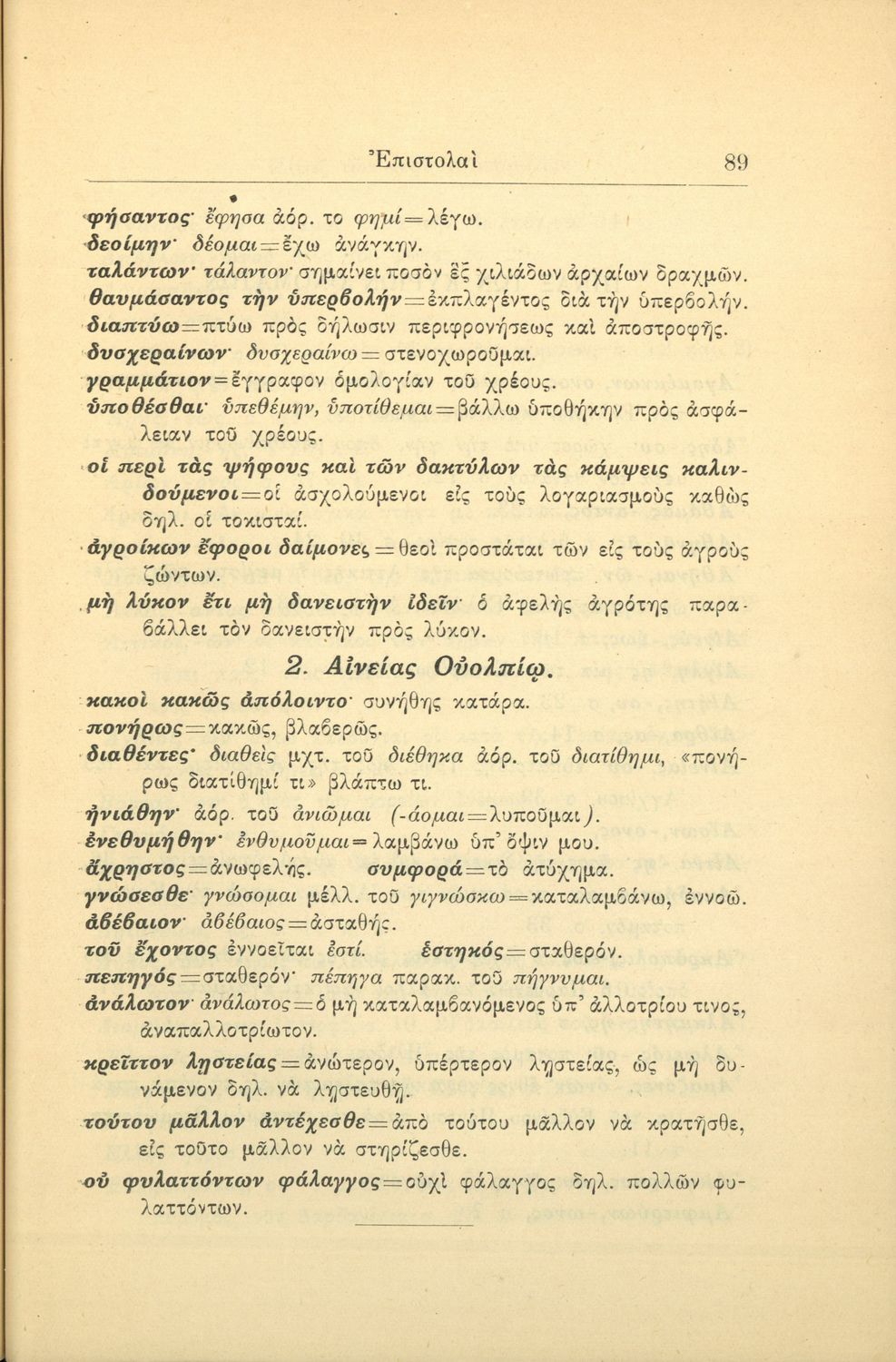 Σχολικό εγχειρίδιο Αρχαίων Ελληνικών Γ' Ελληνικού Σχολείου που περιλαμβάνει γραμματική της αρχαίας ελληνικής, αποσπάσματα από το έργο του Ξενοφώντα Ελληνικά και τα έργα του Λουκιανού Ενύπνιον και Ανάχαρσις, ...