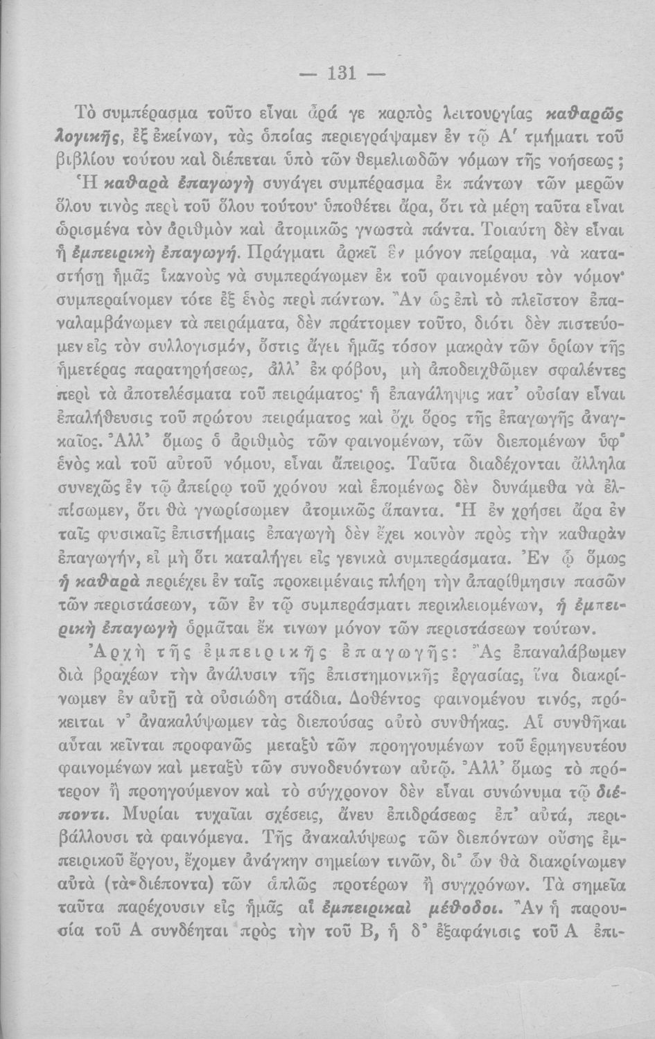 LDR 01481 2200217 4500 035 ## _a20-03170 040 ## _aΚΕΝΕΚ - Εταιρεία Σπουδών Νεοελληνικού Πολιτισμού και Παιδείας 041 ## _ael 100 ## _aΝικ. Στυλ. Μπαξεβανάκις 110 ## _a3170 245 0# _aΛογική η μόνη εγκεκριμένη διά την Δ΄ τάξιν των Τετραταξίων Γυμνασίων και την αντίστοιχον τάξιν των λοιπών σχολείων της Μέσης Εκπαιδεύσεως 250 ## _a3η Έκδοση 260 ## _aΑθήνα _bΙωάννης Δ. Κολλάρος, Βιβλιοπωλείο της "Εστίας" _c1922 300 ## _a174 _c19 520 ## _aΣχολικό εγχειρίδιο Λογικής Δ΄ Τετραταξίου Γυμνασίου που είναι χωρισμένο σε καθαρή λογική και μεθοδολογία των φυσικών επιστημών. Περιέχει και ασκήσεις λογικής. 521 ## _aΔ' Γυμνασίου 522 ## _aΕλλάδα 546 ## _aΚαθαρεύουσα 563 ## _aΜαλακό Εξώφυλλο 583 ## _a21336/19-8-1922 _c1922 650 #4 _aΑνάλυση και σύνθεση _aΔιαιρέσεις λογικής _aΈννοιες _aΗθικές και φυσικές επιστήμες _aΚρίσεις _aΜεθοδολογία _aΣοφίσματα _aΣυλλογισμοί