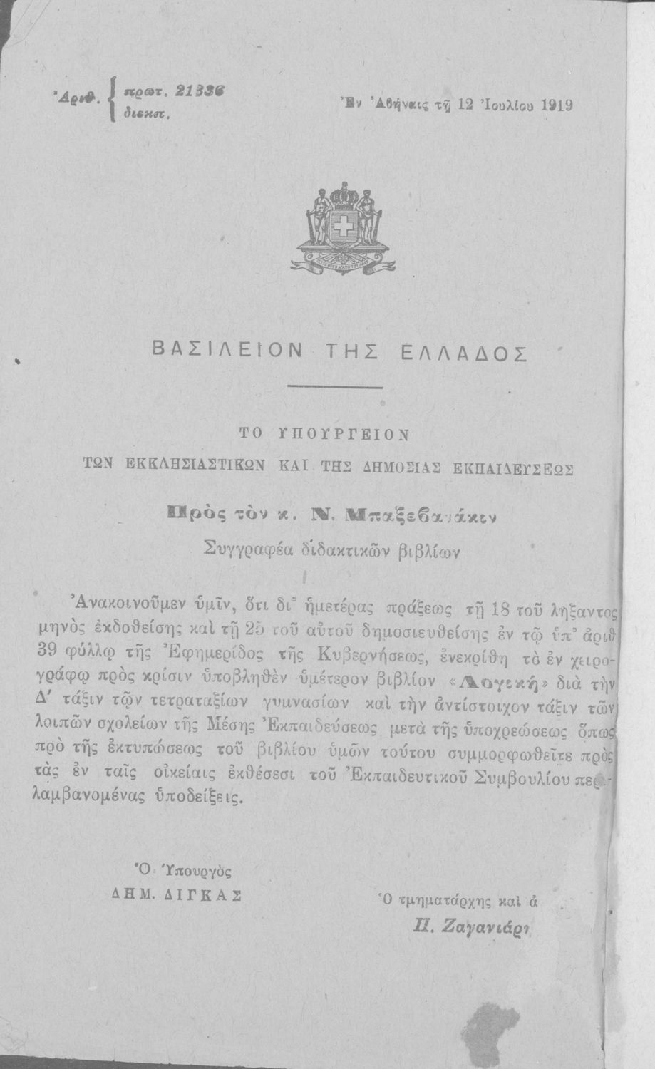 Εκδότης: Ιωάννης Δ. Κολλάρος, Βιβλιοπωλείο της "Εστίας" Έτος έκδοσης: 1922 Τόπος έκδοσης: Αθήνα Έκδοση: 3η Υπουργική απόφαση / Σύμβαση: 21336/19-8-1922 Έτος έγκρισης: 1922 |