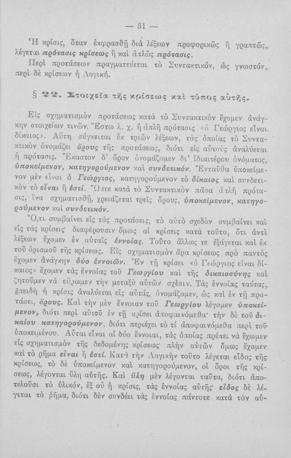 Βαθμίδα εκπαίδευσης: Δευτεροβάθμια Τάξη: Δ' Γυμνασίου Μάθημα: Λογική Γλώσσα: Καθαρεύουσα Παρουσίαση περιεχομένου: Σχολικό εγχειρίδιο Λογικής Δ΄ Τετραταξίου Γυμνασίου που είναι χωρισμένο σε καθαρή λογική και μεθοδολογία των φυσικών επιστημών. Περιέχει και ασκήσεις λογικής. |