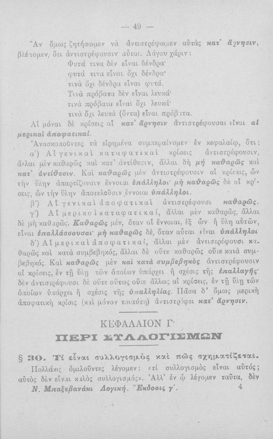 LDR 01481 2200217 4500 035 ## _a20-03170 040 ## _aΚΕΝΕΚ - Εταιρεία Σπουδών Νεοελληνικού Πολιτισμού και Παιδείας 041 ## _ael 100 ## _aΝικ. Στυλ. Μπαξεβανάκις 110 ## _a3170 245 0# _aΛογική η μόνη εγκεκριμένη διά την Δ΄ τάξιν των Τετραταξίων Γυμνασίων και την αντίστοιχον τάξιν των λοιπών σχολείων της Μέσης Εκπαιδεύσεως 250 ## _a3η Έκδοση 260 ## _aΑθήνα _bΙωάννης Δ. Κολλάρος, Βιβλιοπωλείο της "Εστίας" _c1922 300 ## _a174 _c19 520 ## _aΣχολικό εγχειρίδιο Λογικής Δ΄ Τετραταξίου Γυμνασίου που είναι χωρισμένο σε καθαρή λογική και μεθοδολογία των φυσικών επιστημών. Περιέχει και ασκήσεις λογικής. 521 ## _aΔ' Γυμνασίου 522 ## _aΕλλάδα 546 ## _aΚαθαρεύουσα 563 ## _aΜαλακό Εξώφυλλο 583 ## _a21336/19-8-1922 _c1922 650 #4 _aΑνάλυση και σύνθεση _aΔιαιρέσεις λογικής _aΈννοιες _aΗθικές και φυσικές επιστήμες _aΚρίσεις _aΜεθοδολογία _aΣοφίσματα _aΣυλλογισμοί