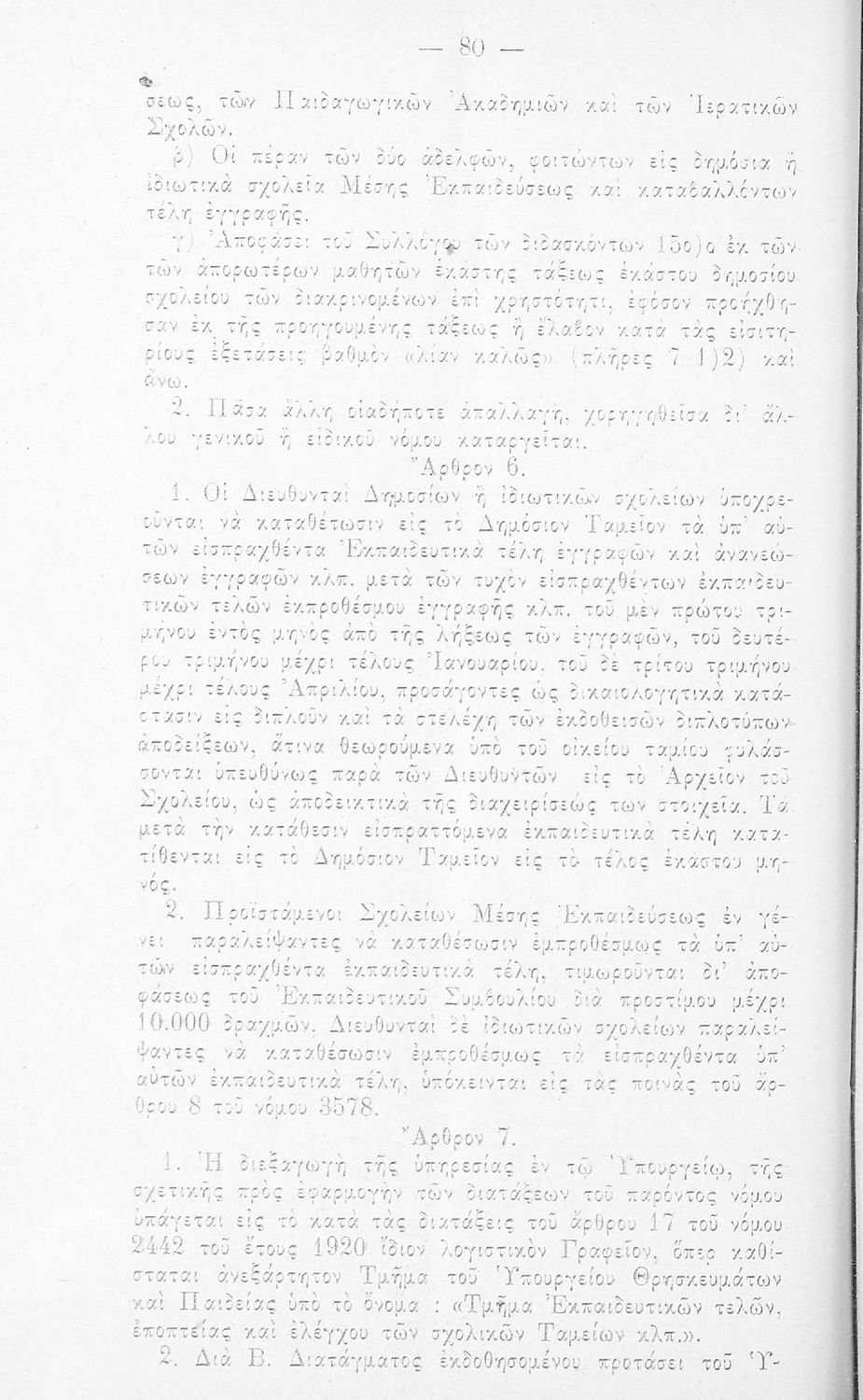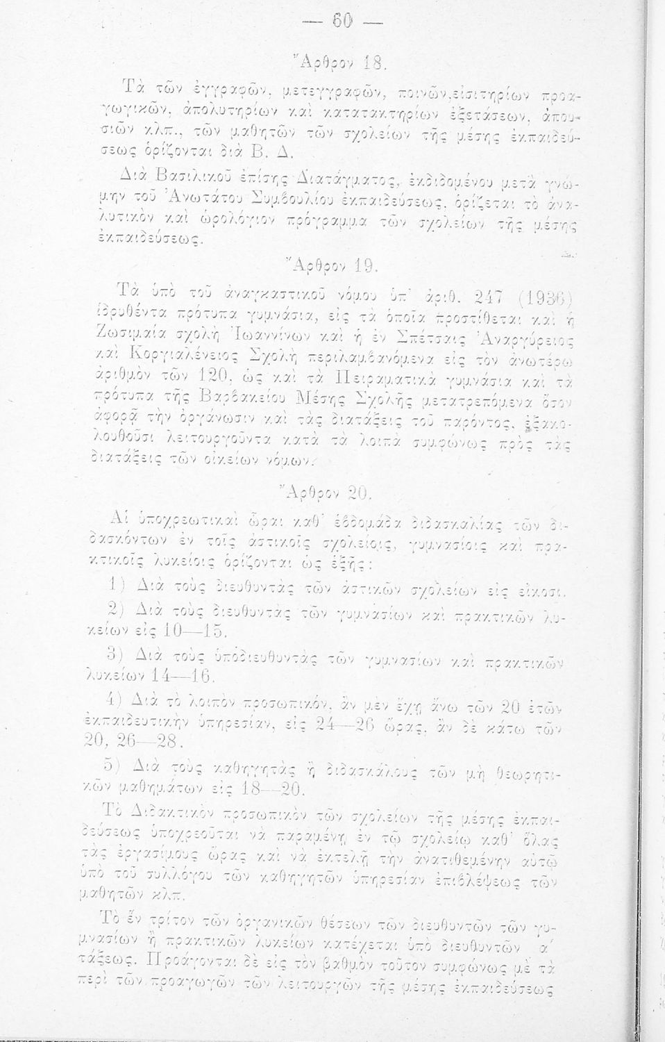 Έκδοση του Υπουργείου Παιδείας (Διεύθυνση Μέσης Εκπαιδεύσεως –Τμήμα Διοικητικού) που περιλαμβάνει τους αναγκαστικούς νόμους 1800/1939 και 1849/1939 καθώς και τις αιτιολογικές τους εκθέσεις.