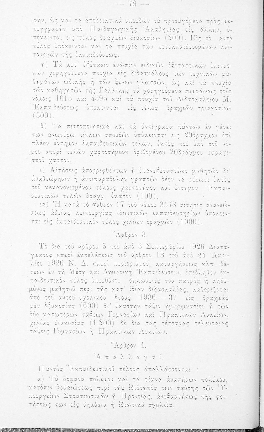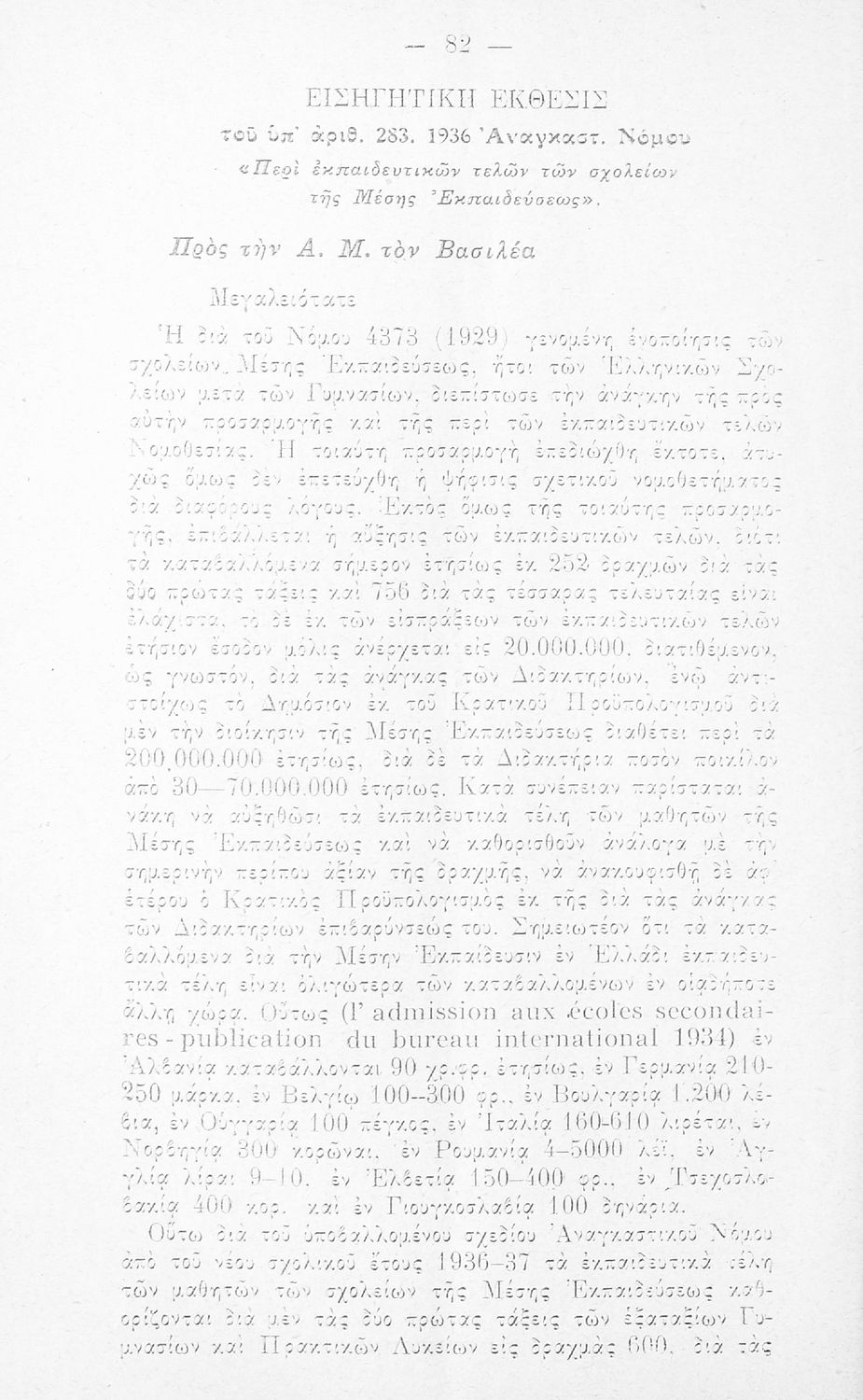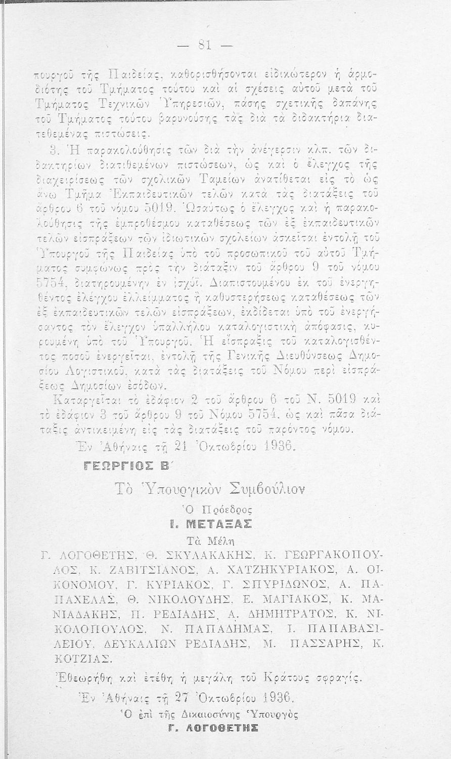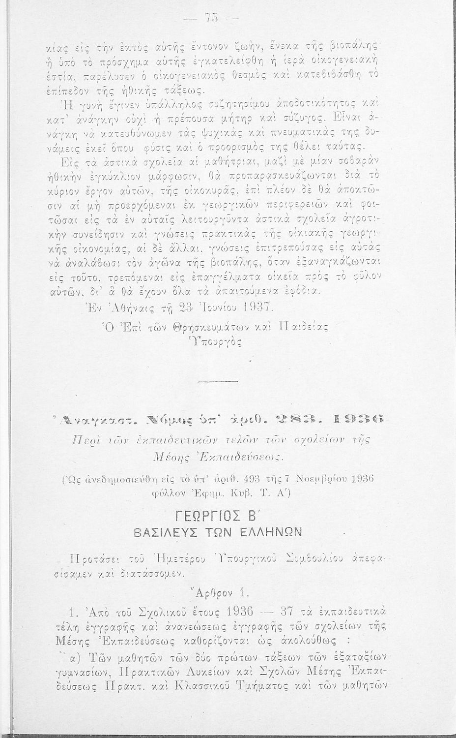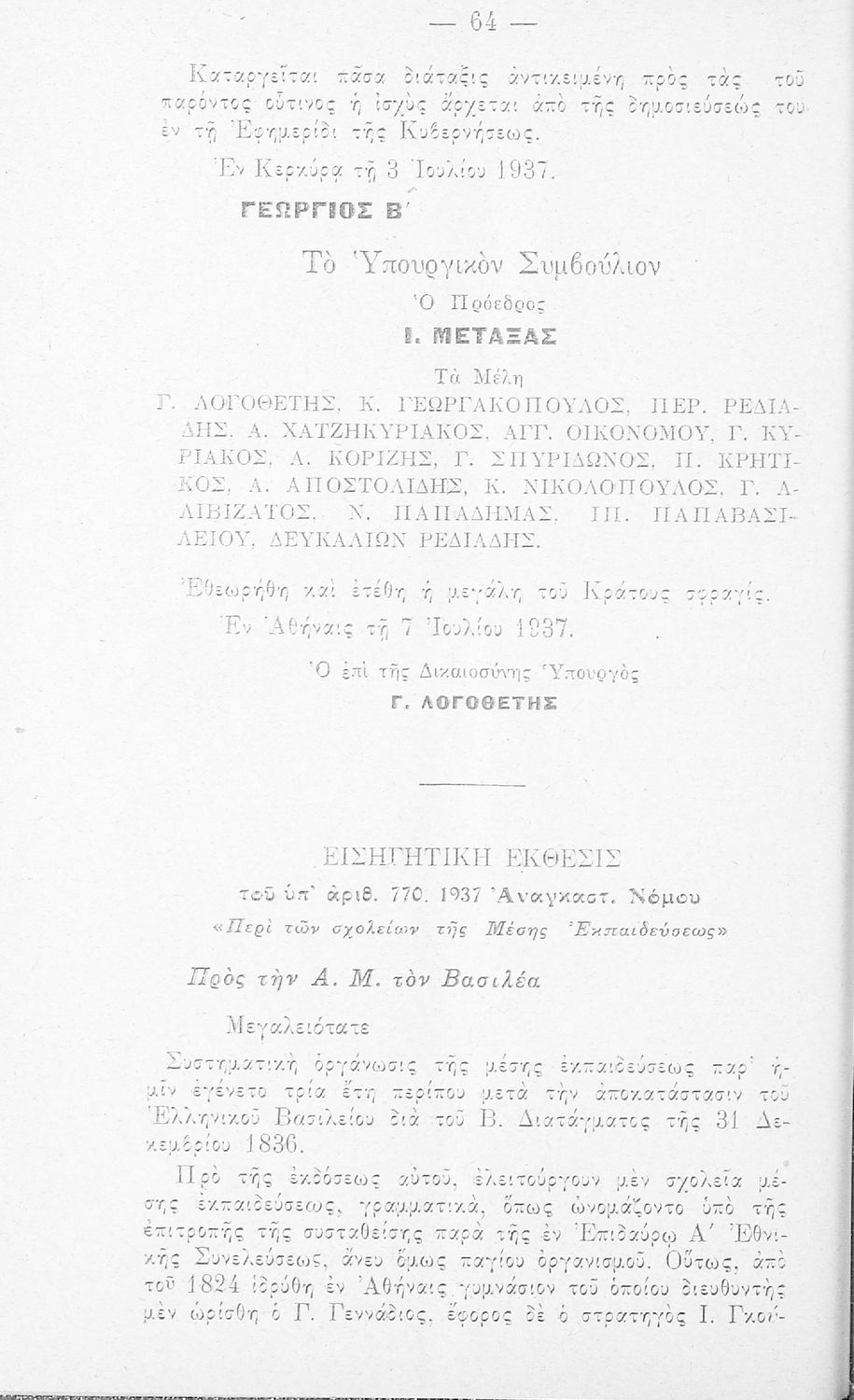 Εκπαιδευτικοί Νόμοι έτους 1937 και εισηγητικαί αυτών εκθέσεις