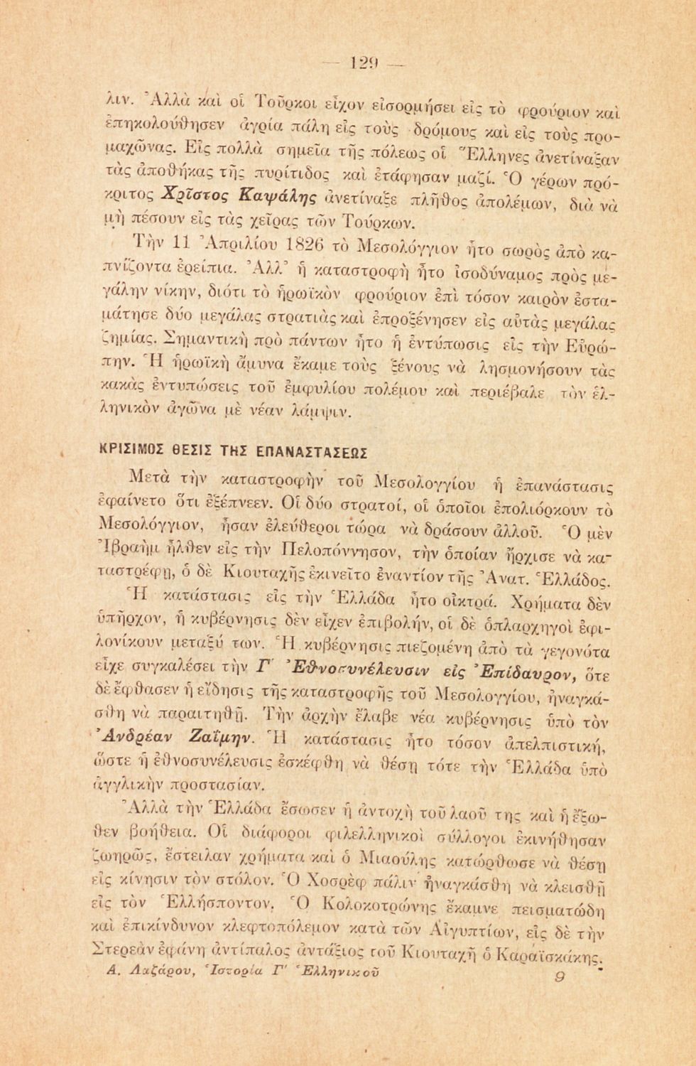 Ελληνική ιστορία από της αλώσεως της Κωνσταντινουπόλεως υπό των Φράγκων μέχρι των ημερών μας διά την τρίτην τάξιν των Ελληνικών Σχολείων και των αντιστοίχων των λοιπών σχολείων της Μέσης Εκπαιδεύσεως