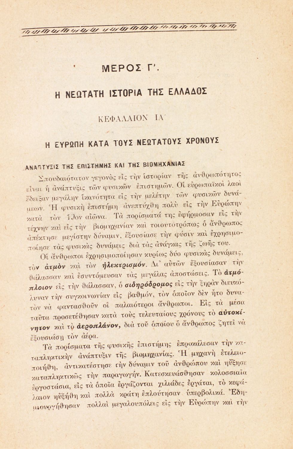 Ελληνική ιστορία από της αλώσεως της Κωνσταντινουπόλεως υπό των Φράγκων μέχρι των ημερών μας διά την τρίτην τάξιν των Ελληνικών Σχολείων και των αντιστοίχων των λοιπών σχολείων της Μέσης Εκπαιδεύσεως