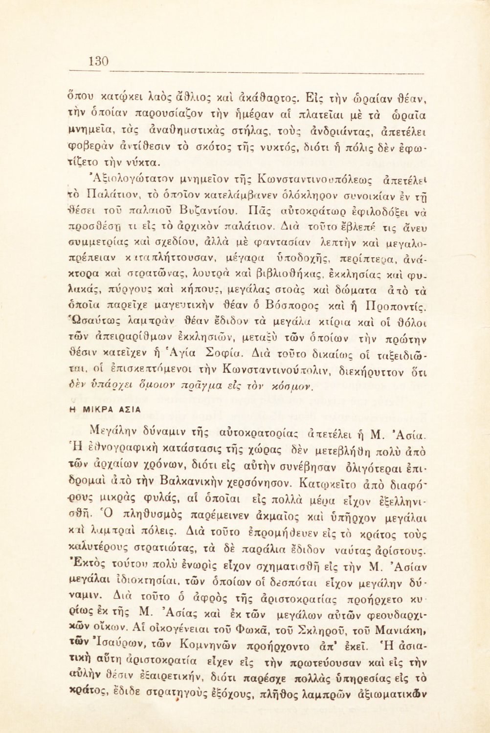 Βαθμίδα εκπαίδευσης: Δευτεροβάθμια Τάξη: Ε' Γυμνασίου Μάθημα: Ιστορία Γλώσσα: Καθαρεύουσα Παρουσίαση περιεχομένου: Σχολικό εγχειρίδιο Ιστορίας Ε΄ Γυμνασίου που καλύπτει την περίοδο από την ίδρυση της Βυζαντινής Αυτοκρατορίας μέχρι την άλωση της Κωνσταντινούπολης. Περιέχει χρονολογικούς πίνακες δυναστειών, εικόνες και χάρτες. |