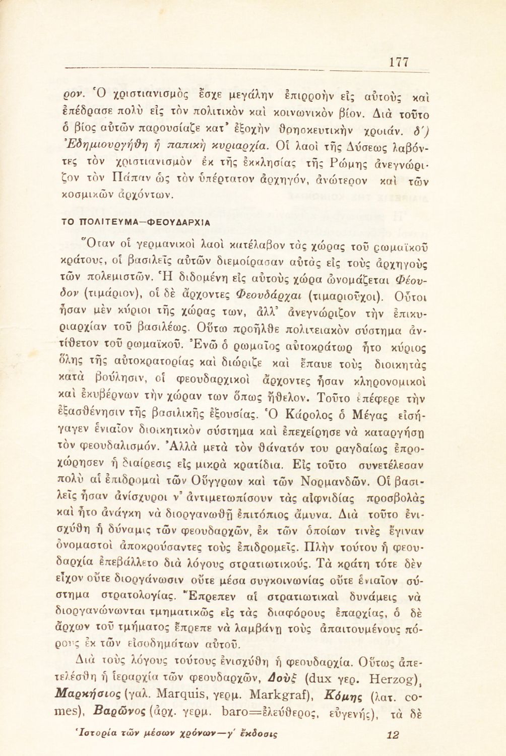 Ιστορία ελληνική και ευρωπαϊκή των μέσων χρόνων (διά την Ε΄ τάξιν των Γυμνασίων και τας αντιστοίχους των λοιπών σχολείων της Μέσης Εκπαιδεύσεως