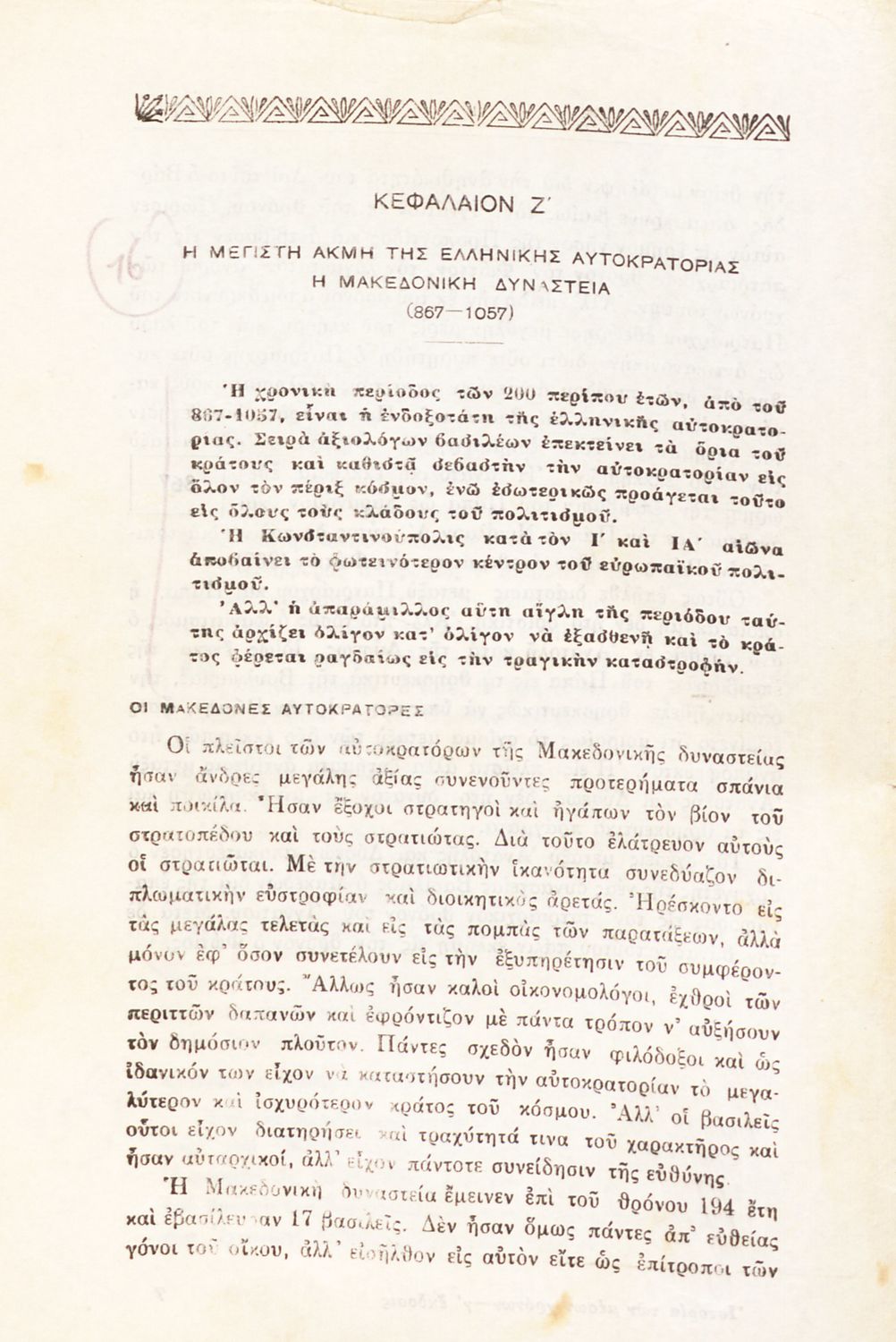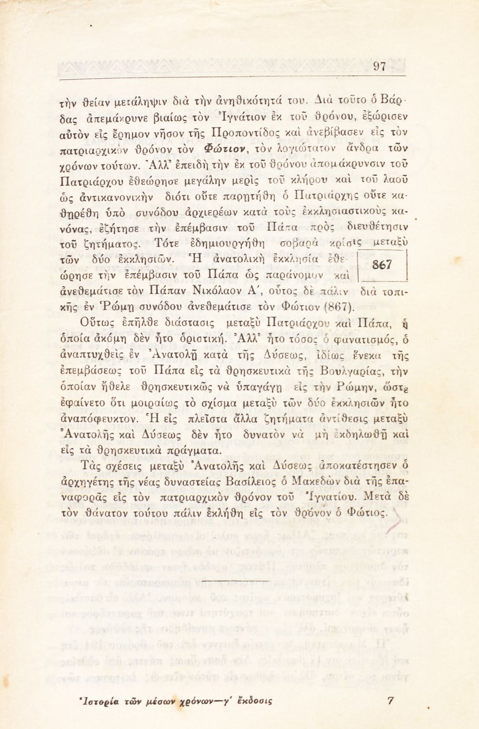 Βαθμίδα εκπαίδευσης: Δευτεροβάθμια Τάξη: Ε' Γυμνασίου Μάθημα: Ιστορία Γλώσσα: Καθαρεύουσα Παρουσίαση περιεχομένου: Σχολικό εγχειρίδιο Ιστορίας Ε΄ Γυμνασίου που καλύπτει την περίοδο από την ίδρυση της Βυζαντινής Αυτοκρατορίας μέχρι την άλωση της Κωνσταντινούπολης. Περιέχει χρονολογικούς πίνακες δυναστειών, εικόνες και χάρτες. |