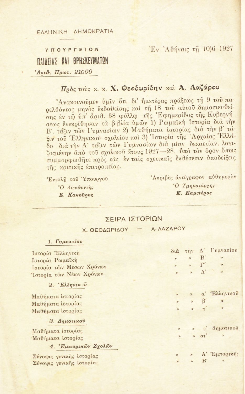 Υπουργική απόφαση / Σύμβαση: 21009/10-6-1927