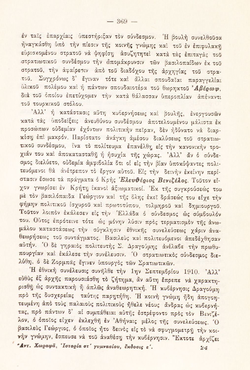 Ιστορία της νέας Ελλάδος (1453-1924) και η σύγχρονος της όλης Ευρώπης διά την ΣΤ΄ τάξιν των Γυμνασίων
