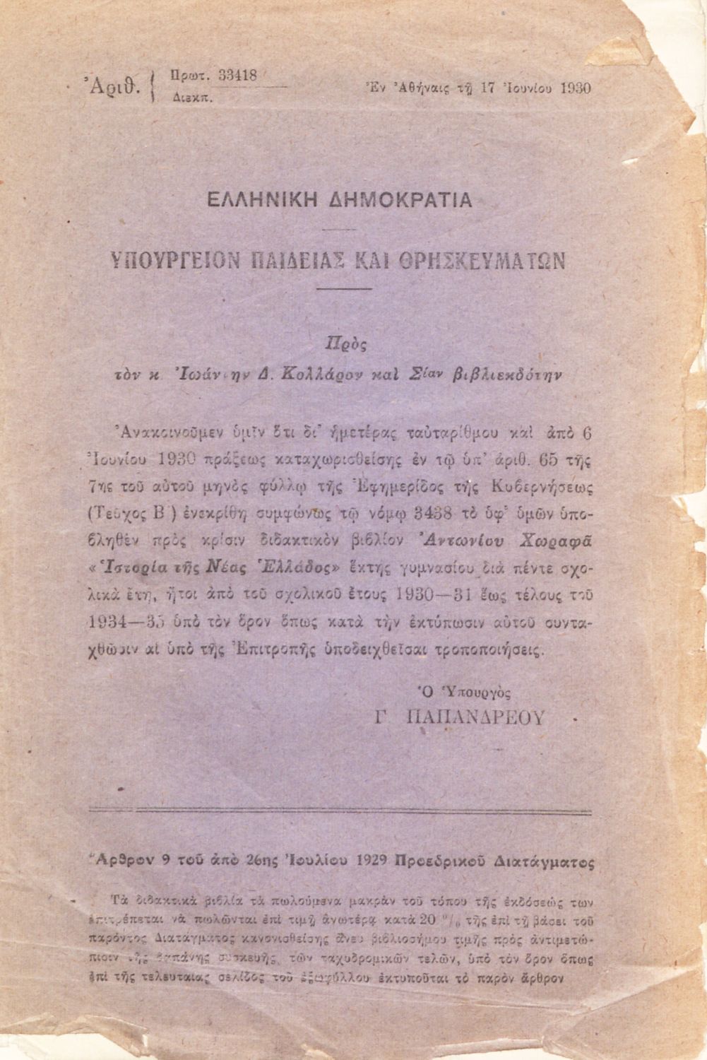 Υπουργική απόφαση / Σύμβαση: 334118/ 6-6-1930