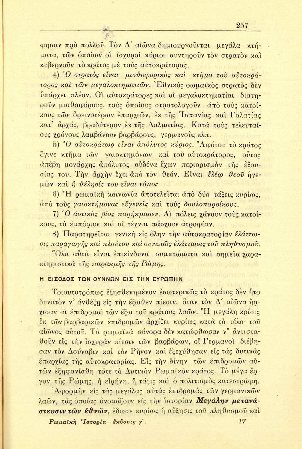 Σχολικό εγχειρίδιο Ιστορίας Δ' Εξαταξίου Γυμνασίου που καλύπτει την περίοδο από την κατάληψη της Ελλάδας από τους Ρωμαίους μέχρι την παρακμή της αυτοκρατορίας και την εισβολή των Ούννων και των Γότθων στην Ευρώπη.