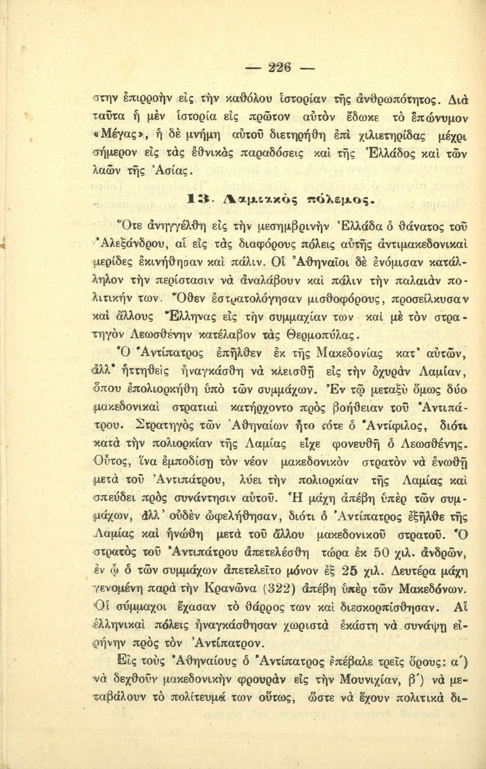 Βαθμίδα εκπαίδευσης: Δευτεροβάθμια Τάξη: Α' Γυμνασίου Μάθημα: Ιστορία Γλώσσα: Καθαρεύουσα Παρουσίαση περιεχομένου: Σχολικό εγχειρίδιο Ιστορίας Α΄ Γυμνασίου που καλύπτει την περίοδο από τους προϊστορικούς χρόνους μέχρι τον θάνατο του Μεγάλου Αλεξάνδρου. |