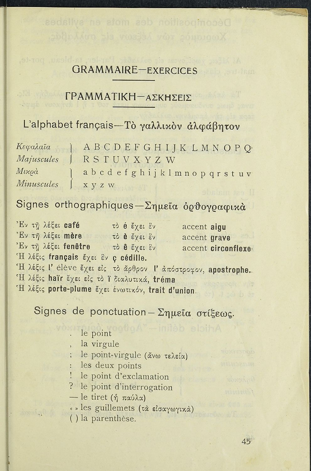 Βαθμίδα εκπαίδευσης: Δευτεροβάθμια Τάξη: Α' Γυμνασίου / Β' Γυμνασίου Μάθημα: Γαλλικά Γλώσσα: Καθαρεύουσα Παρουσίαση περιεχομένου: Σχολικό εγχειρίδιο Γαλλικών για τις Α΄ και Β΄ Γυμνασίου που περιλαμβάνει 26 κείμενα προσαρμοσμένα στη διδασκαλία της γραμματικής και του συντακτικού. Περιέχει και γαλλικά τραγούδια. |