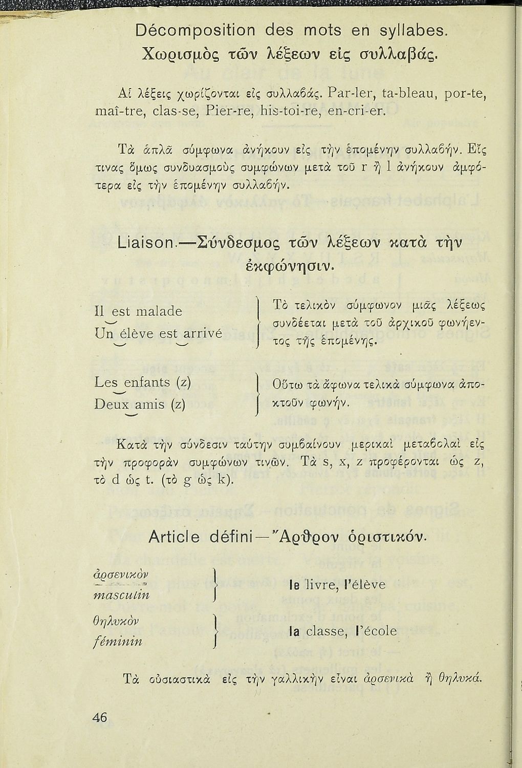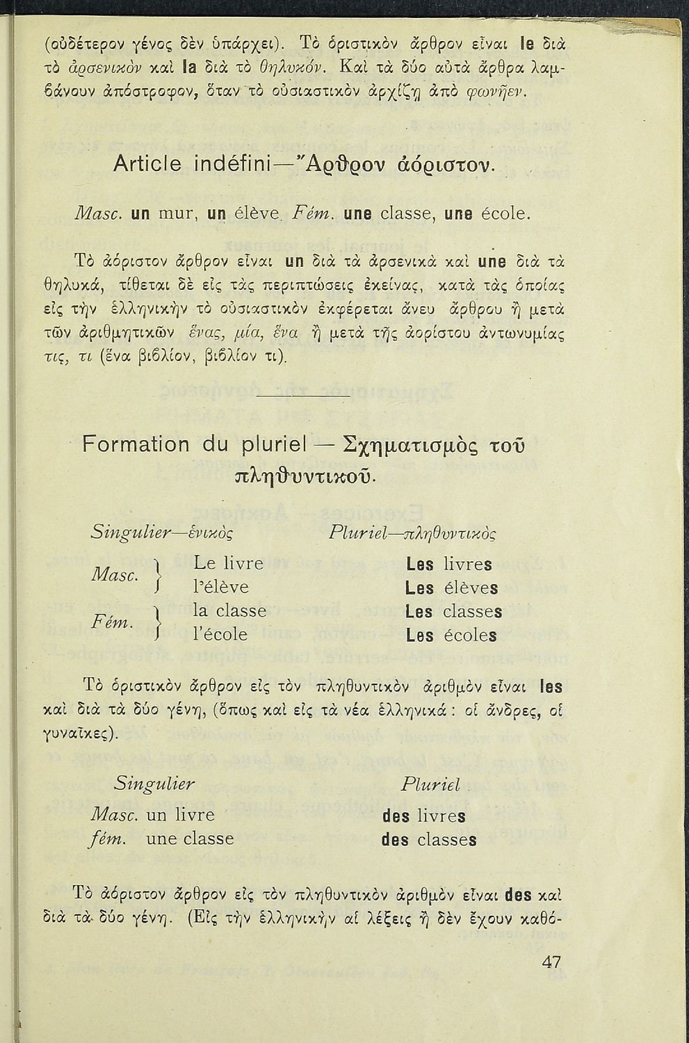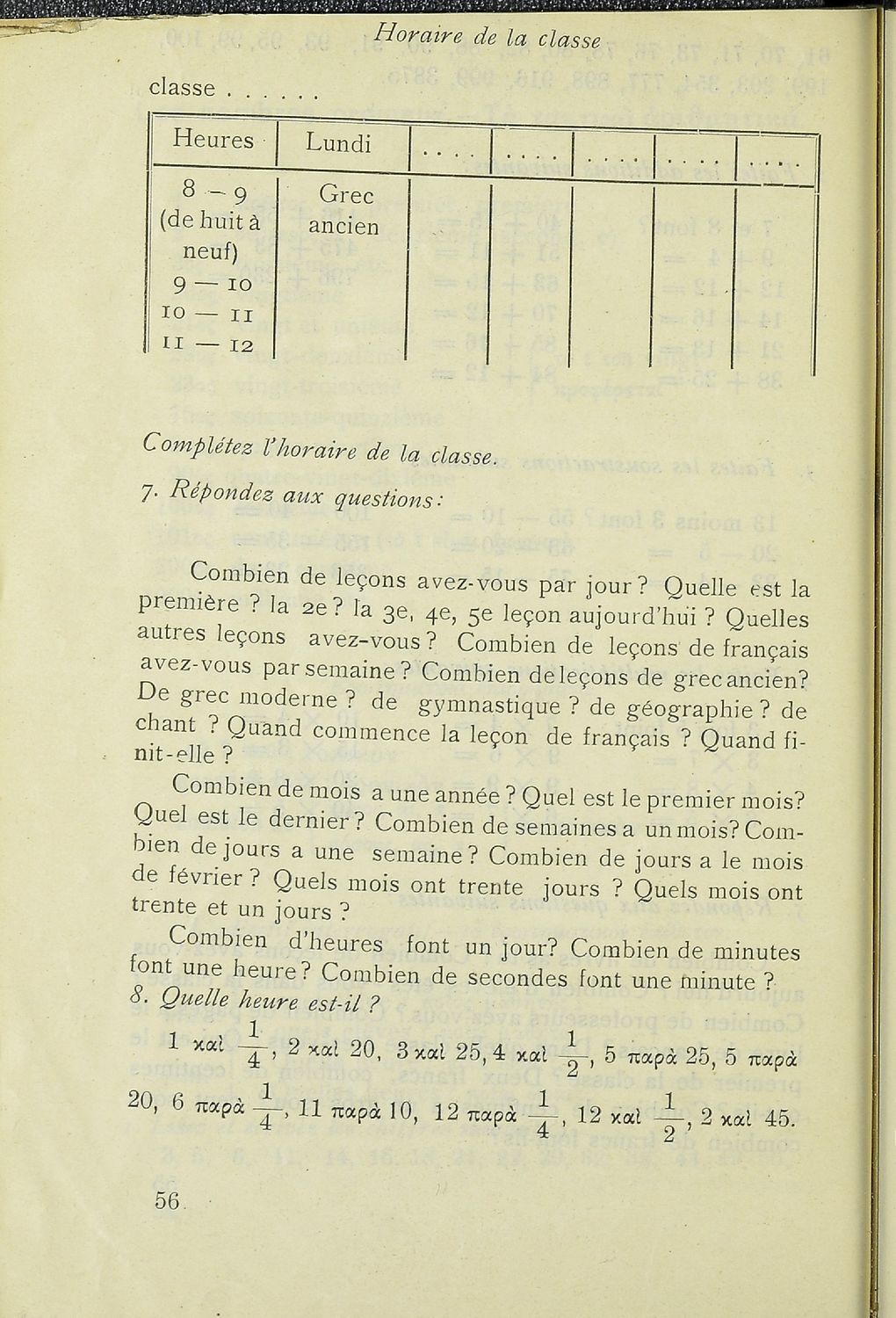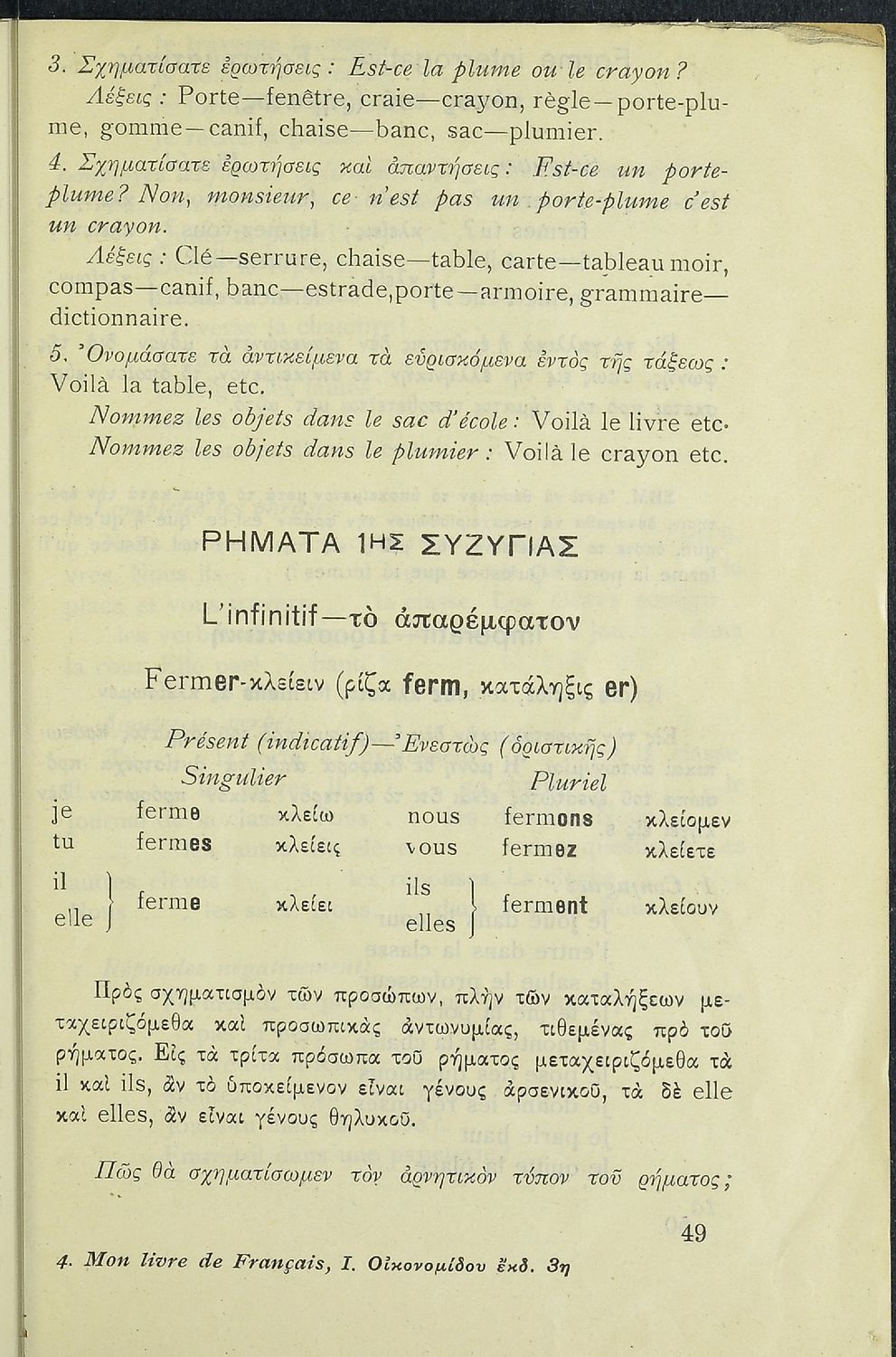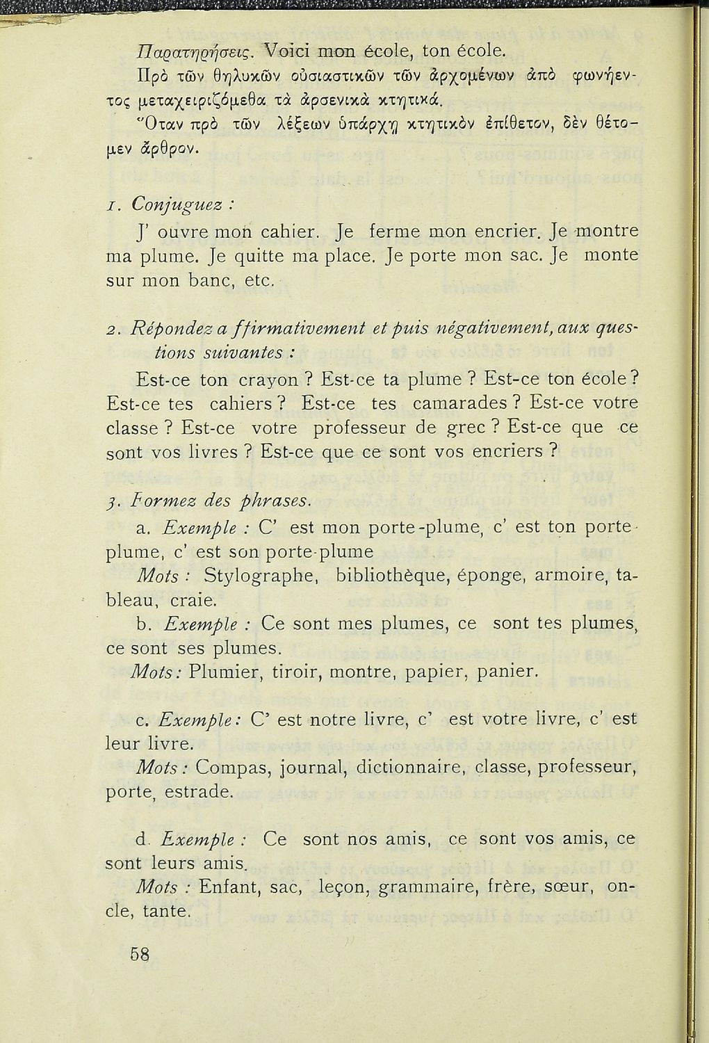 LDR 01407 2200229 4500 035 ## _a20-03278 040 ## _aΚΕΝΕΚ - Εταιρεία Σπουδών Νεοελληνικού Πολιτισμού και Παιδείας 041 ## _ael 100 ## _aΙ. Οικονομίδης 110 ## _a3278 245 0# _aMon livre de francais βιβλίον 1ον διά την Α΄ και Β΄ των Γυμνασίων και Ημιγυμνασίων (πρώτον έτος της διδασκαλίας των Γαλλικών) 250 ## _a3η Έκδοση 260 ## _aΑθήνα _bΙωάννης Ν. Σιδέρης _c1936 300 ## _a88 _bΣκίτσα (ασπρόμαυρα) _c19 520 ## _aΣχολικό εγχειρίδιο Γαλλικών για τις Α΄ και Β΄ Γυμνασίου που περιλαμβάνει 26 κείμενα προσαρμοσμένα στη διδασκαλία της γραμματικής και του συντακτικού. Περιέχει και γαλλικά τραγούδια. 521 ## _aΑ' Γυμνασίου / Β' Γυμνασίου 522 ## _aΕλλάδα 546 ## _aΚαθαρεύουσα 563 ## _aΜαλακό Εξώφυλλο 583 ## _a44782, 15296/13-8-1932 _c1932 650 #4 _aΓαλλικά άσματα _aΕικόνες _aΚλίσεις ονομάτων _aΠροθέσεις _aΡήματα 700 ## _aΣπ. Βυτωρόπουλος