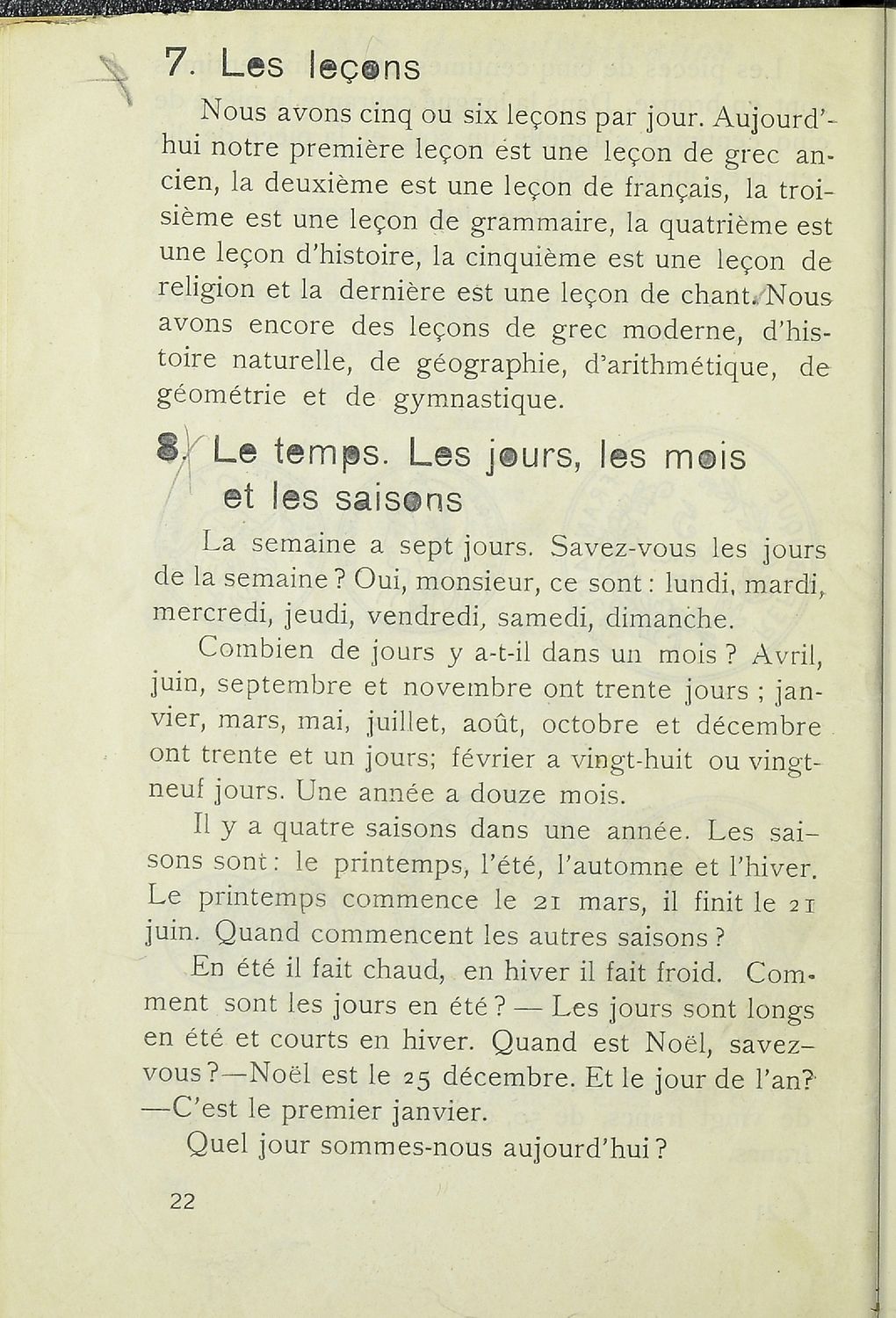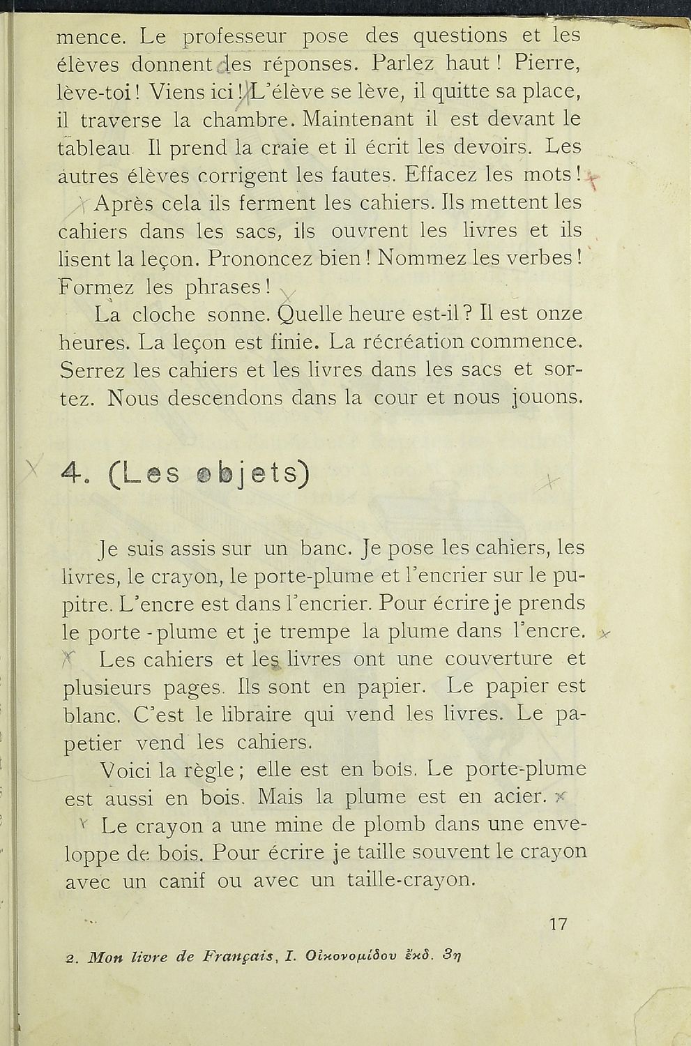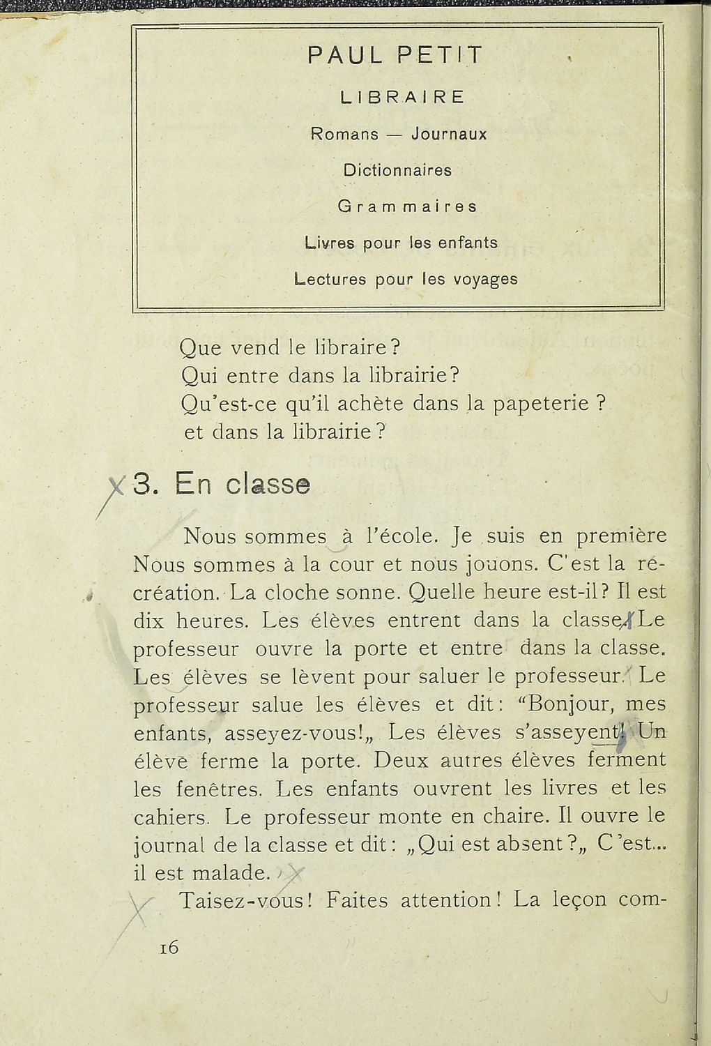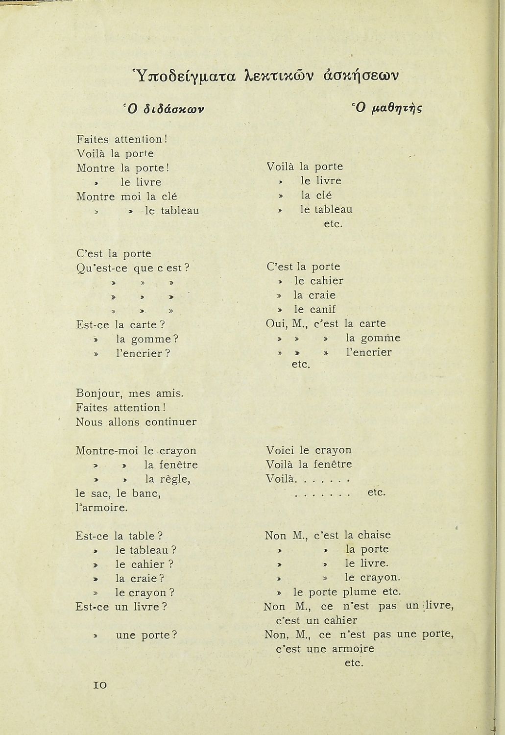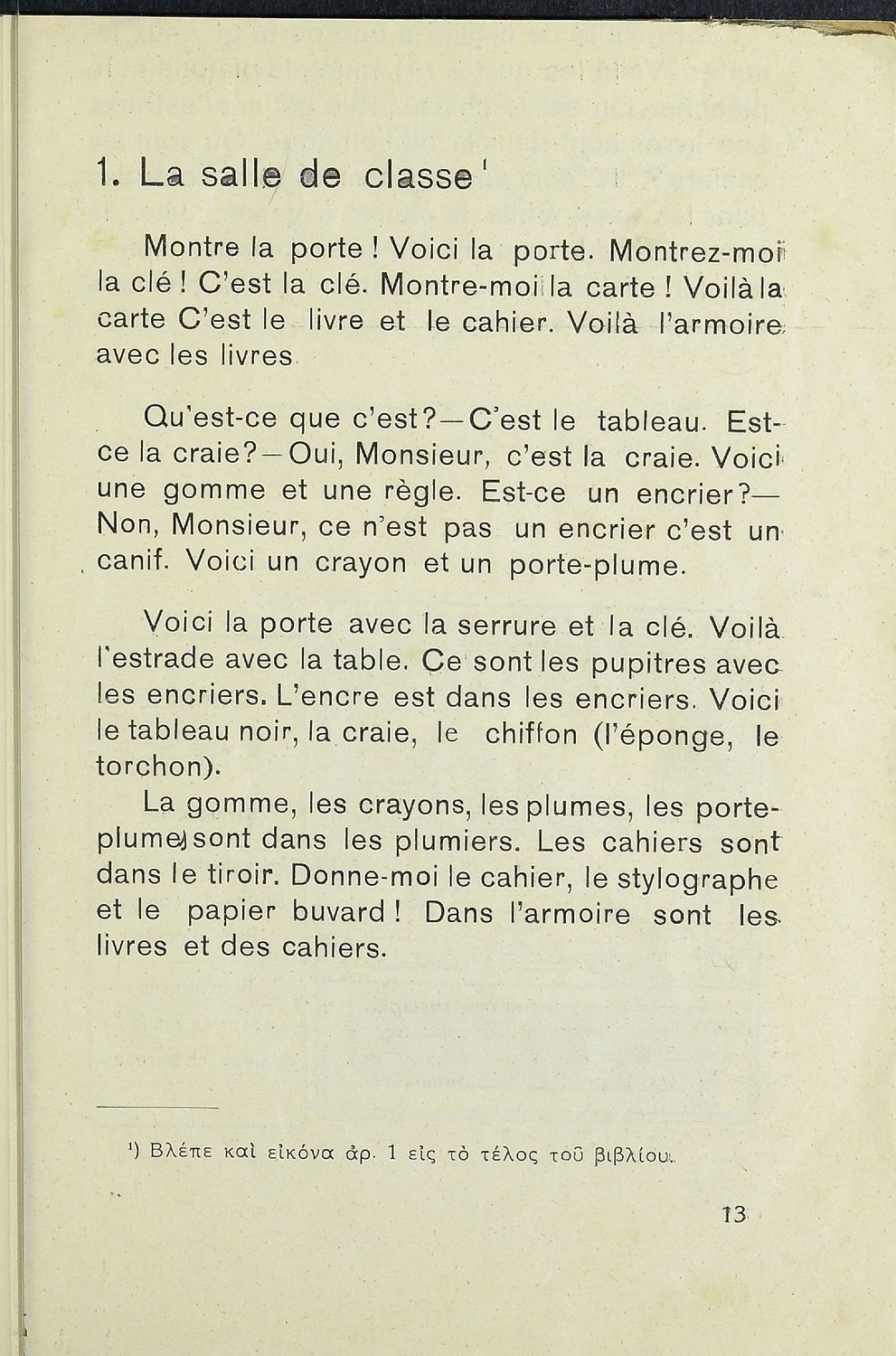 LDR 01407 2200229 4500 035 ## _a20-03278 040 ## _aΚΕΝΕΚ - Εταιρεία Σπουδών Νεοελληνικού Πολιτισμού και Παιδείας 041 ## _ael 100 ## _aΙ. Οικονομίδης 110 ## _a3278 245 0# _aMon livre de francais βιβλίον 1ον διά την Α΄ και Β΄ των Γυμνασίων και Ημιγυμνασίων (πρώτον έτος της διδασκαλίας των Γαλλικών) 250 ## _a3η Έκδοση 260 ## _aΑθήνα _bΙωάννης Ν. Σιδέρης _c1936 300 ## _a88 _bΣκίτσα (ασπρόμαυρα) _c19 520 ## _aΣχολικό εγχειρίδιο Γαλλικών για τις Α΄ και Β΄ Γυμνασίου που περιλαμβάνει 26 κείμενα προσαρμοσμένα στη διδασκαλία της γραμματικής και του συντακτικού. Περιέχει και γαλλικά τραγούδια. 521 ## _aΑ' Γυμνασίου / Β' Γυμνασίου 522 ## _aΕλλάδα 546 ## _aΚαθαρεύουσα 563 ## _aΜαλακό Εξώφυλλο 583 ## _a44782, 15296/13-8-1932 _c1932 650 #4 _aΓαλλικά άσματα _aΕικόνες _aΚλίσεις ονομάτων _aΠροθέσεις _aΡήματα 700 ## _aΣπ. Βυτωρόπουλος