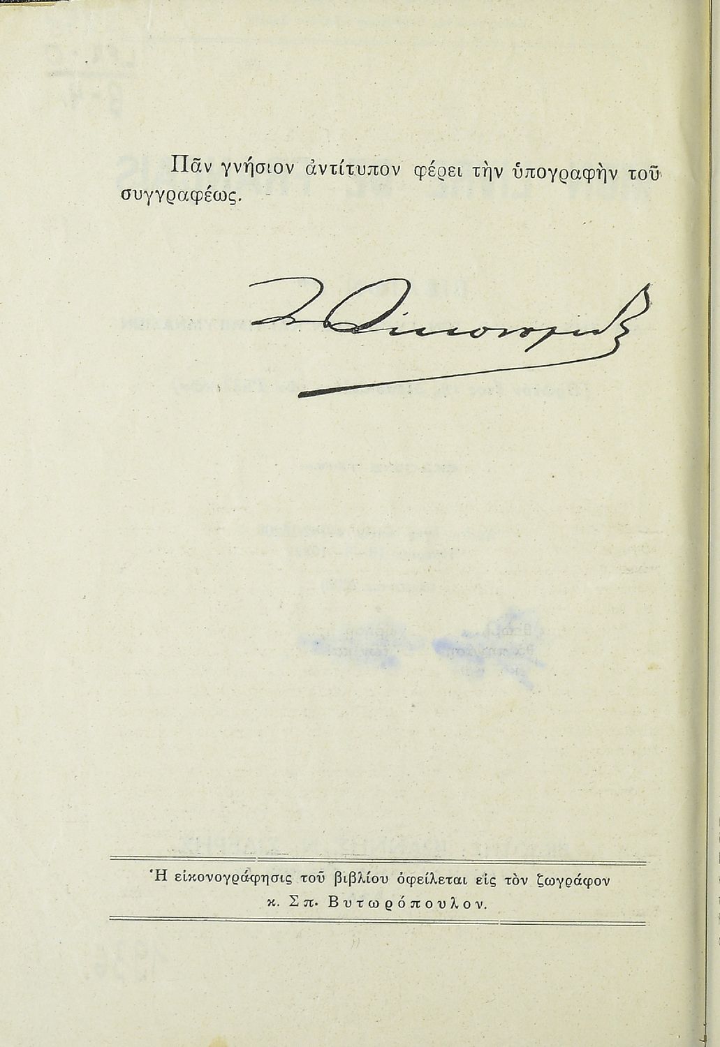 Εκδότης: Ιωάννης Ν. Σιδέρης Έτος έκδοσης: 1936 Τόπος έκδοσης: Αθήνα Έκδοση: 3η Υπουργική απόφαση / Σύμβαση: 44782, 15296/13-8-1932 Έτος έγκρισης: 1932 |