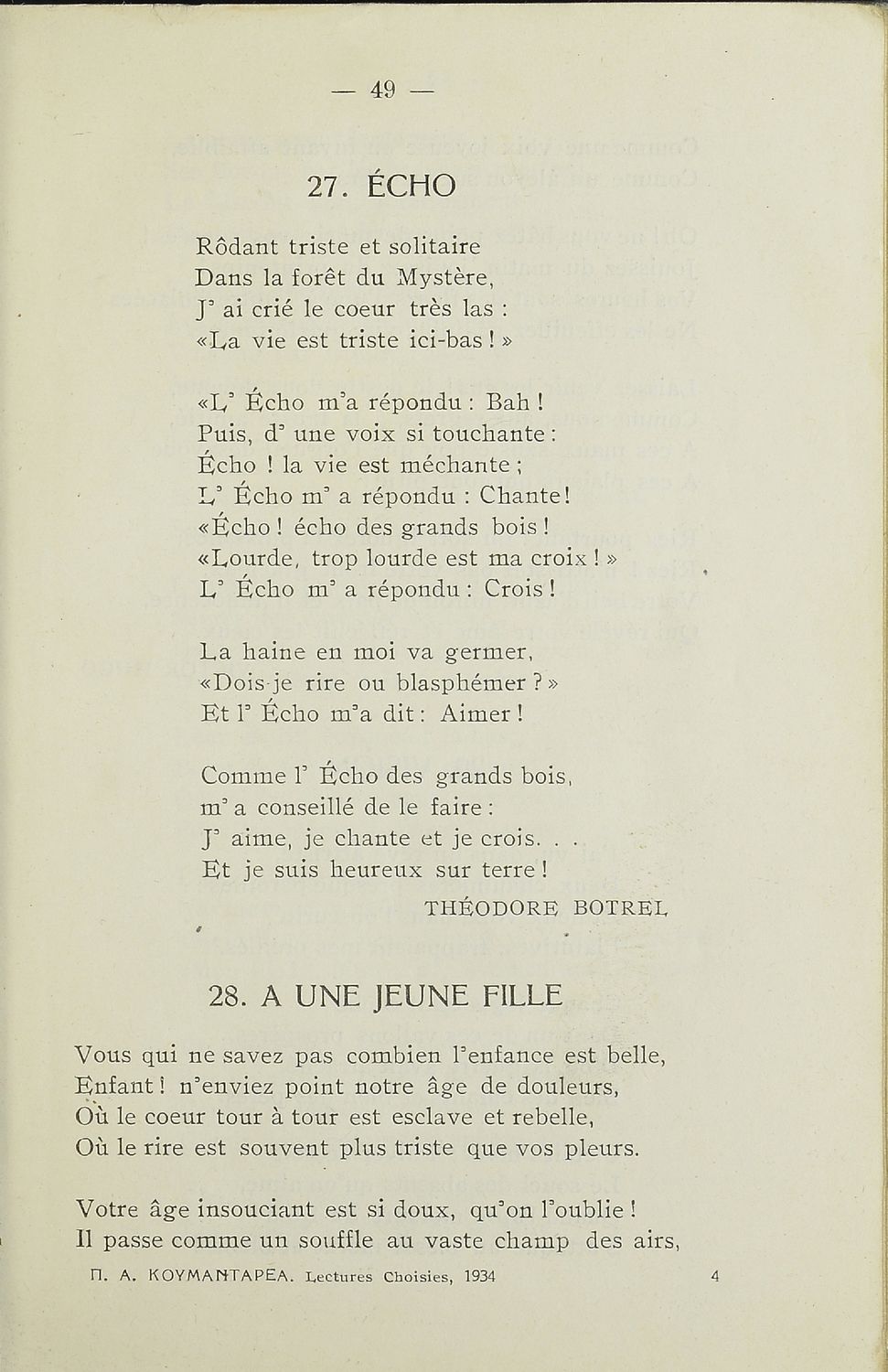 Κωδικός αναγνώρισης: 20-03279 Τίτλος: Lectures choisies pour l'enseignement du francais Συγγραφέας: Π. Α. Κουμανταρέας Μέγεθος και υπόστρωμα: Σχολικό εγχειρίδιο, 19εκ., σκληρό εξώφυλλο, 242 σελίδες. Σκίτσα (ασπρόμαυρα). |