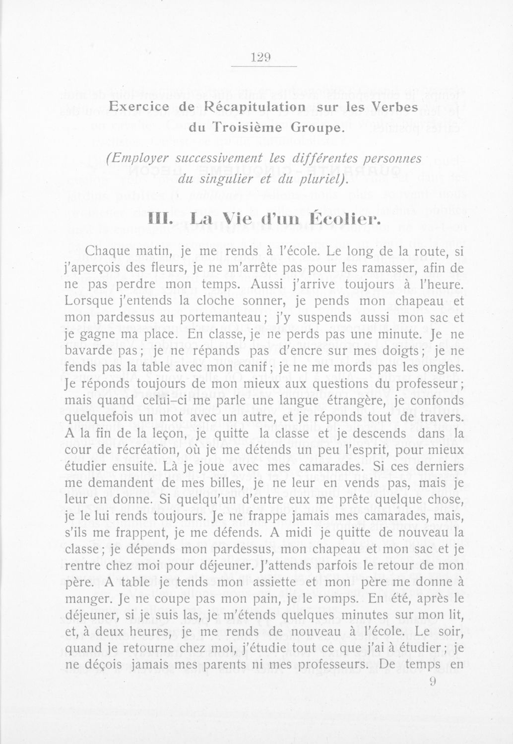 Σχολικό εγχειρίδιο Γαλλικών Γυμνασίου που περιλαμβάνει κείμενα στα γαλλικά και ελληνικά, θεωρία, λεξιλόγιο και βιογραφικά σημειώματα των συγγραφέων. Ο συγγραφέας ήταν καθηγητής της Βαρβακείου πρότυπης σχολής