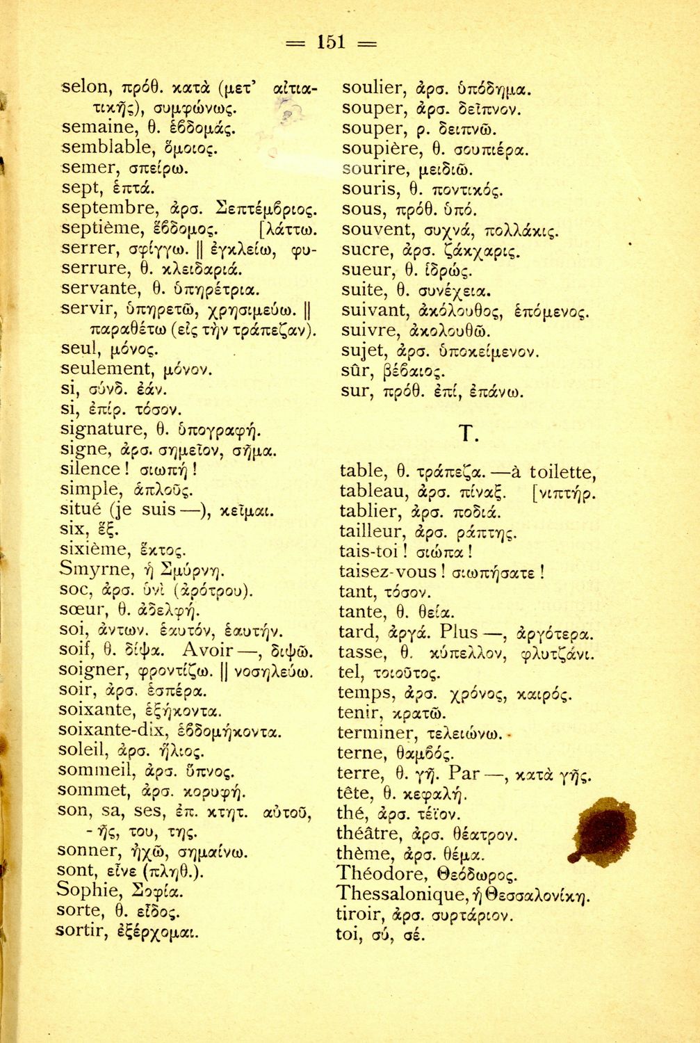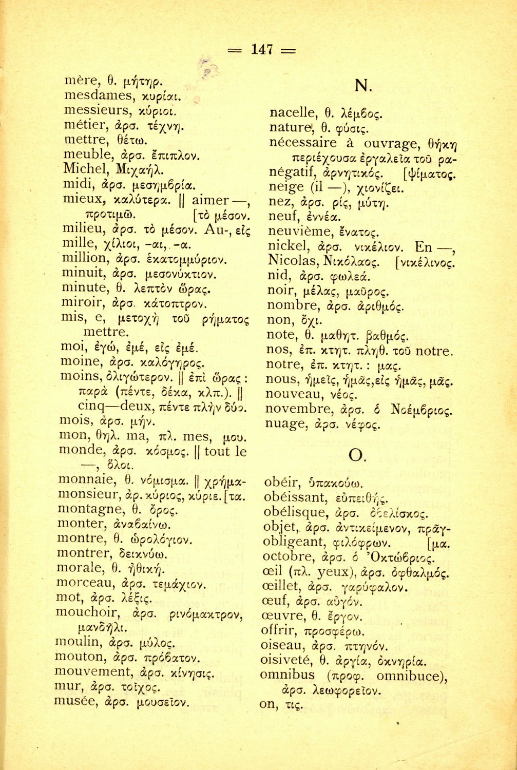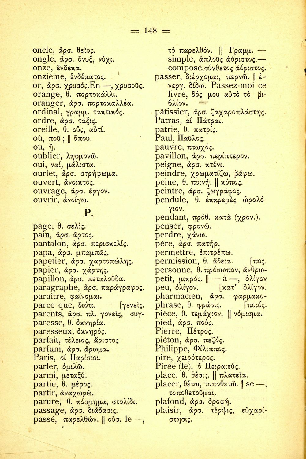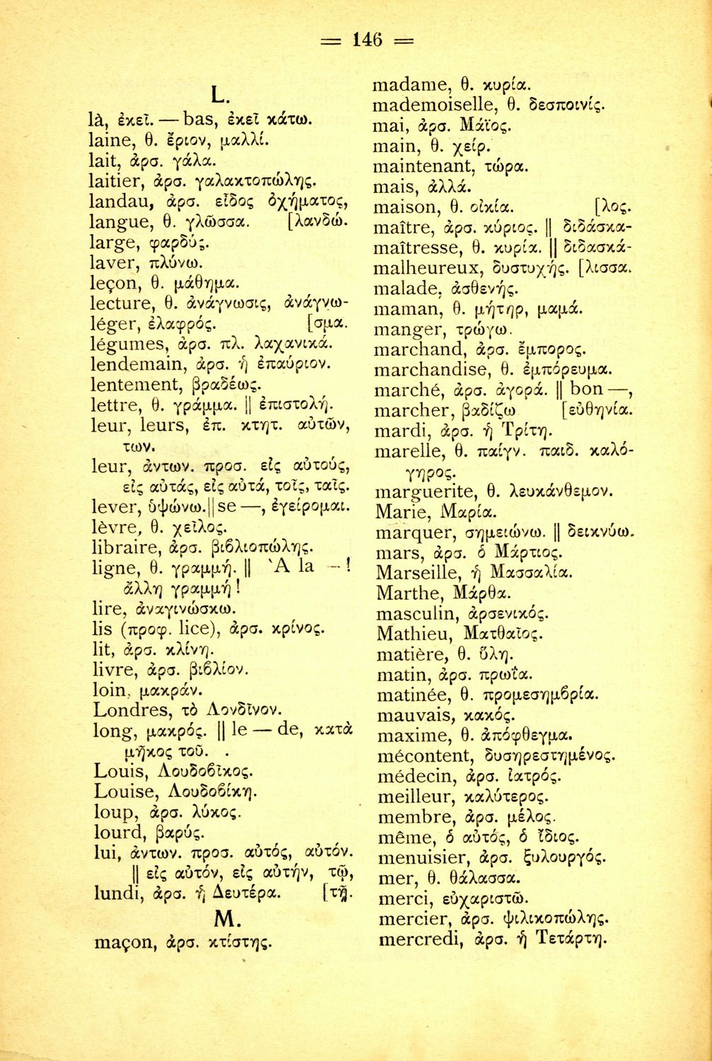 Γραμματική της Γαλλικής γλώσσας για τα Τετρατάξια Γυμνάσια, τη Γ΄ τάξη των Αστικών Σχολείων των Θηλέων και τα Διδασκαλεία της Δημοτικής Εκπαίδευσης που περιλαμβάνει θεωρία, ασκήσεις και λεξιλόγιο.
