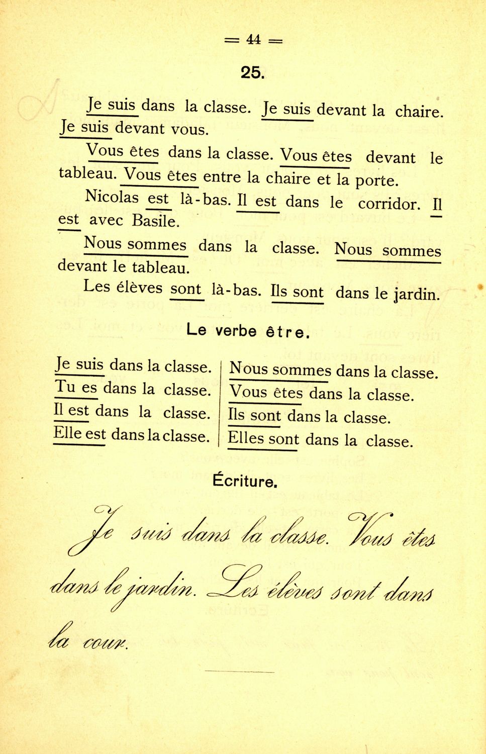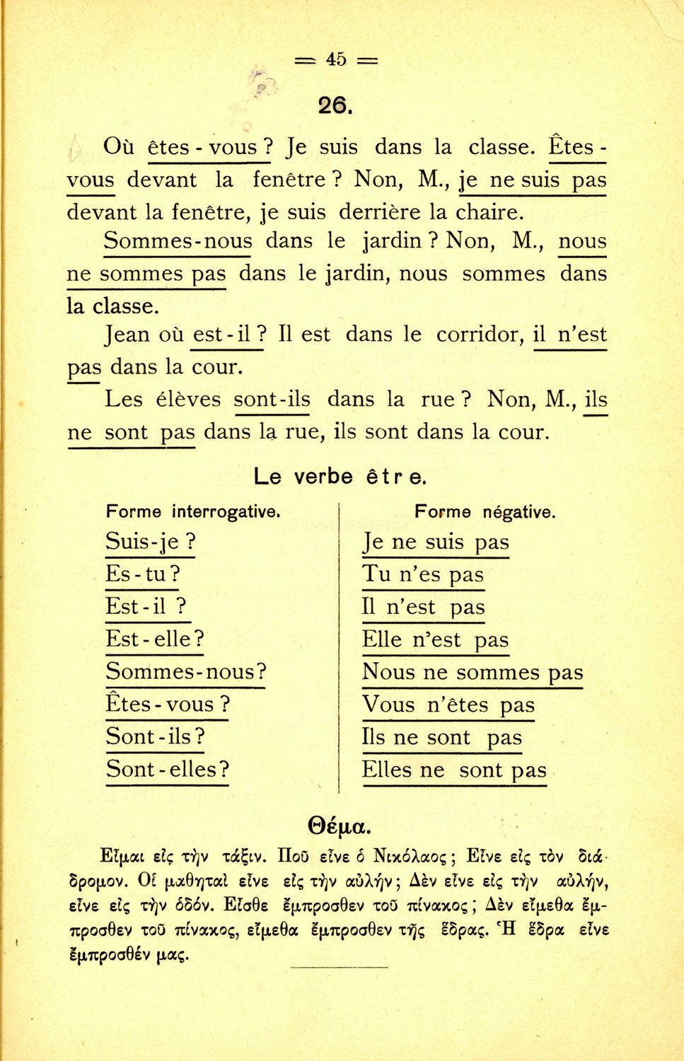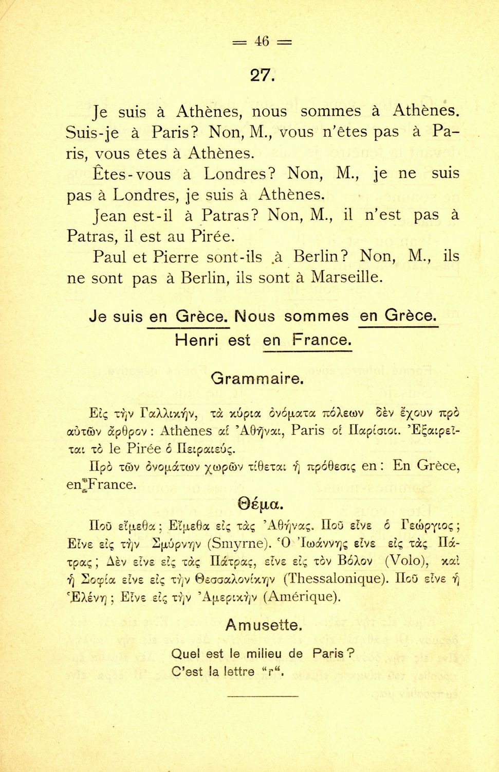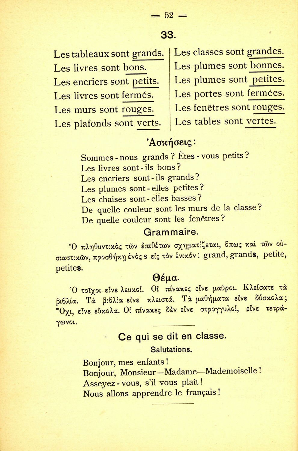 Γραμματική της Γαλλικής γλώσσας για τα Τετρατάξια Γυμνάσια, τη Γ΄ τάξη των Αστικών Σχολείων των Θηλέων και τα Διδασκαλεία της Δημοτικής Εκπαίδευσης που περιλαμβάνει θεωρία, ασκήσεις και λεξιλόγιο.
