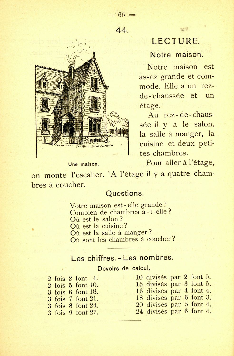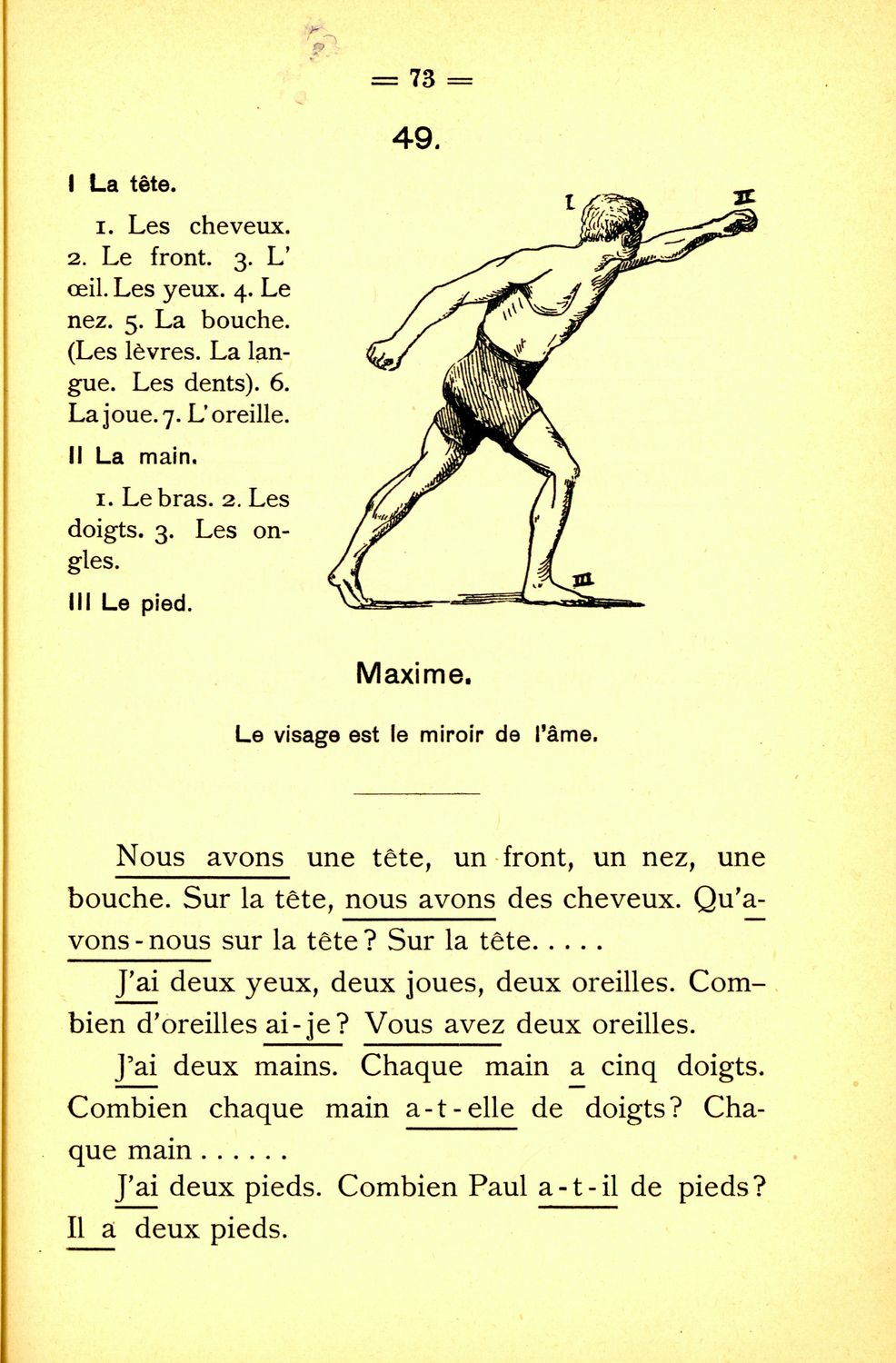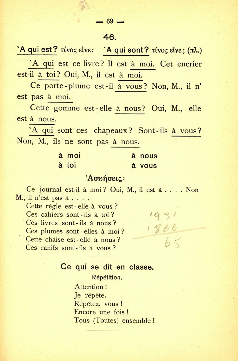 Σχολικό εγχειρίδιο Γαλλικών Β΄ και Γ' Ελληνικού Σχολείου, Αστικού Σχολείου και Παρθεναγωγείου που περιλαμβάνει κείμενα, κανόνες γραμματικής και συντακτικού, ερωτήσεις και ασκήσεις κατανόησης, και λεξιλογικά ...