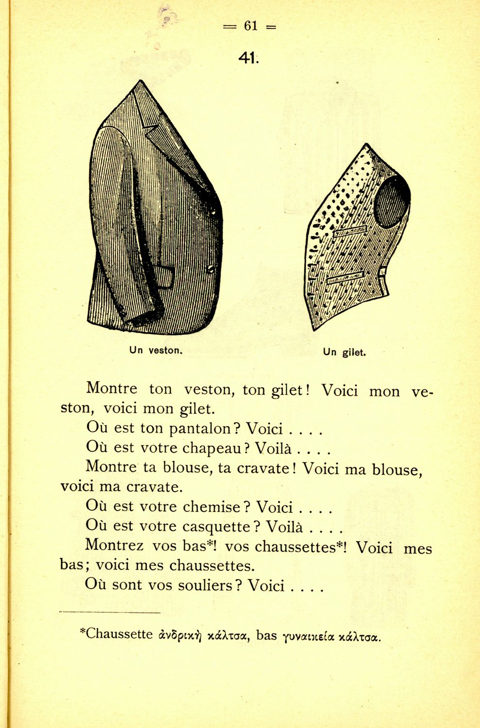 Τίτλος: Γαλλικής γλώσσης τα πρώτα μαθήματα διά την Β΄ και Γ΄ τάξιν των Ελληνικών Σχολείων και τας αντιστοίχους τάξεις των Αστικών Σχολείων και Παρθεναγωγείων