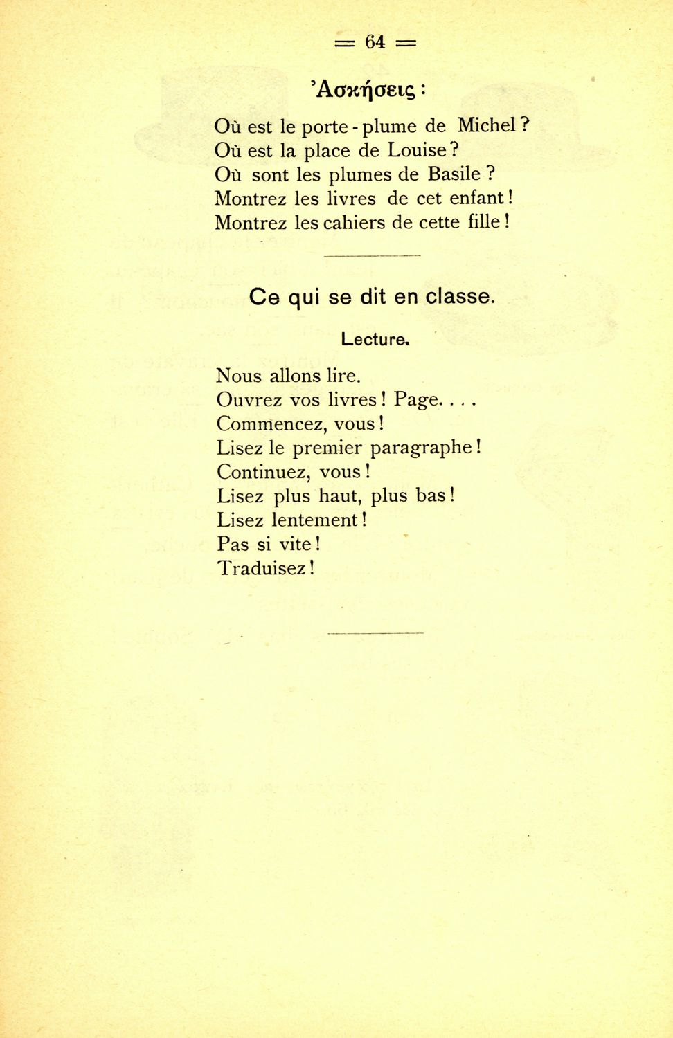 Γαλλικής γλώσσης τα πρώτα μαθήματα διά την Β΄ και Γ΄ τάξιν των Ελληνικών Σχολείων και τας αντιστοίχους τάξεις των Αστικών Σχολείων και Παρθεναγωγείων