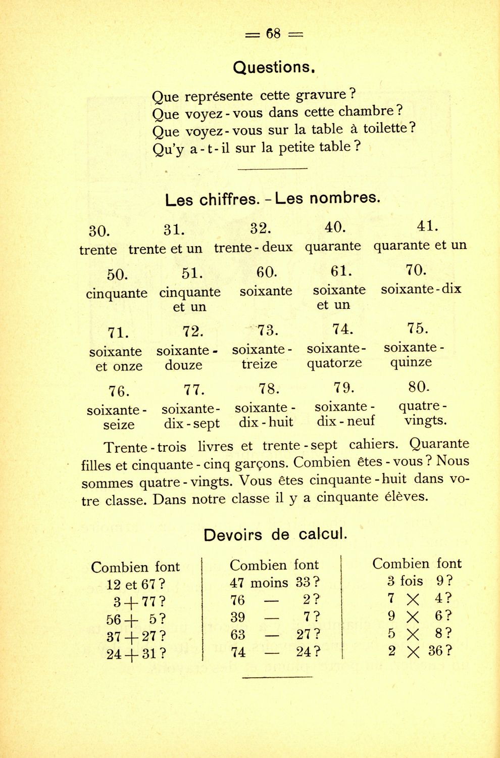 Σχολικό εγχειρίδιο Γαλλικών για τις Β’ και Γ’ Ελληνικού και Αστικού Σχολείου και Παρθεναγωγείου που περιλαμβάνει ασκήσεις προφοράς, συνομιλίας και γραμματικής, και λεξιλόγιο.