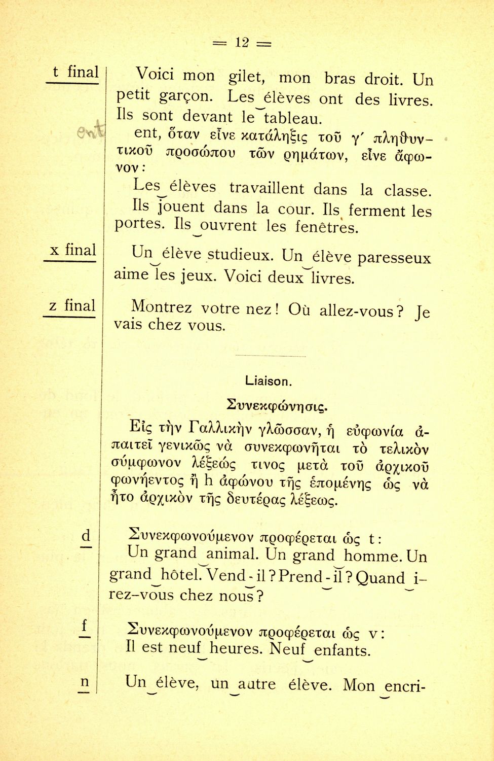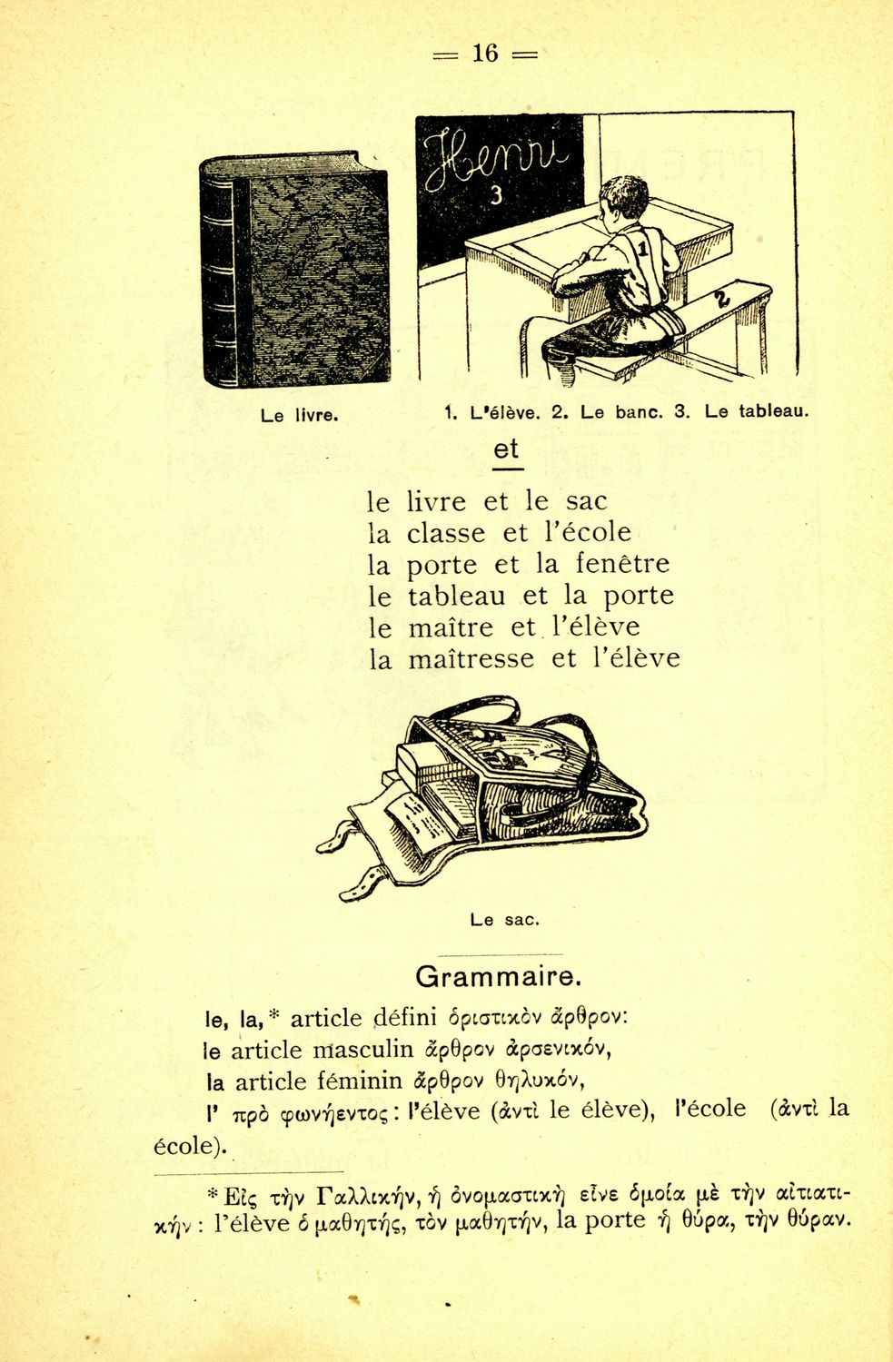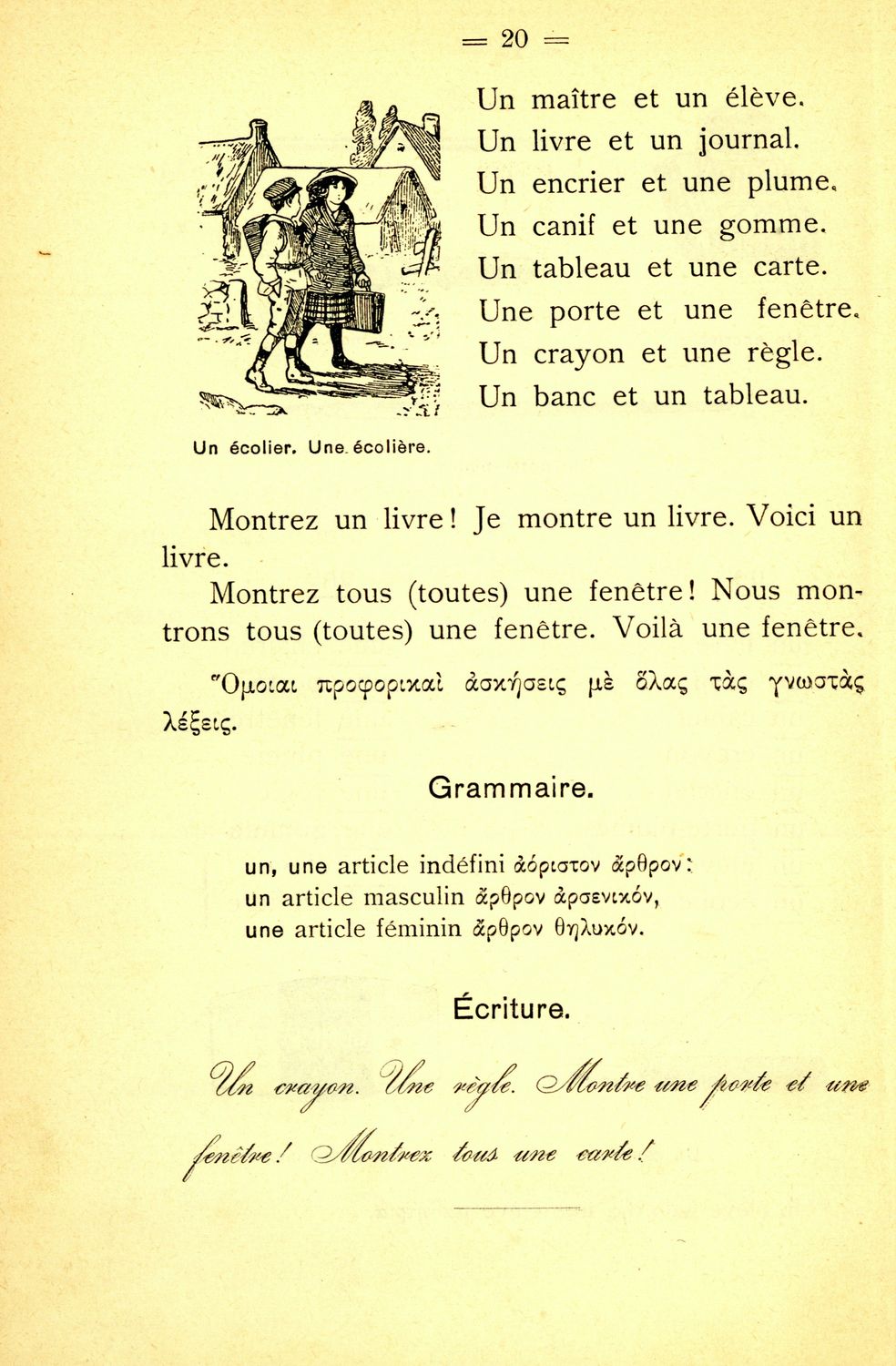 Σχολικό εγχειρίδιο Γαλλικών Β΄ και Γ' Ελληνικού Σχολείου, Αστικού Σχολείου και Παρθεναγωγείου που περιλαμβάνει κείμενα, κανόνες γραμματικής και συντακτικού, ερωτήσεις και ασκήσεις κατανόησης, και λεξιλογικά ...