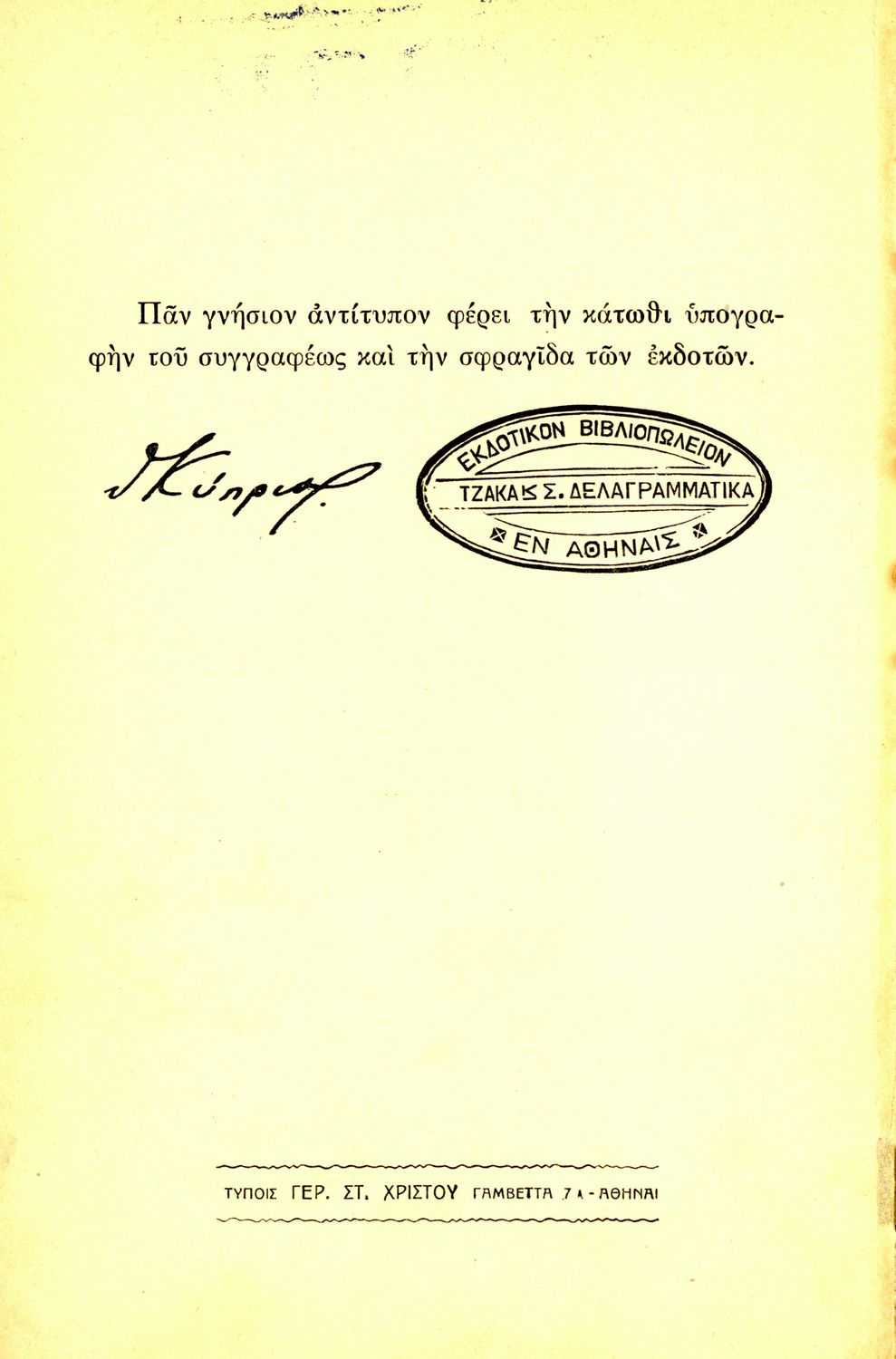 Εκδότης: Δημ. Ν. Τζάκας, Στεφ. Δελαγραμμάτικας
