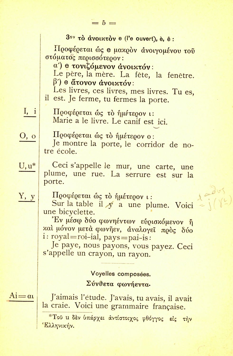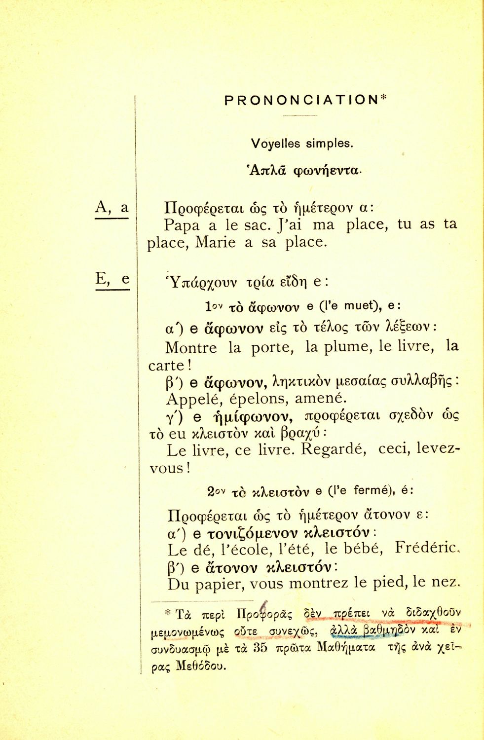 Σχολικό εγχειρίδιο Γαλλικών για τις Β΄ και Γ΄ των Ελληνικών και Αστικών Σχολείων και Παρθεναγωγείων που περιλαμβάνει εισαγωγικά μαθήματα στη γαλλική γλώσσα και εστιάζει στη διδασκαλία του γαλλικού αλφαβήτου και στην ανάγνωση και κατανόηση απλών κειμένων. Περιέχει γαλλοελληνικό λεξικό και λεξιλόγιο.