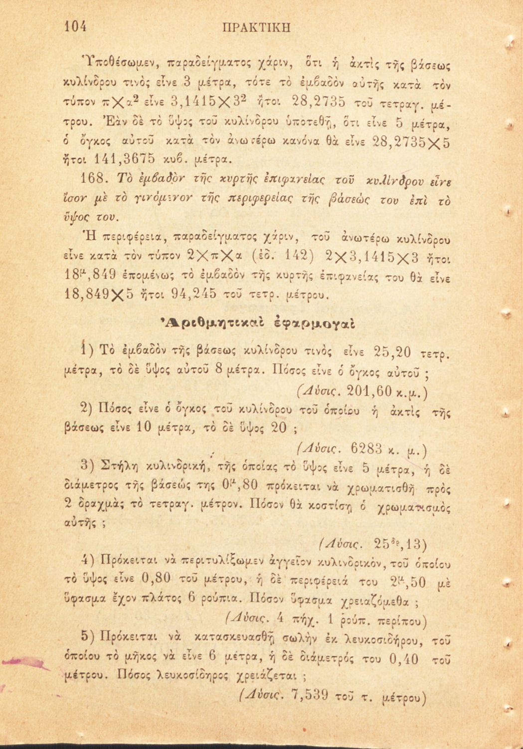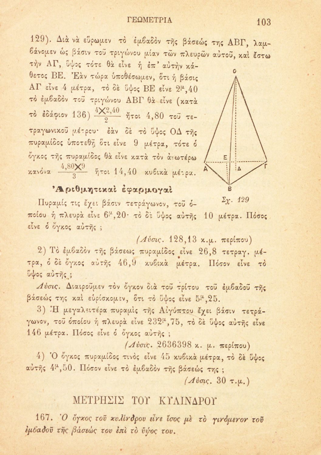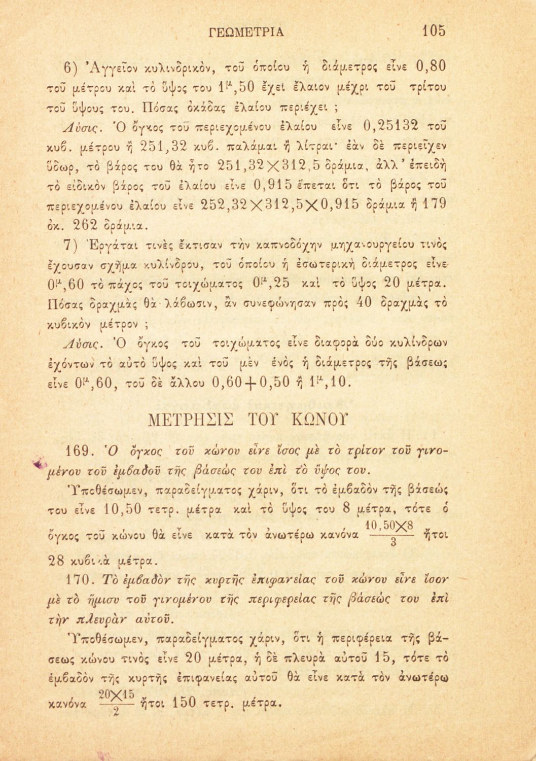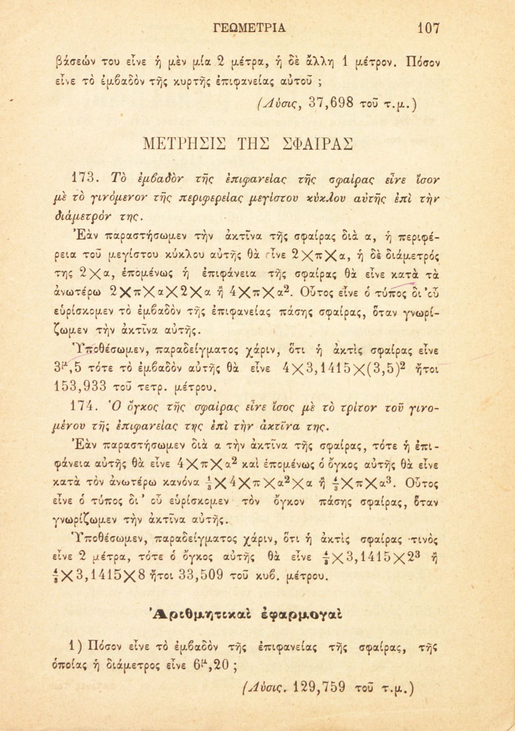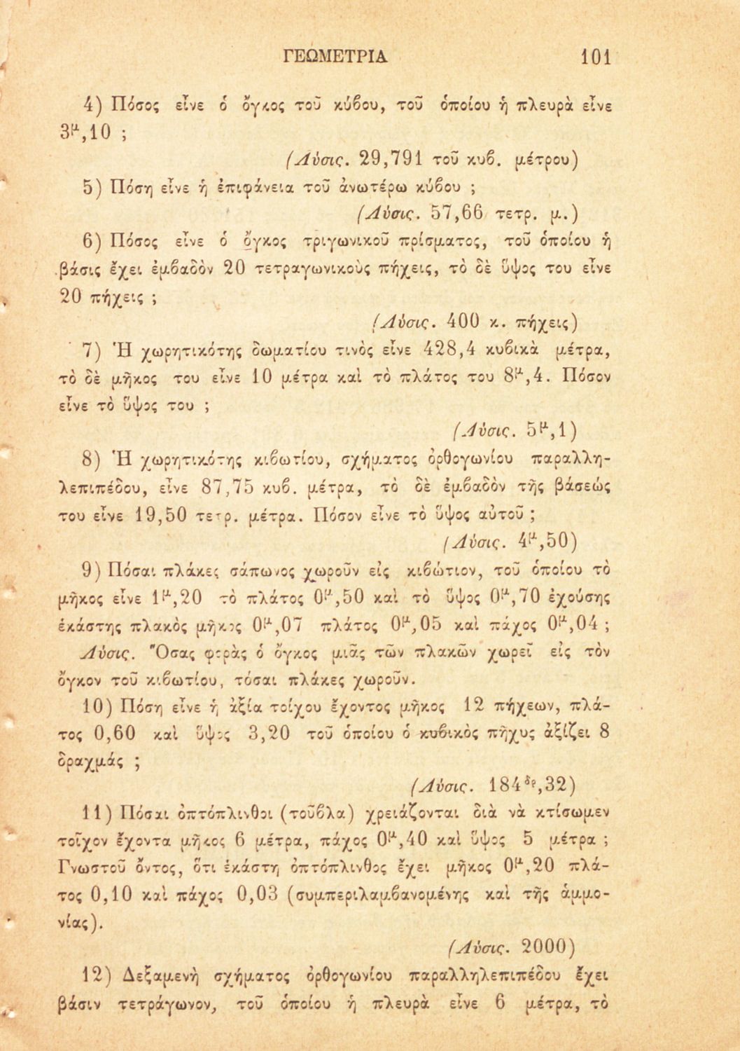 Σχολικό εγχειρίδιο Γεωμετρίας για τα Ελληνικά Σχολεία που περιέχει θεωρία, προβλήματα και ασκήσεις και εστιάζει στα γεωμετρικά σχήματα και σώματα και τη μέτρησή τους.